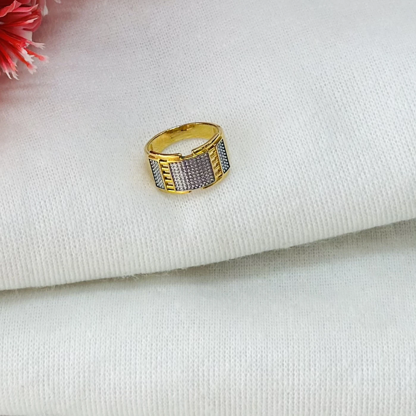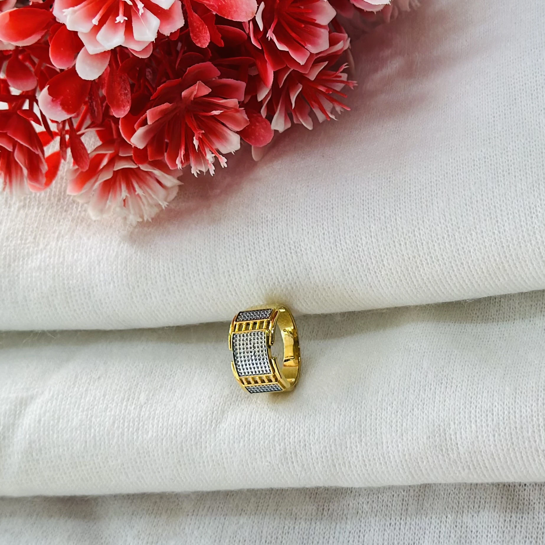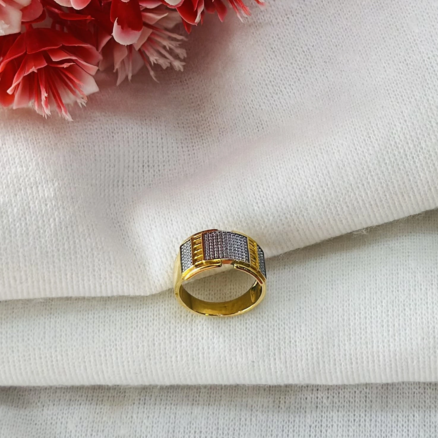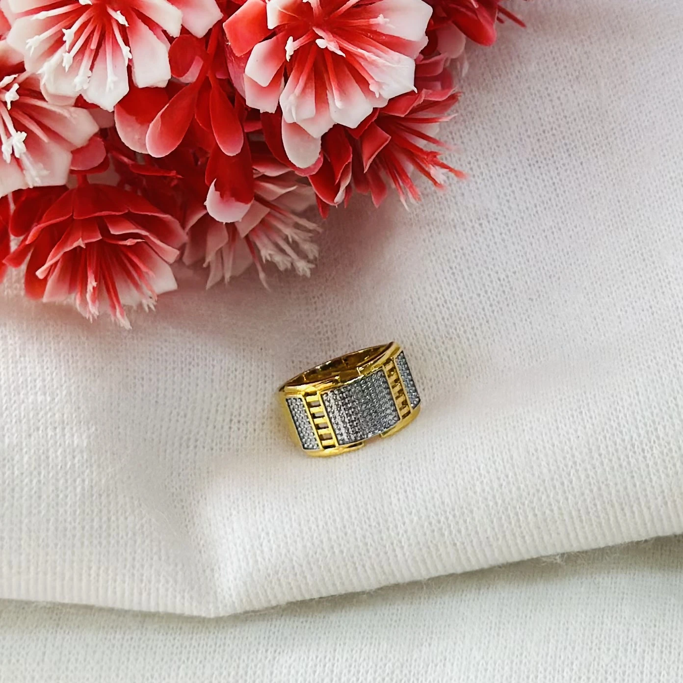 👉 Theme :- Gold gent's ring with a textured design and diamond accents.