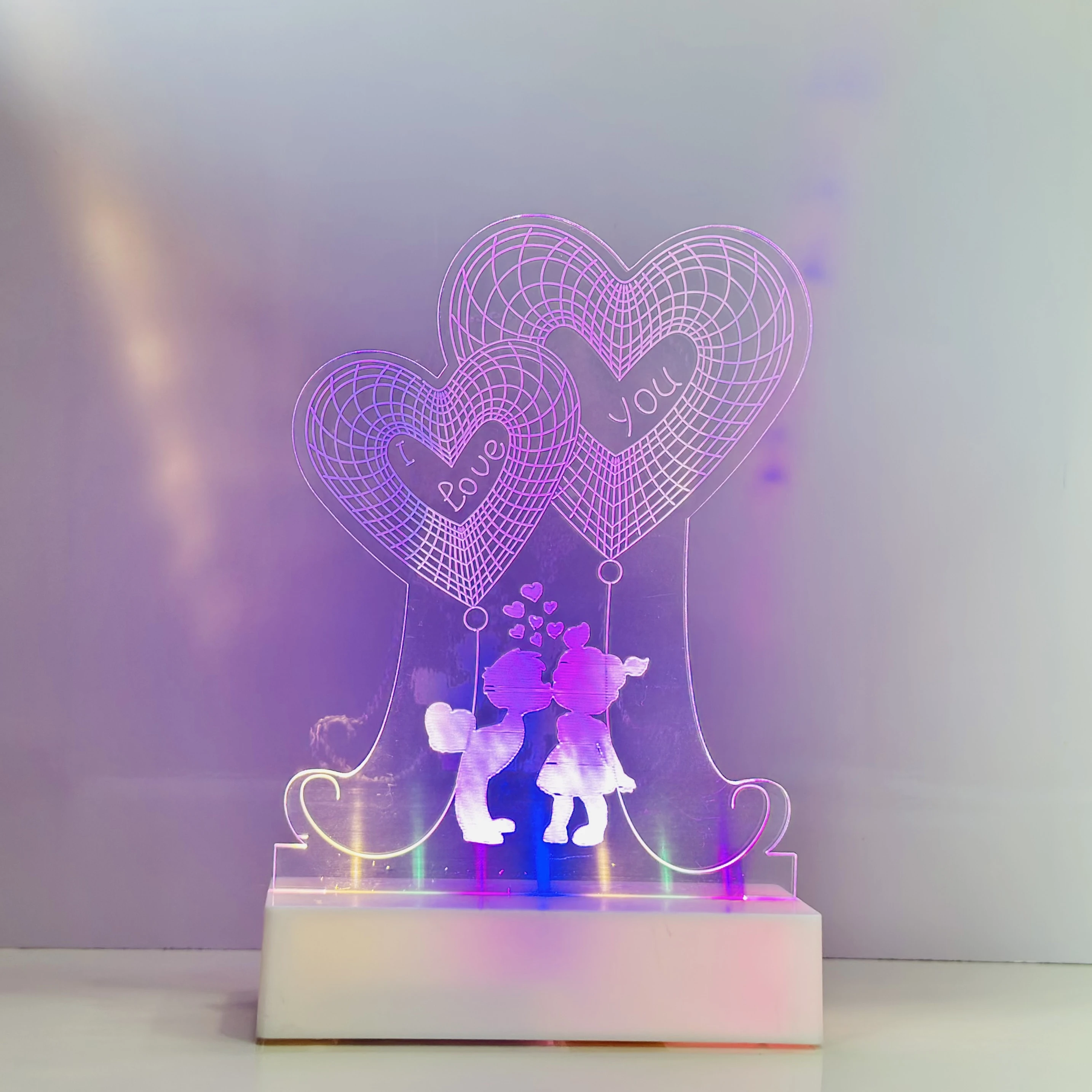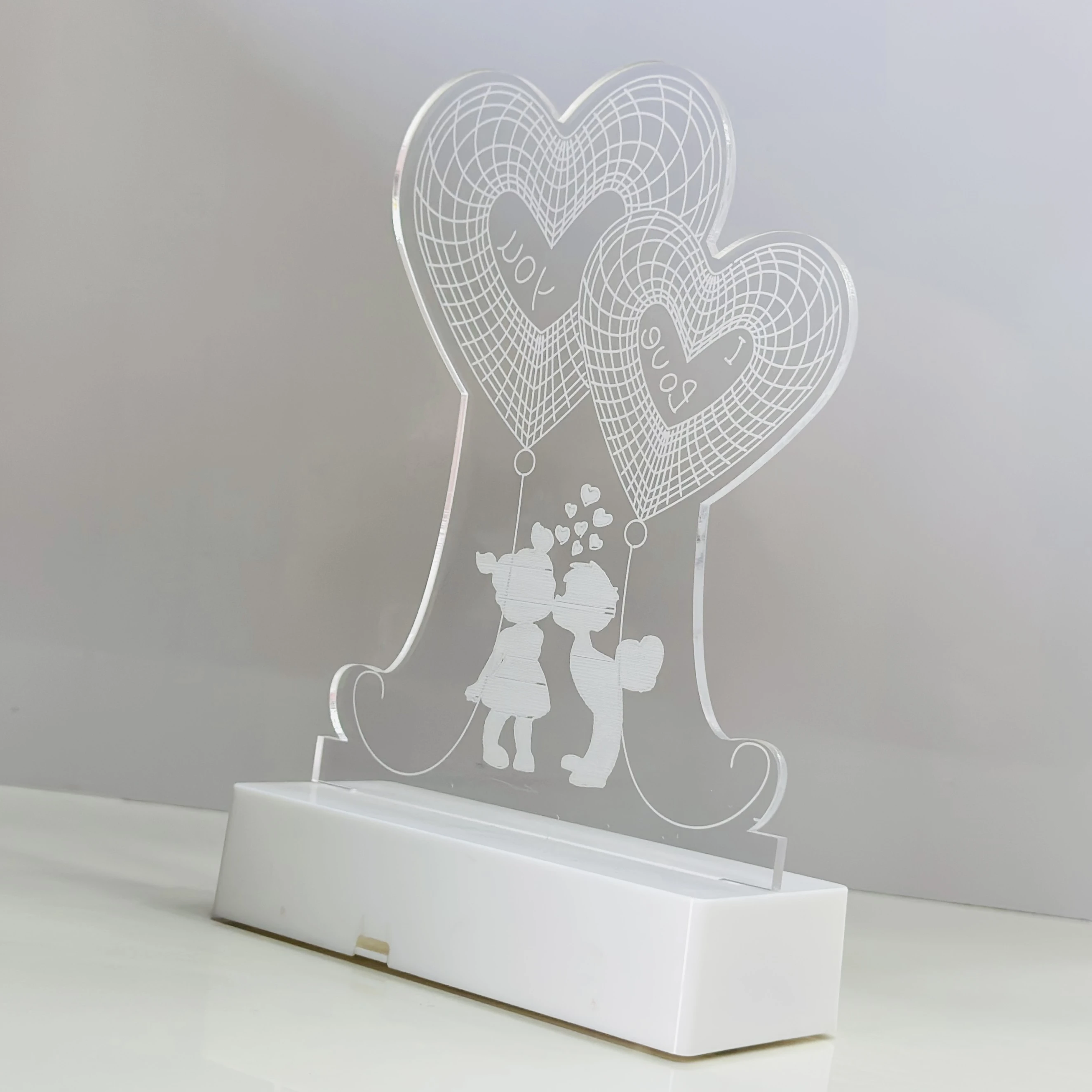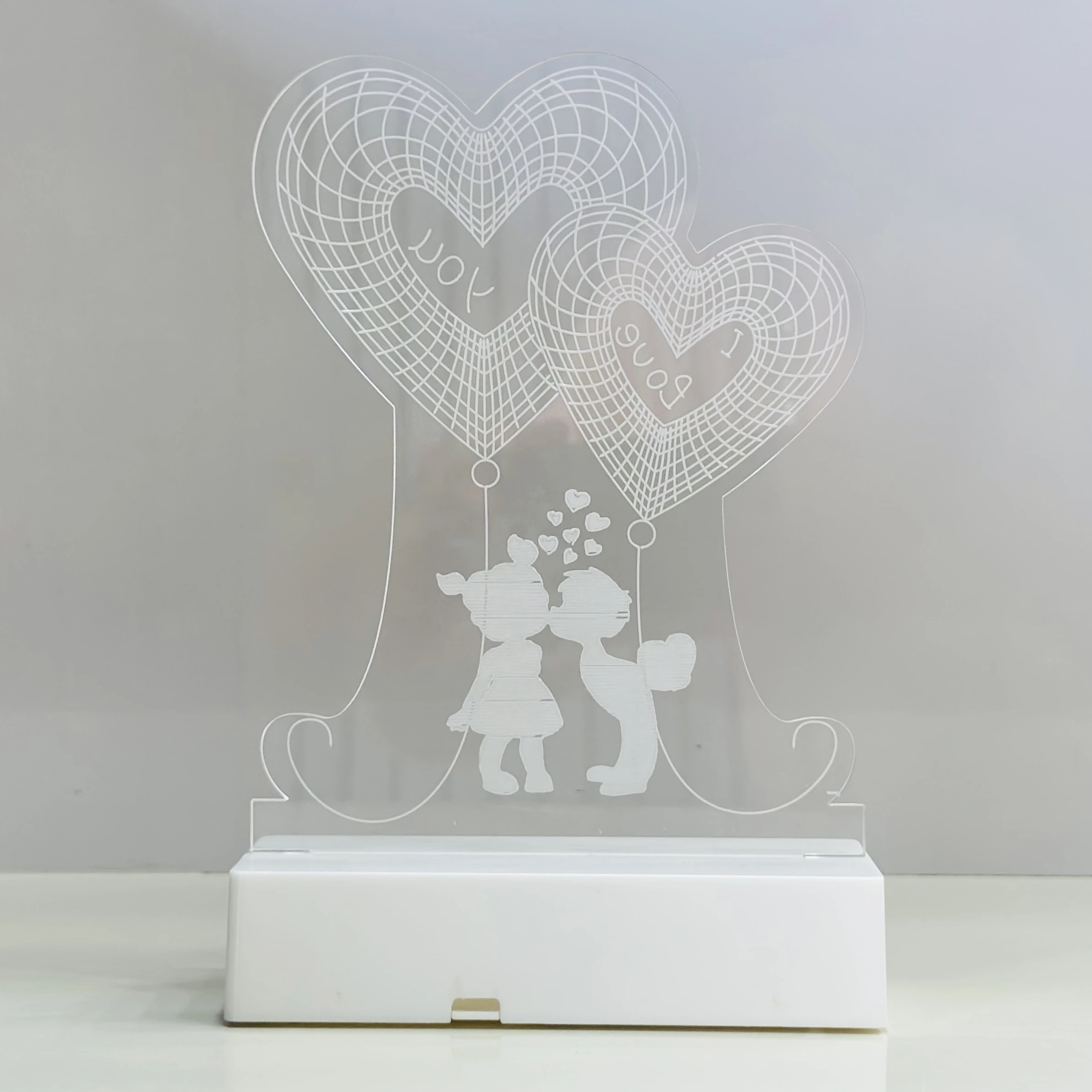 👉 Theme :- 3D illusion LED night lamp with a "Heart Couple" design.