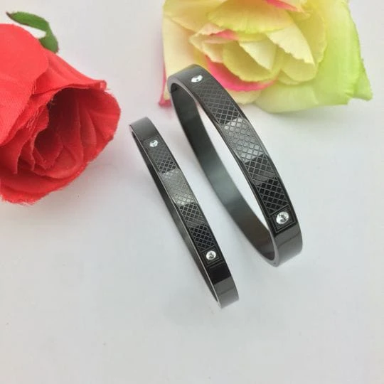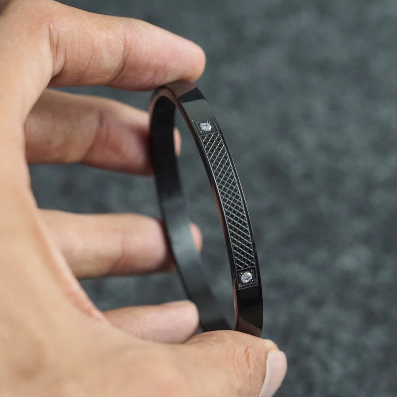 👉 Theme :- Black rhodium-plated bracelet with zircons, likely made of stainless steel.