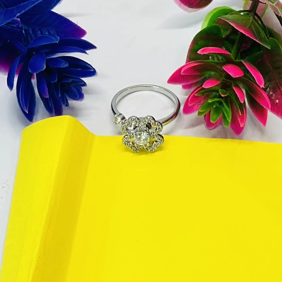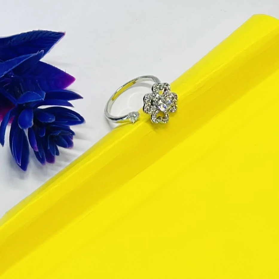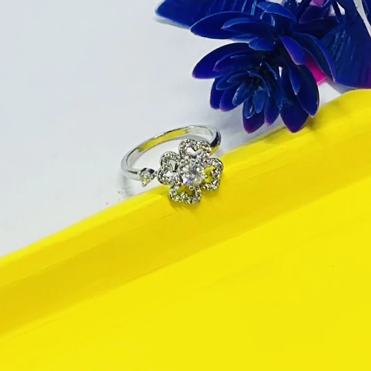 👉 Theme :- Silver toe ring featuring a white zircon floral design.