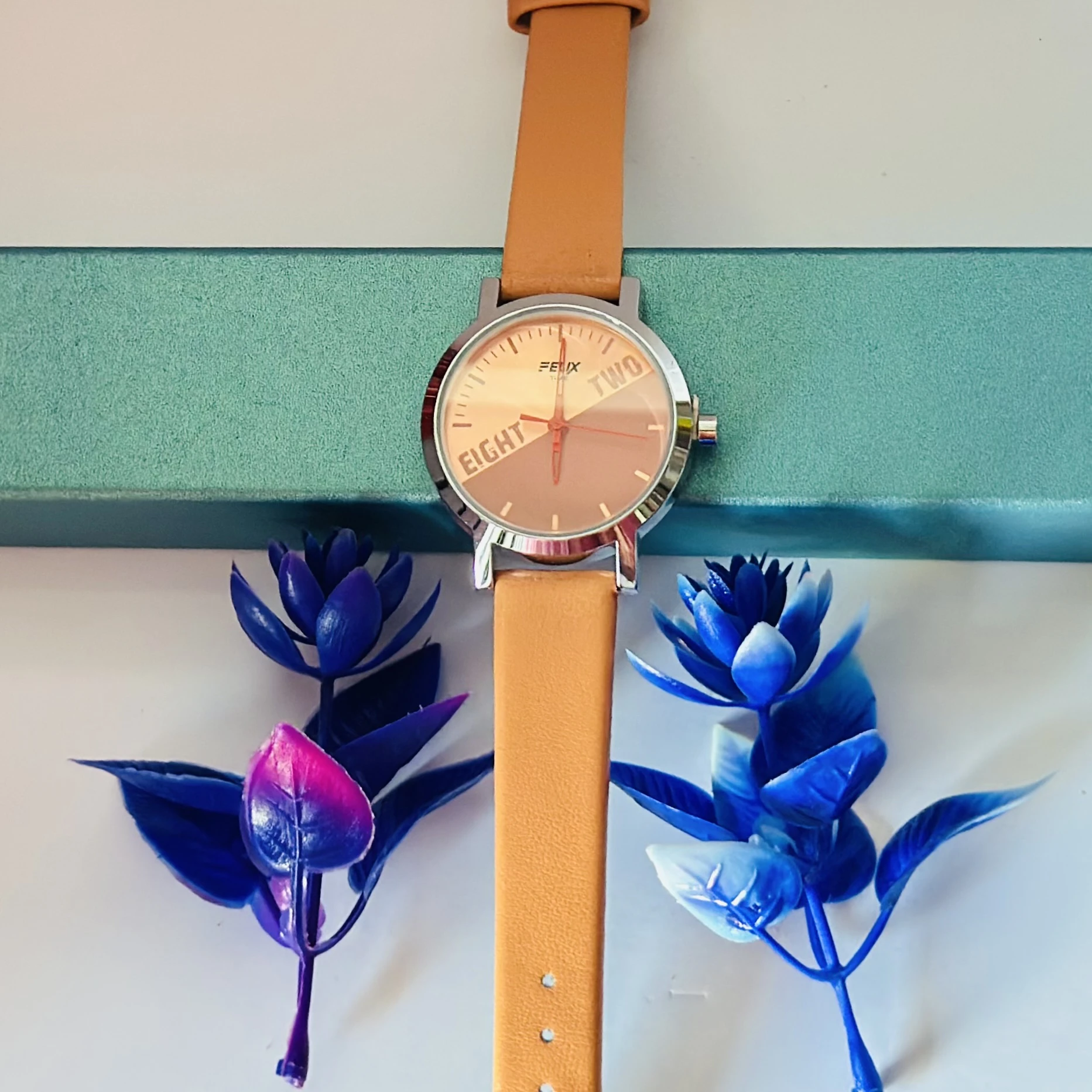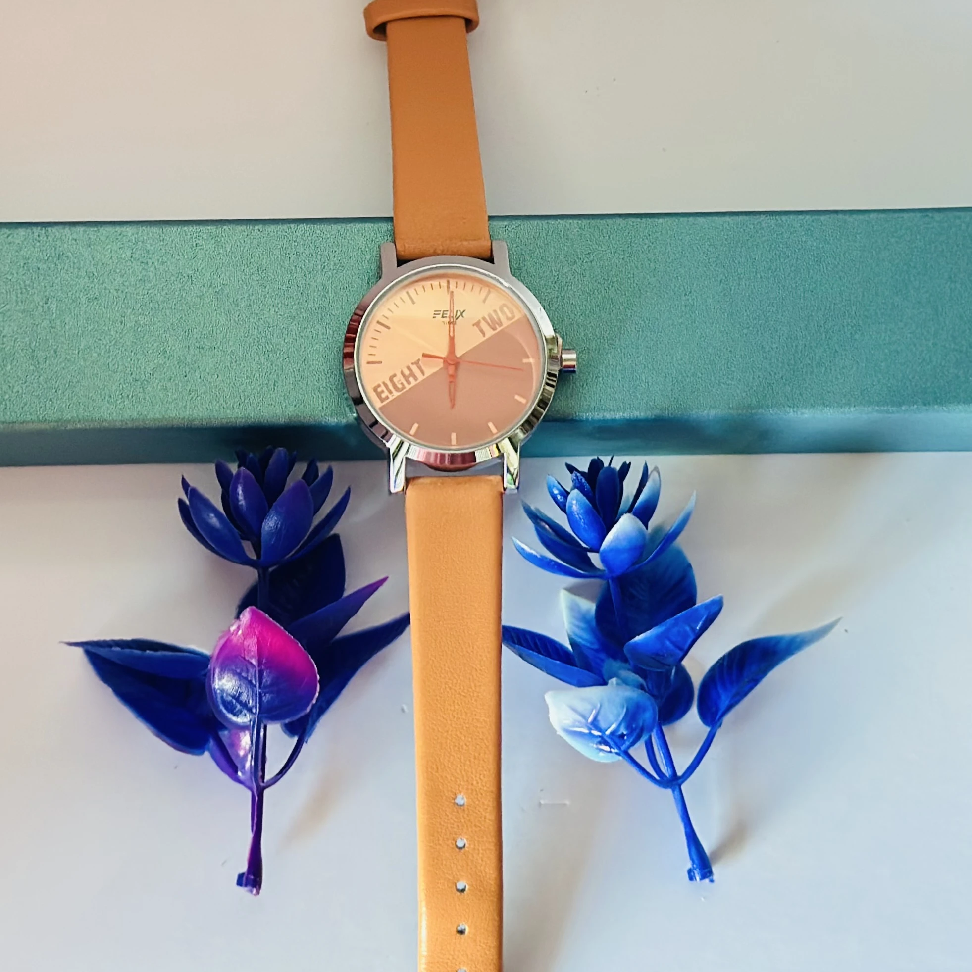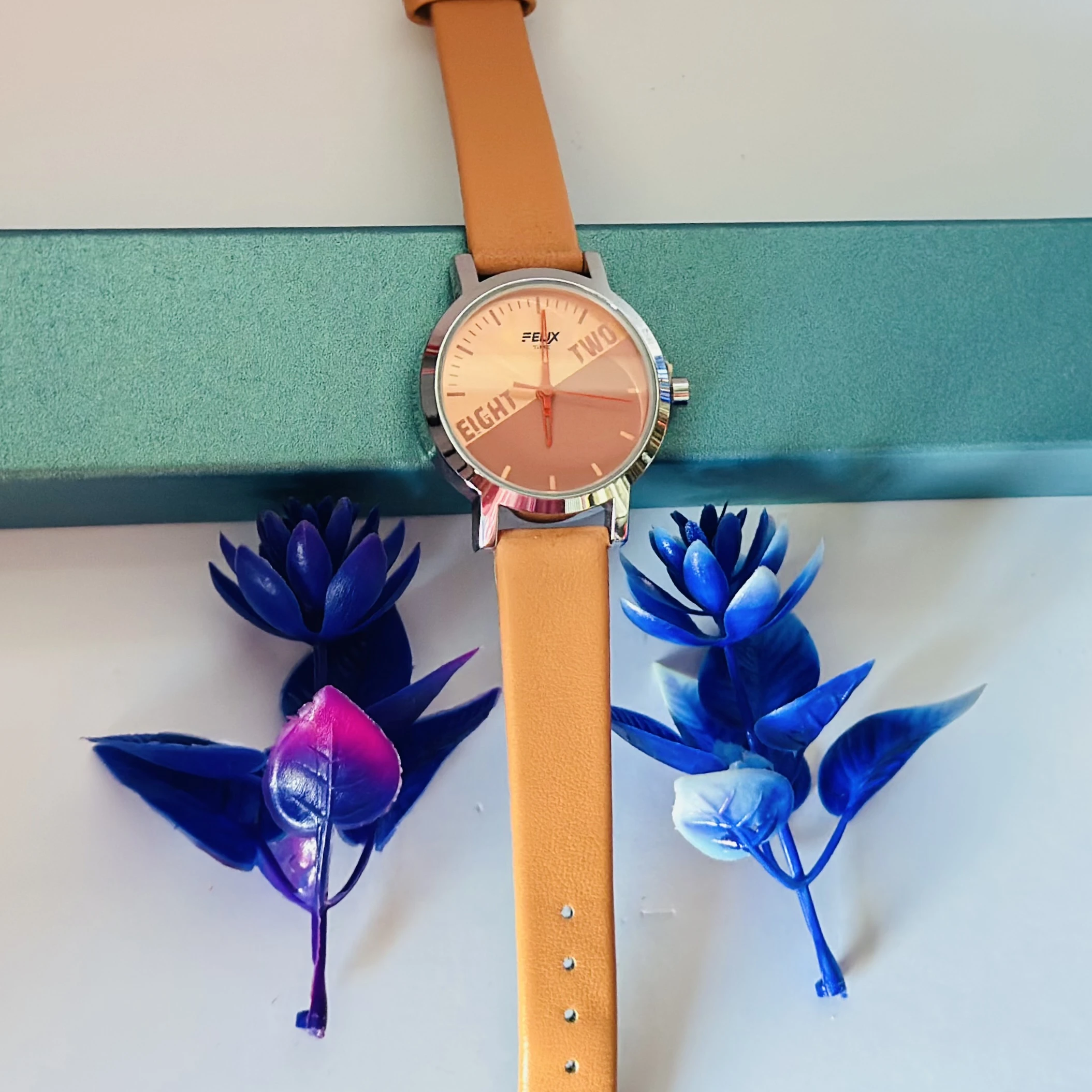 👉 Theme :- Analogue watch for women with an Orange leather strap.