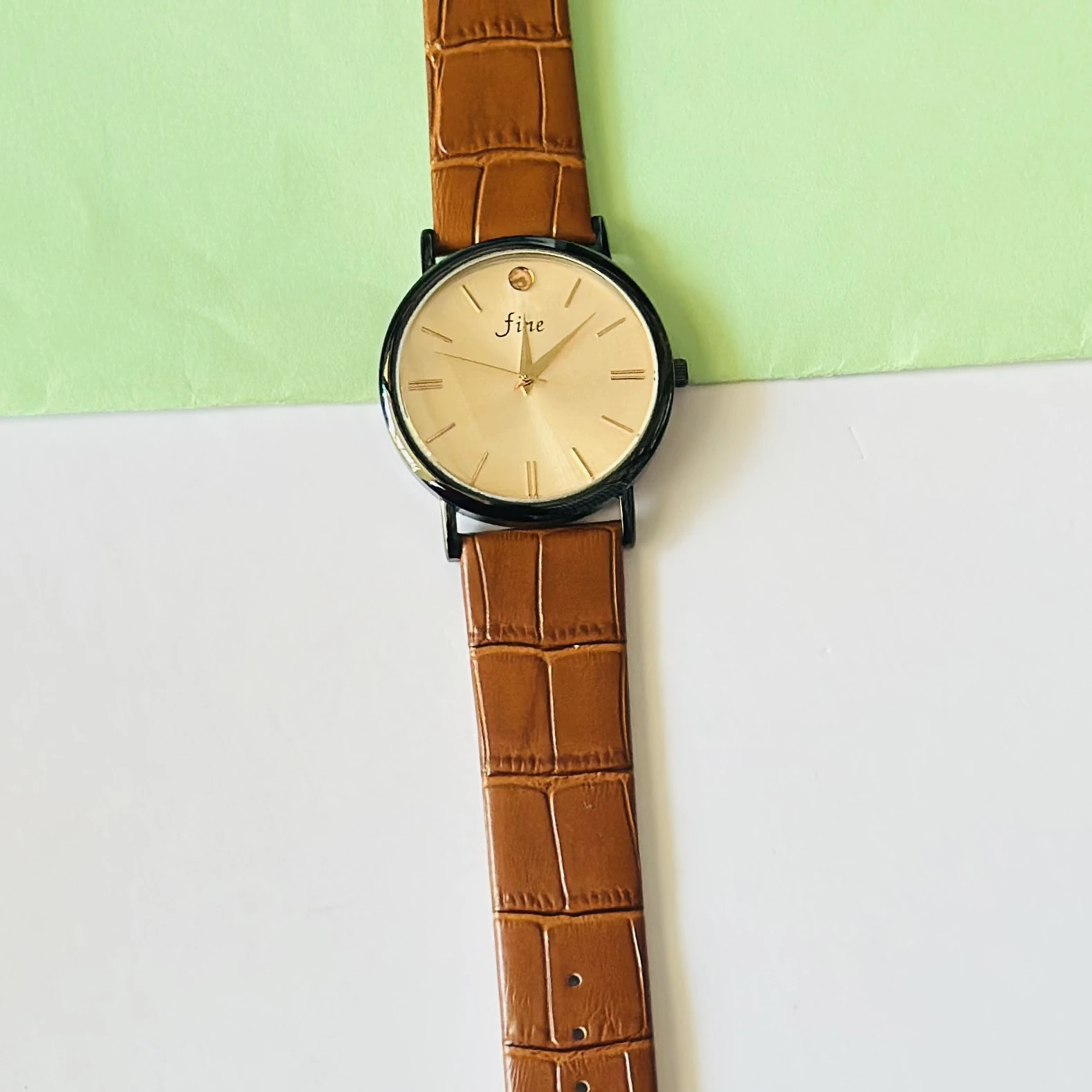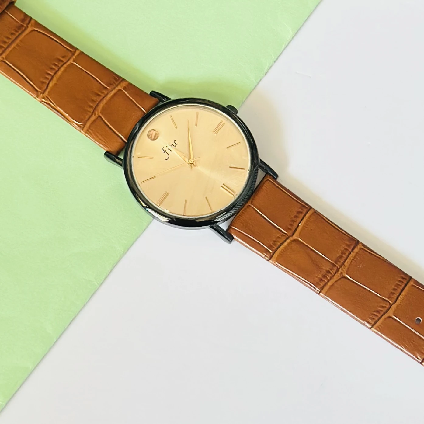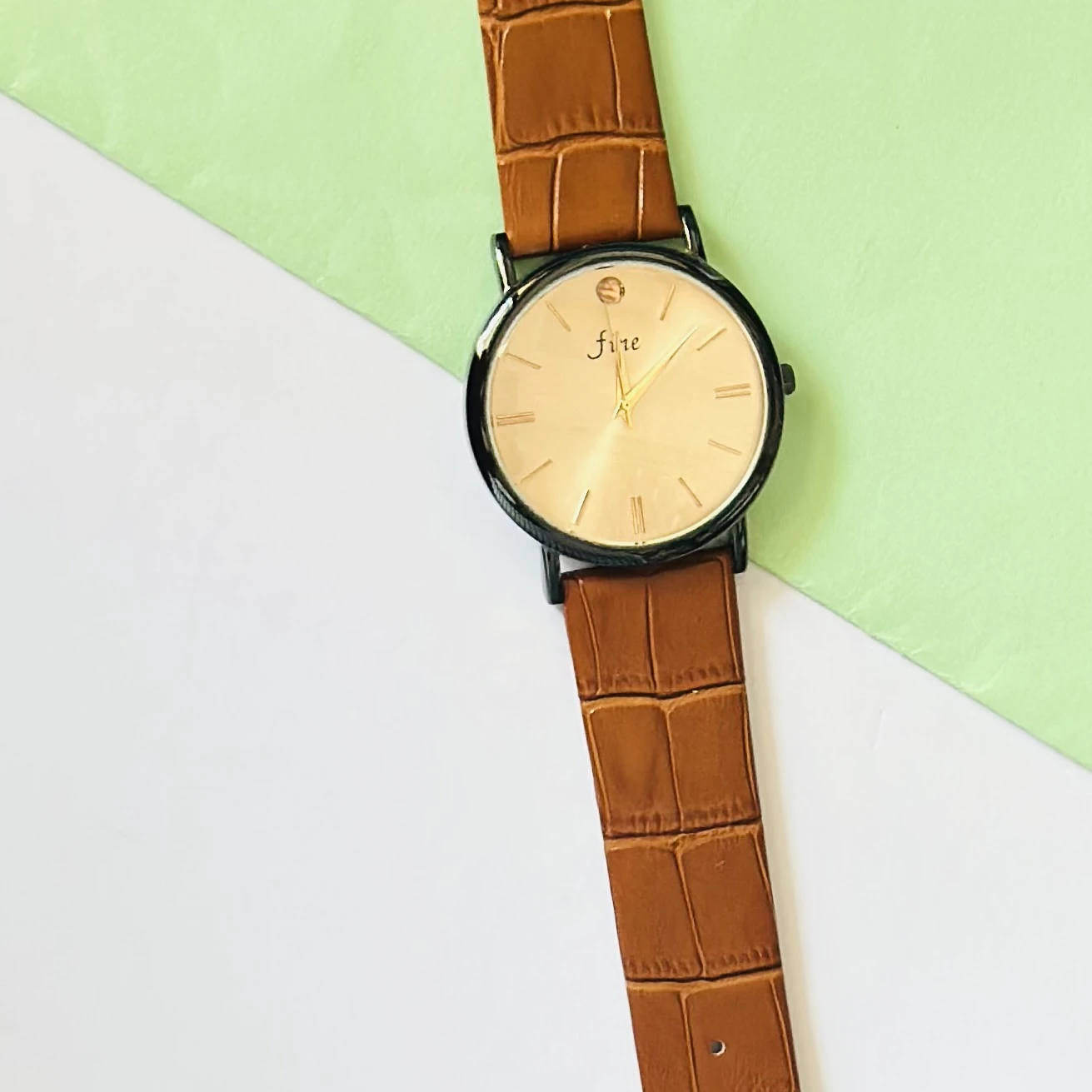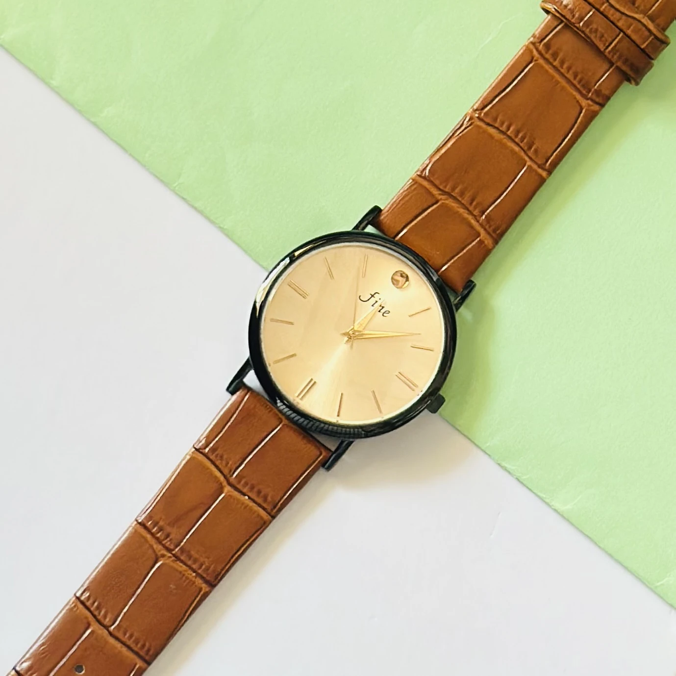 👉 Theme :- analog watch with a brown leather strap