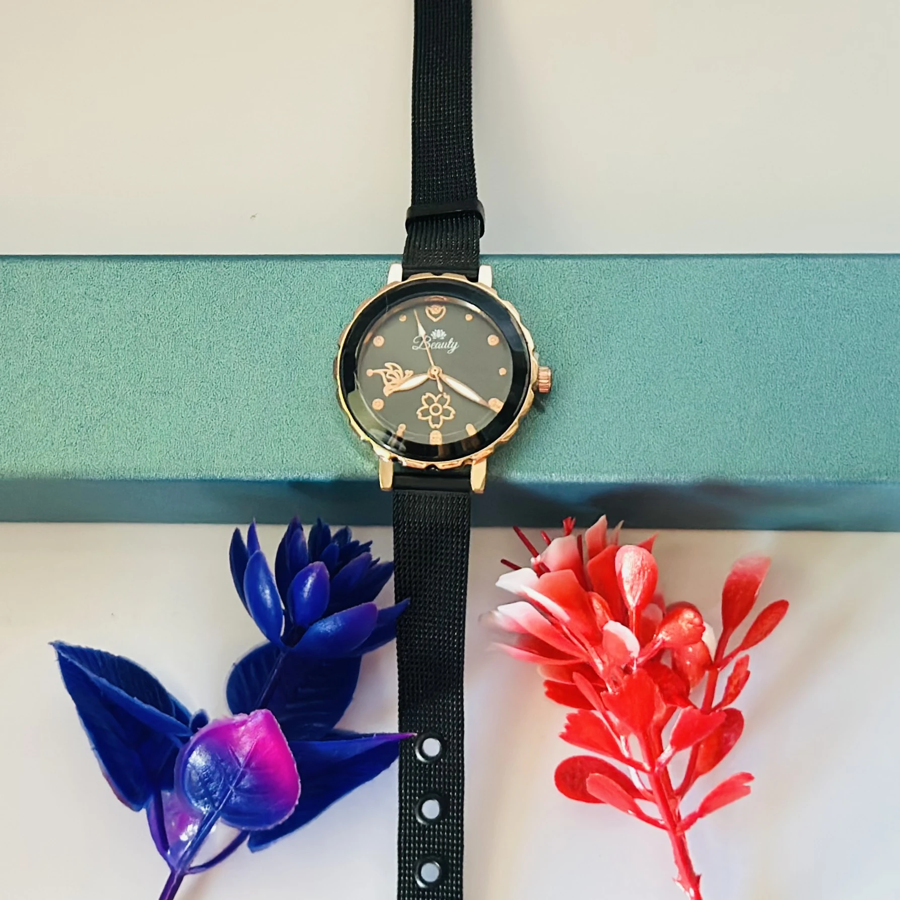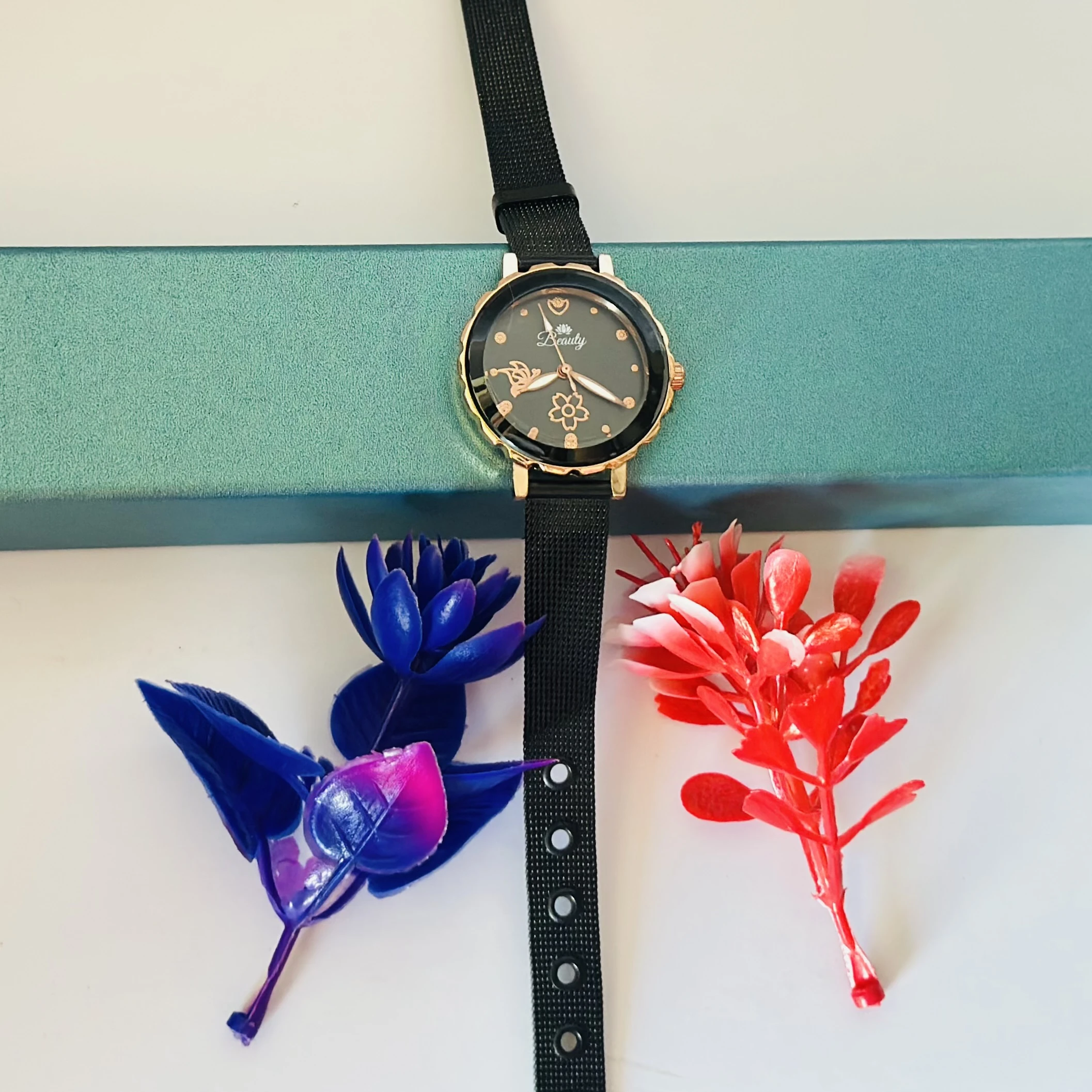 👉 Theme :- Analog watch with a black magnetic strap