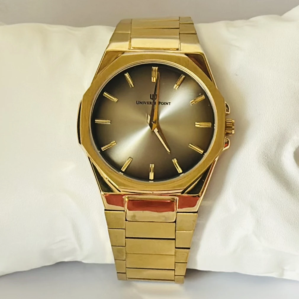 👉 Theme :- Analog Watch with a golden dial and stainless steel strap