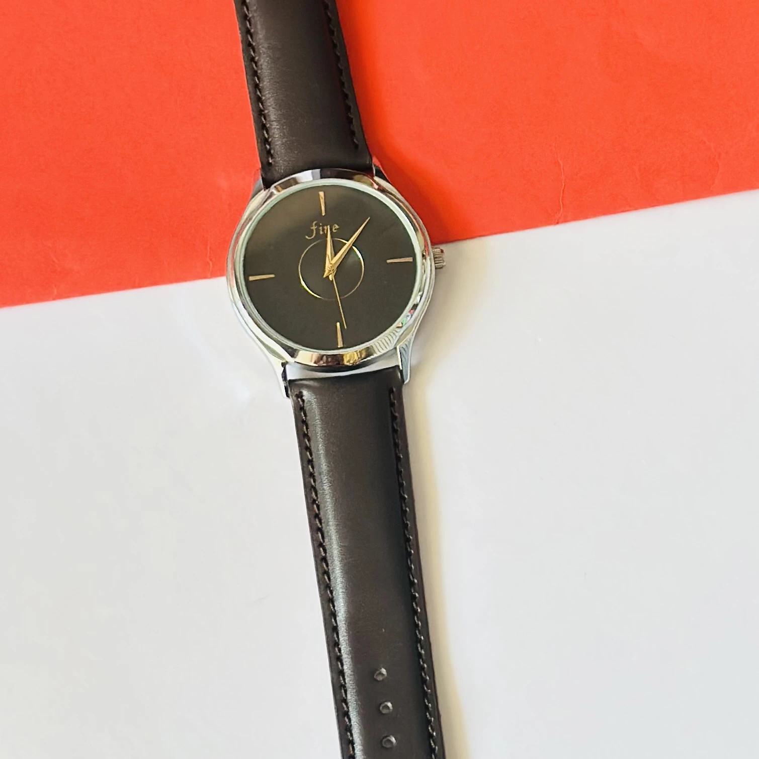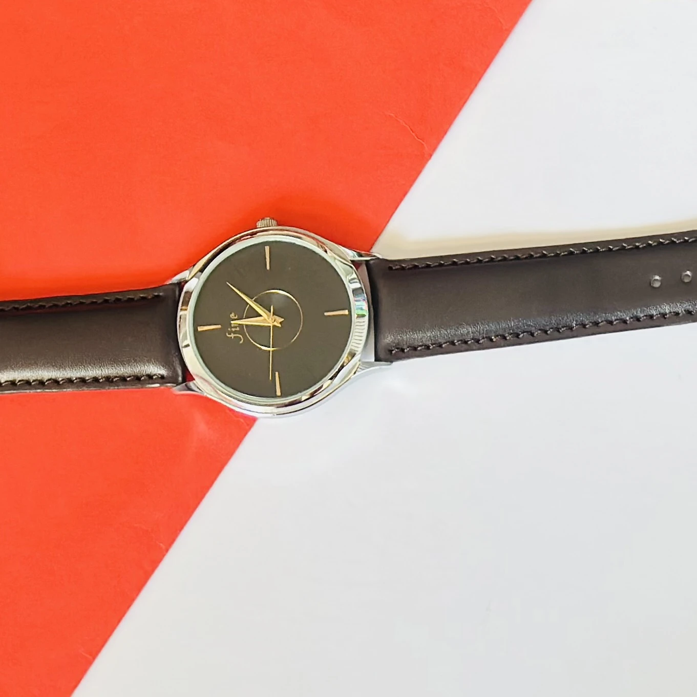 👉 Theme :- analog watch with a brown leather strap