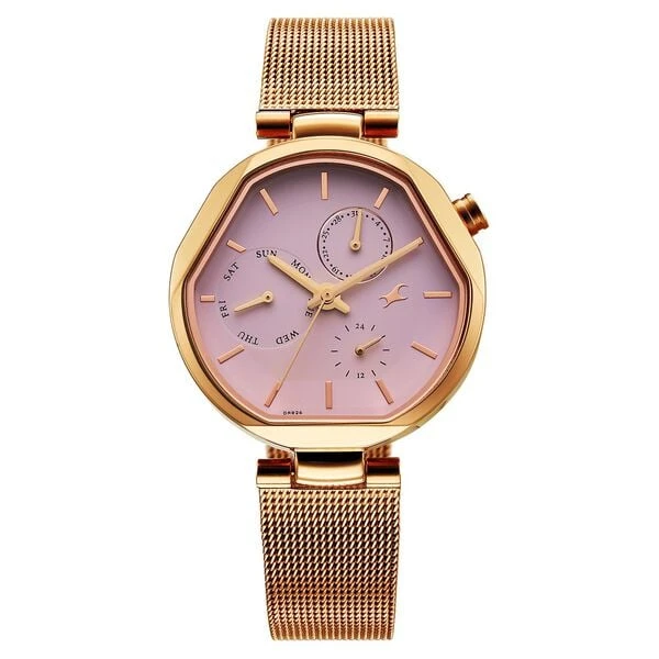 Fastrack Tick Tock Quartz Multifunction Pink Dial Stainless Steel Strap Watch For Girls MO . ...6319WM01