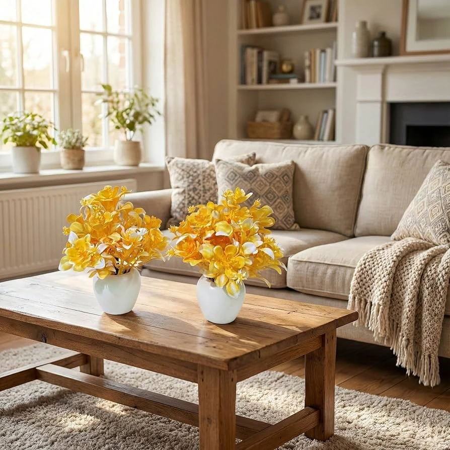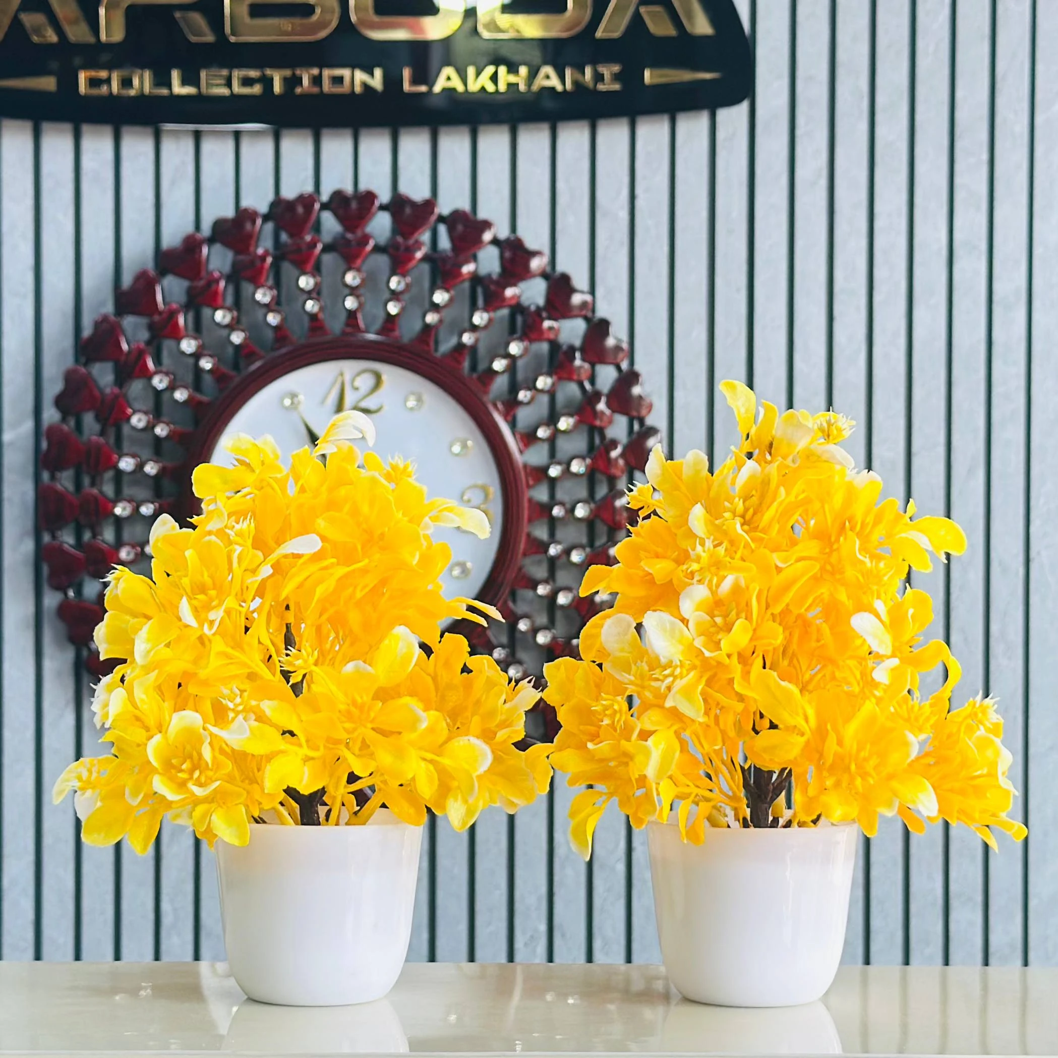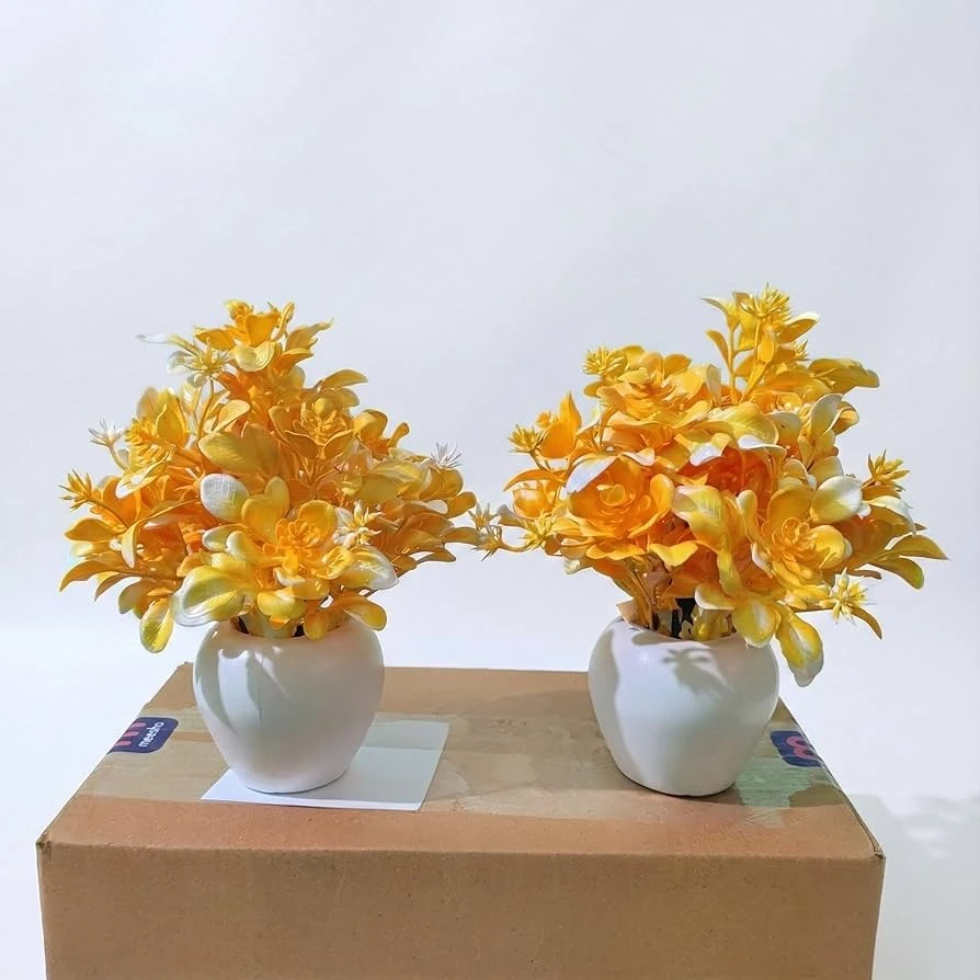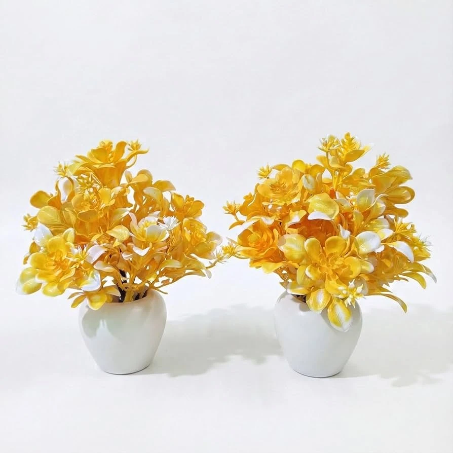 👉 Theme :- Artificial Flowers with Pot | Artificial Flower Plant in Flower Pot | Plastic Decorative Flowers for Room, Living Room, Home & Centre Table Decor [Set of 2 Yellow]