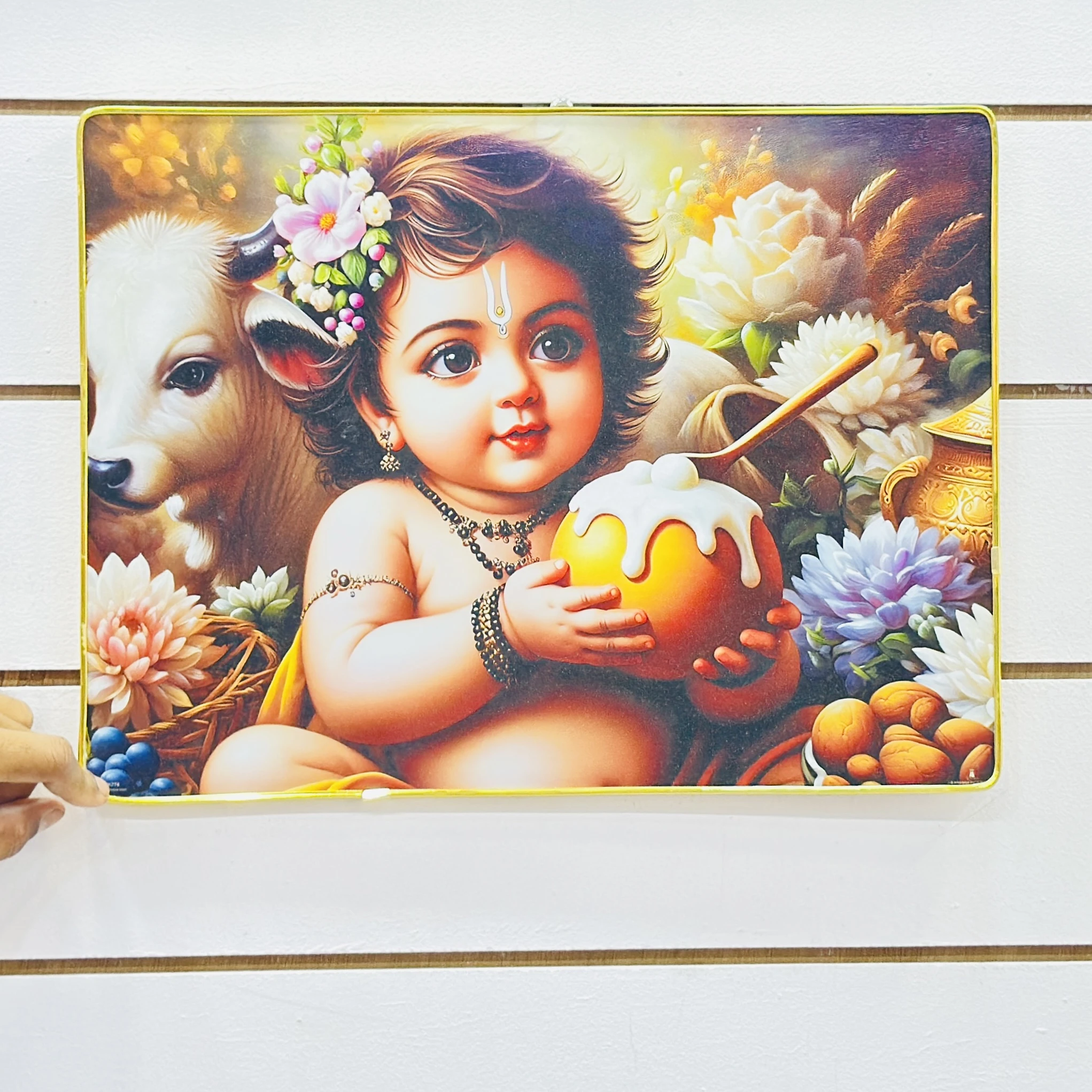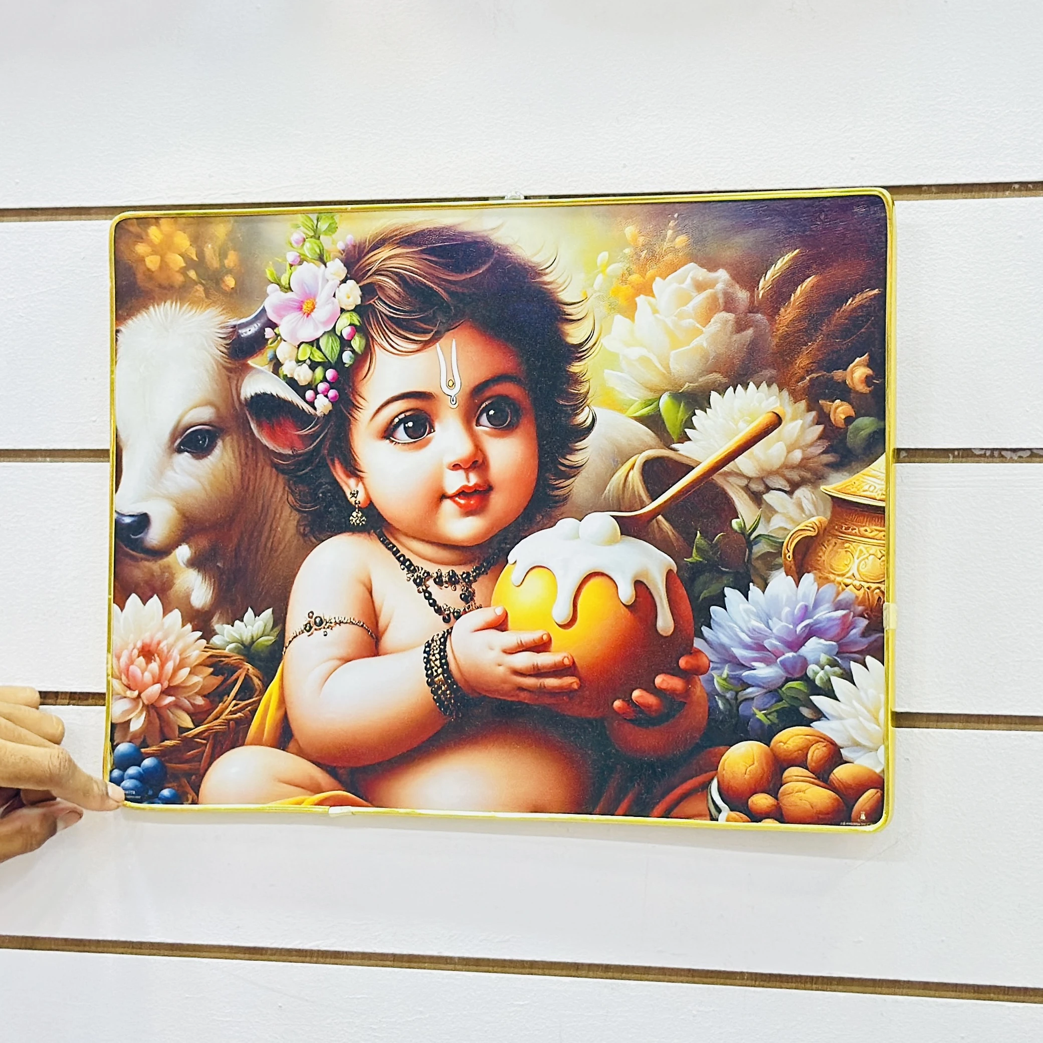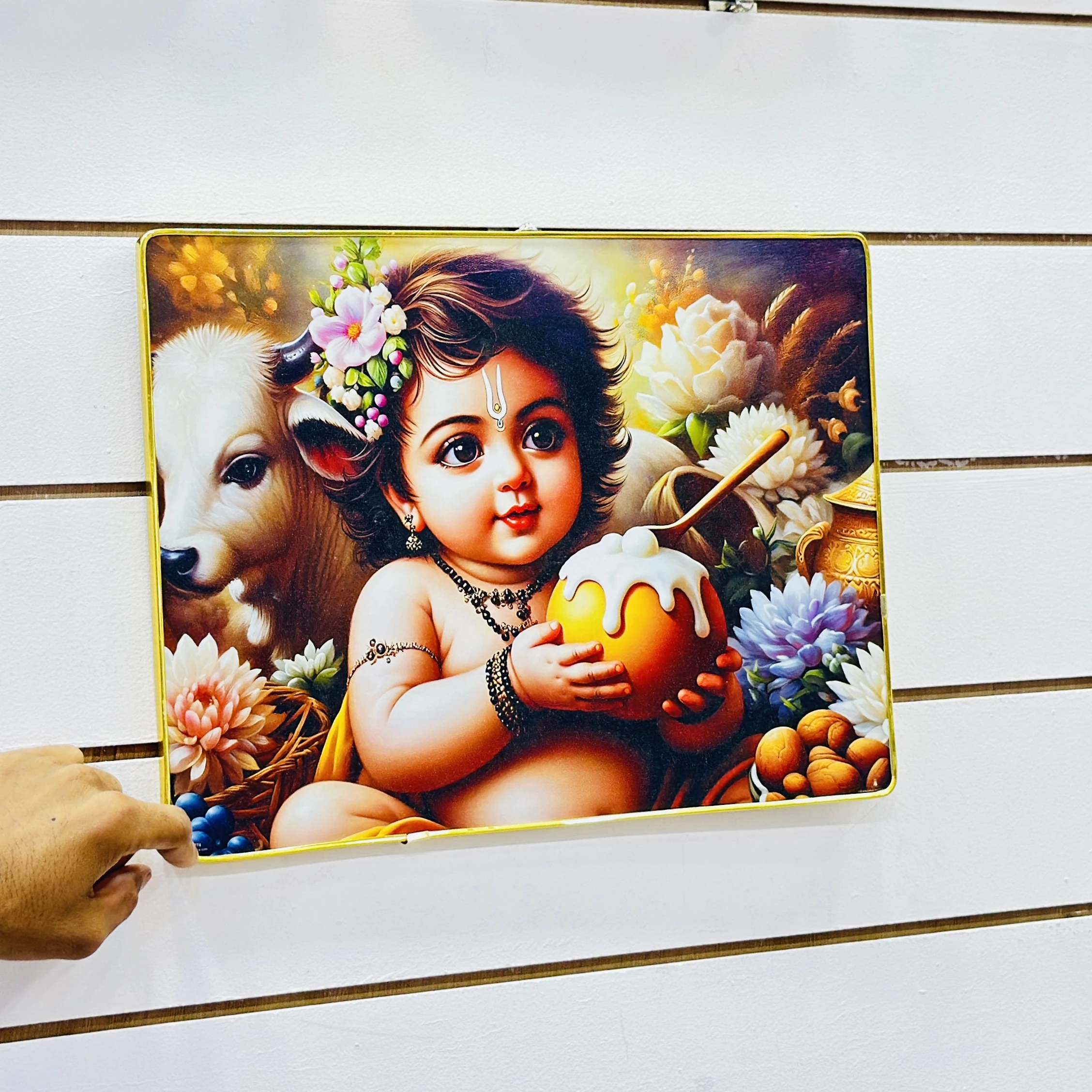 👉 Theme :- Baby Lord Krishna decorative wall art print featuring a glossy finish.