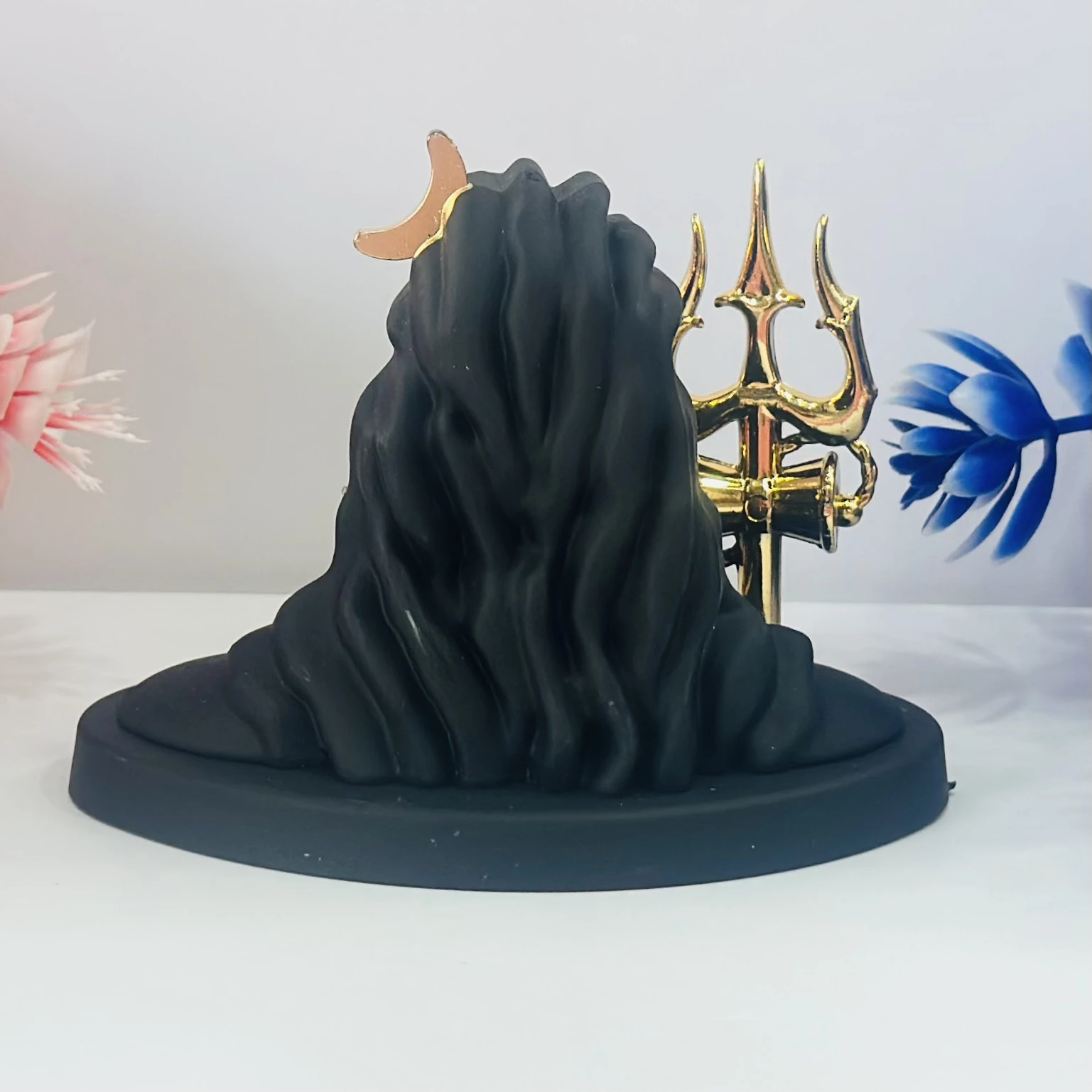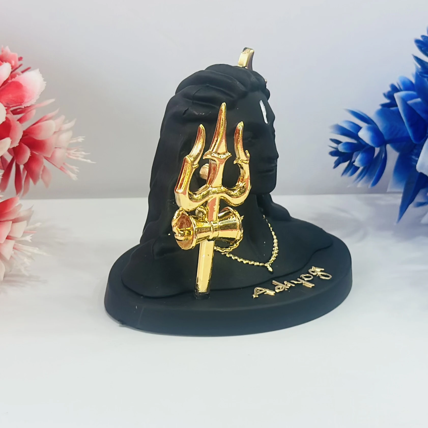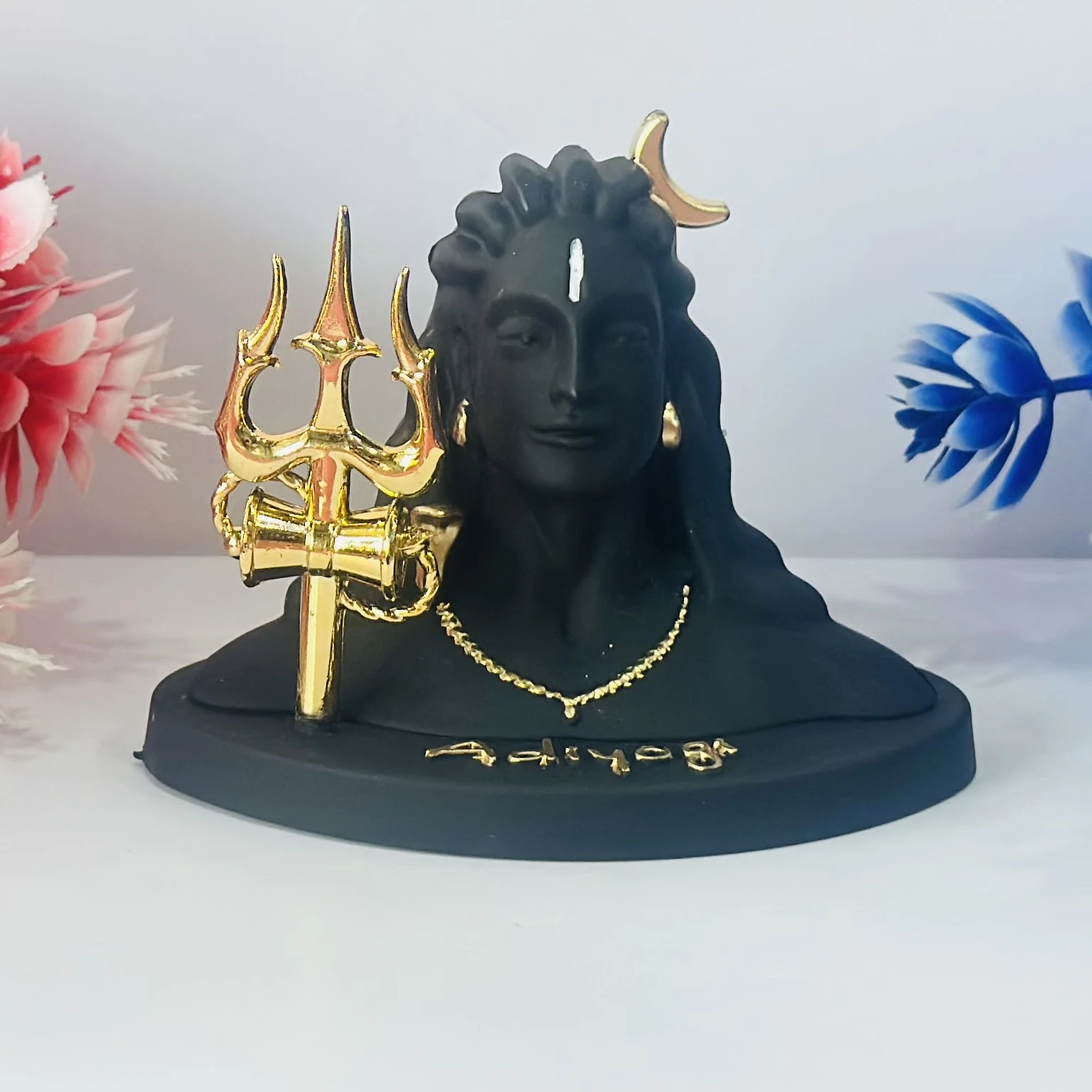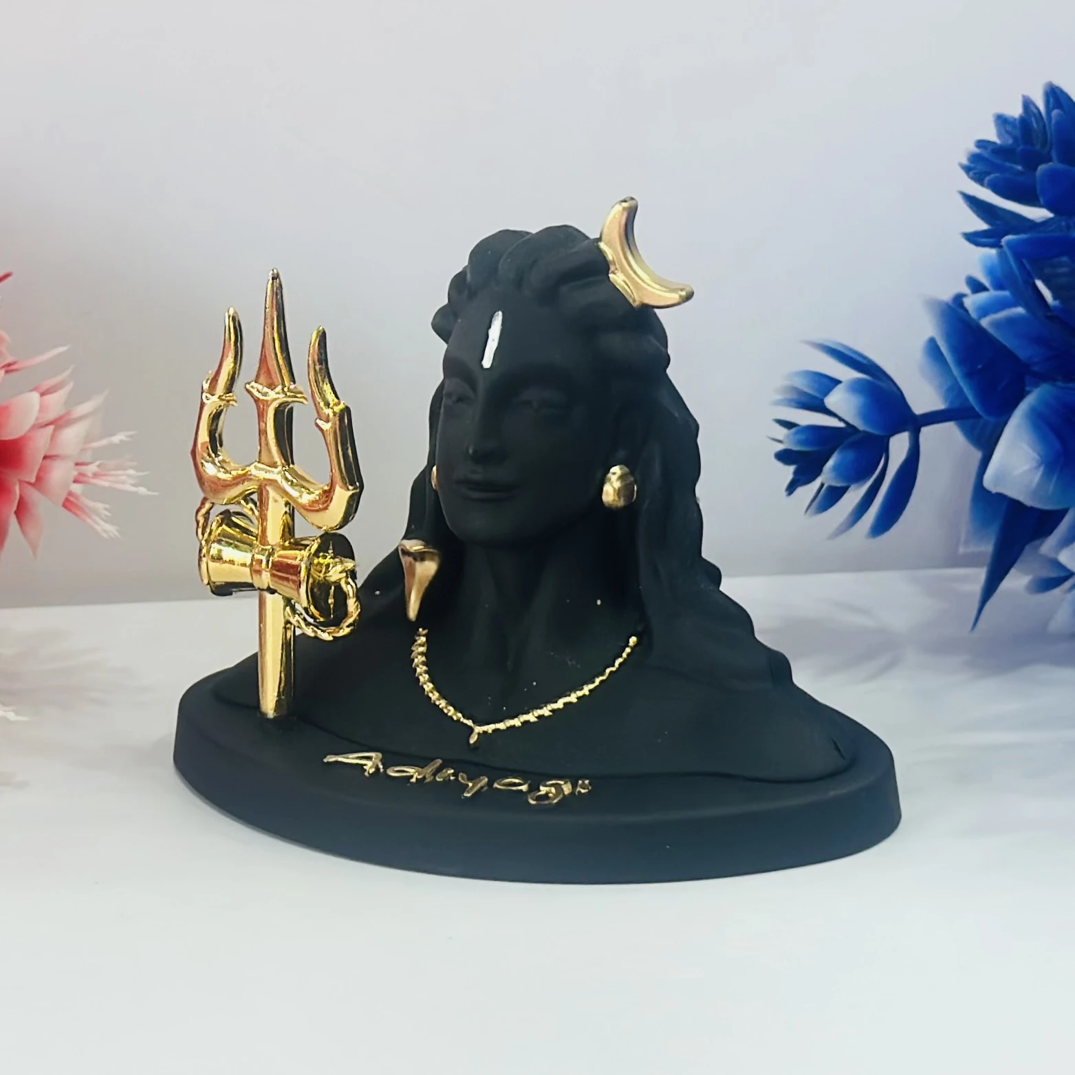 👉 Theme :- Black Adiyogi Shiva statue with a golden Trishul and crescent moon.
