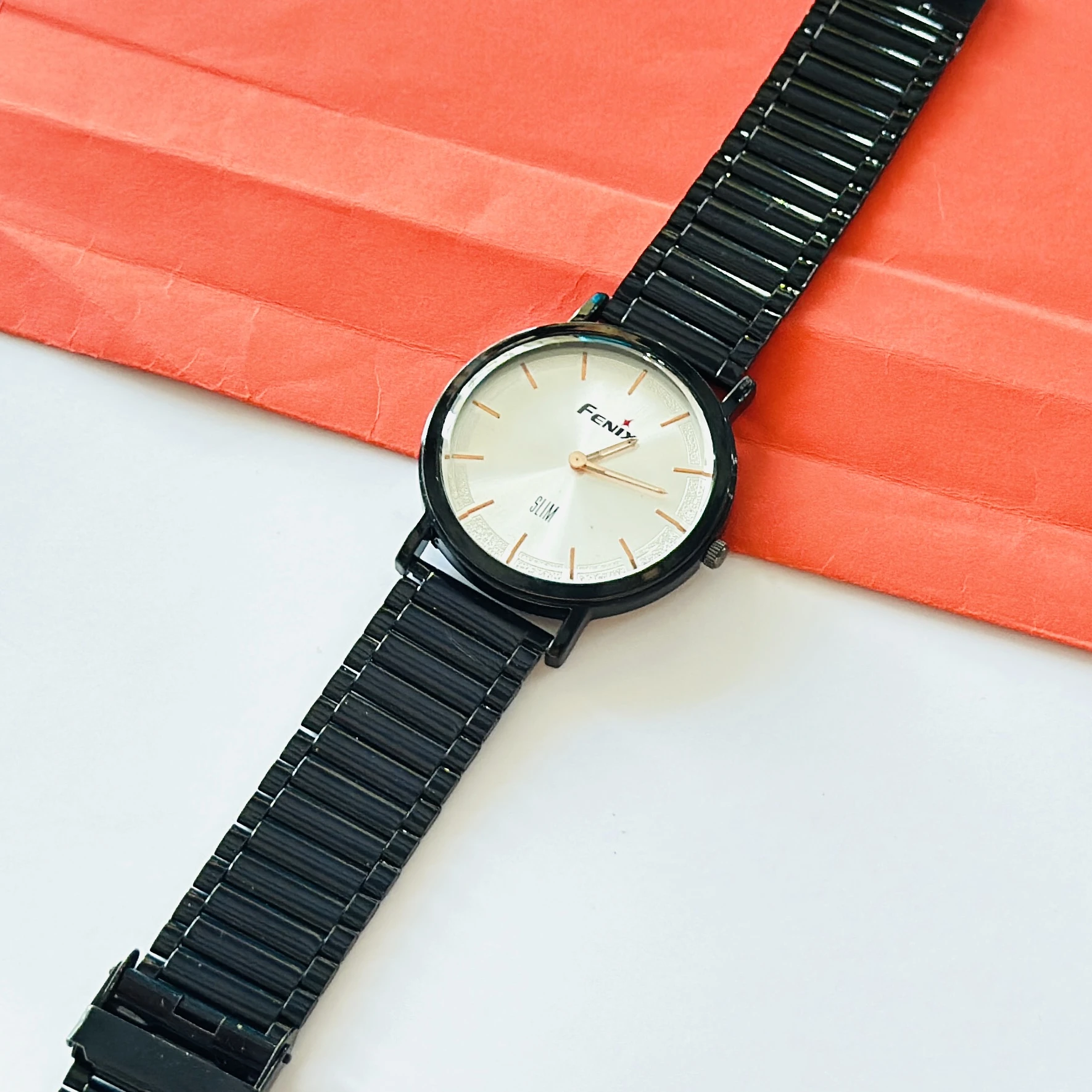 Black analog wristwatch