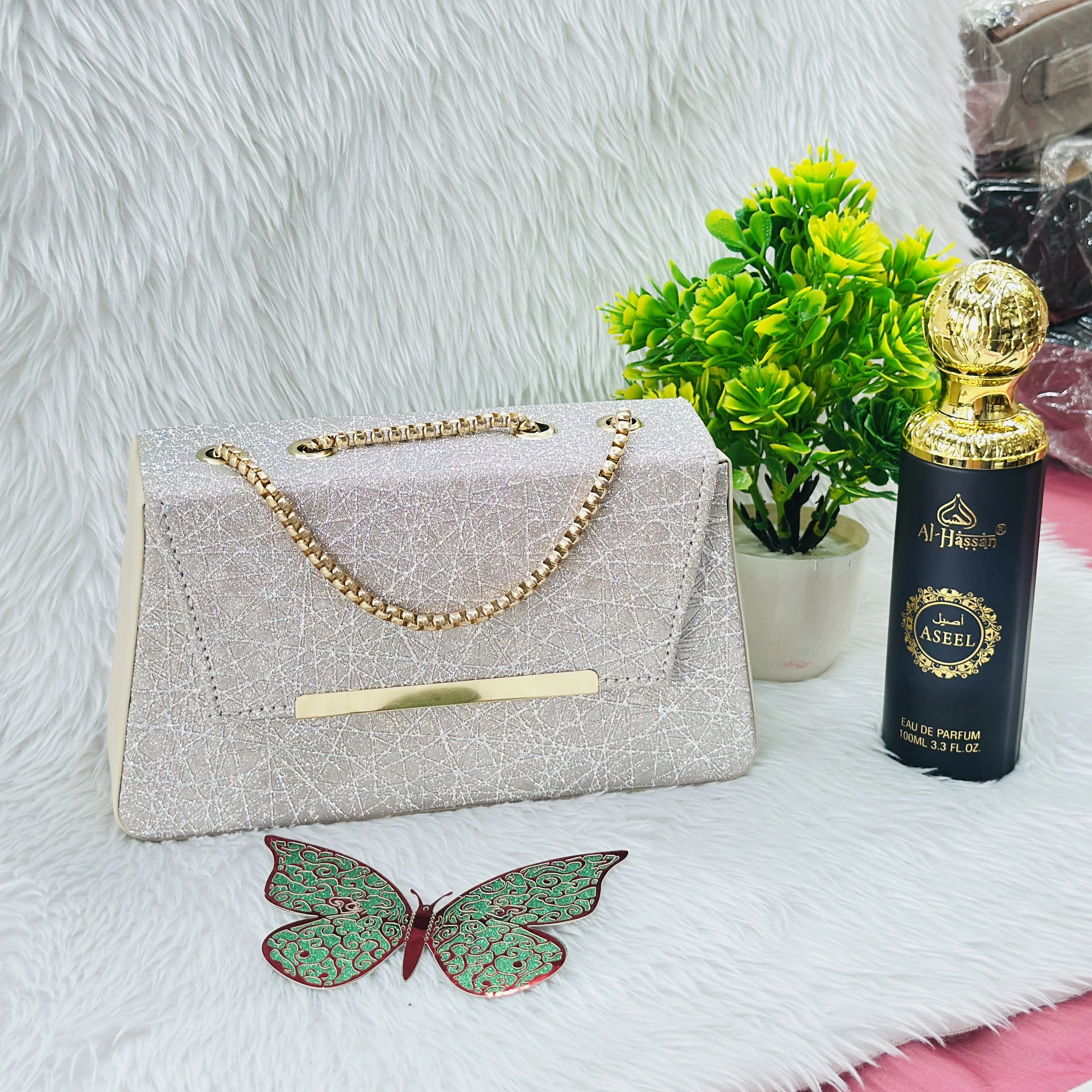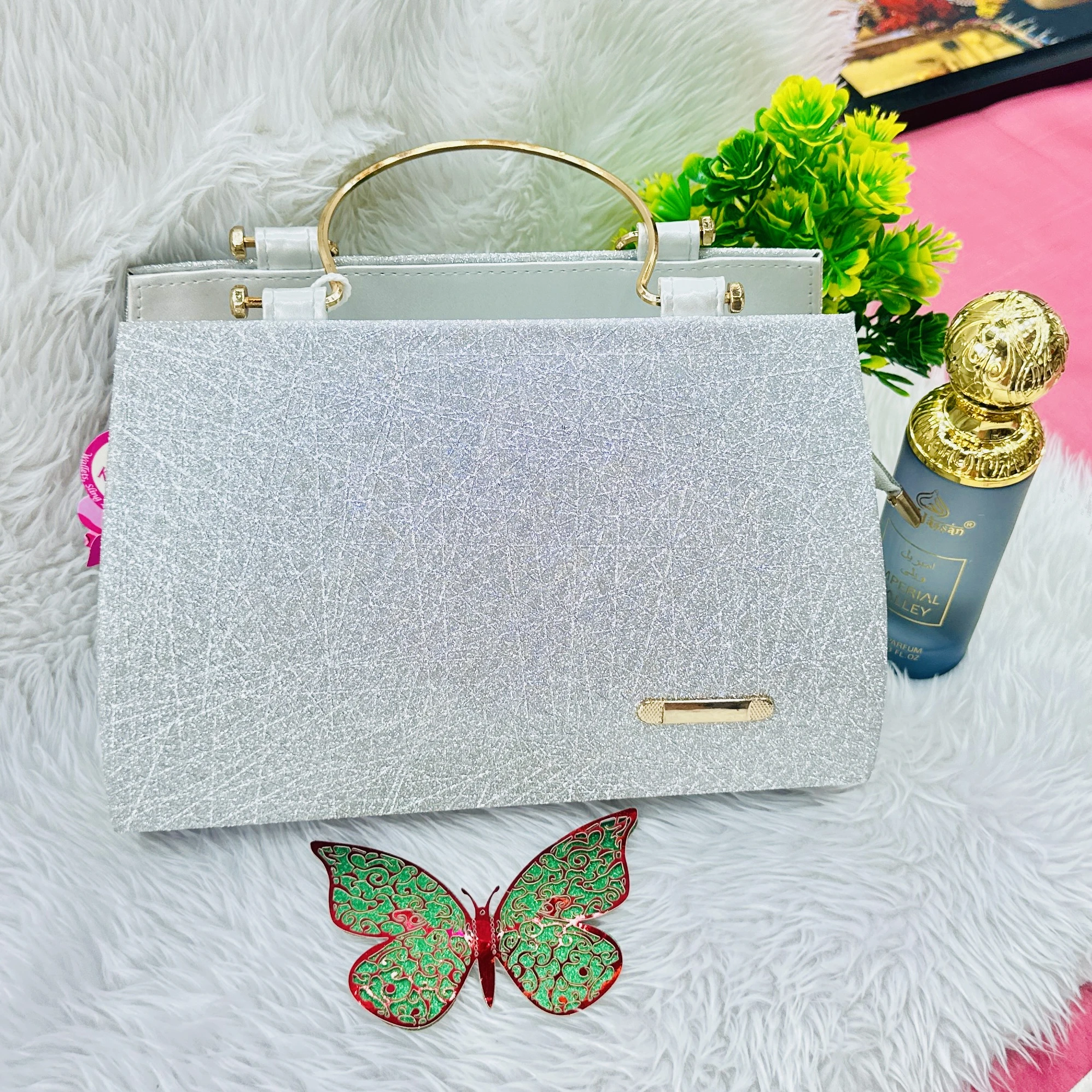 silver glittery hardcase handbag