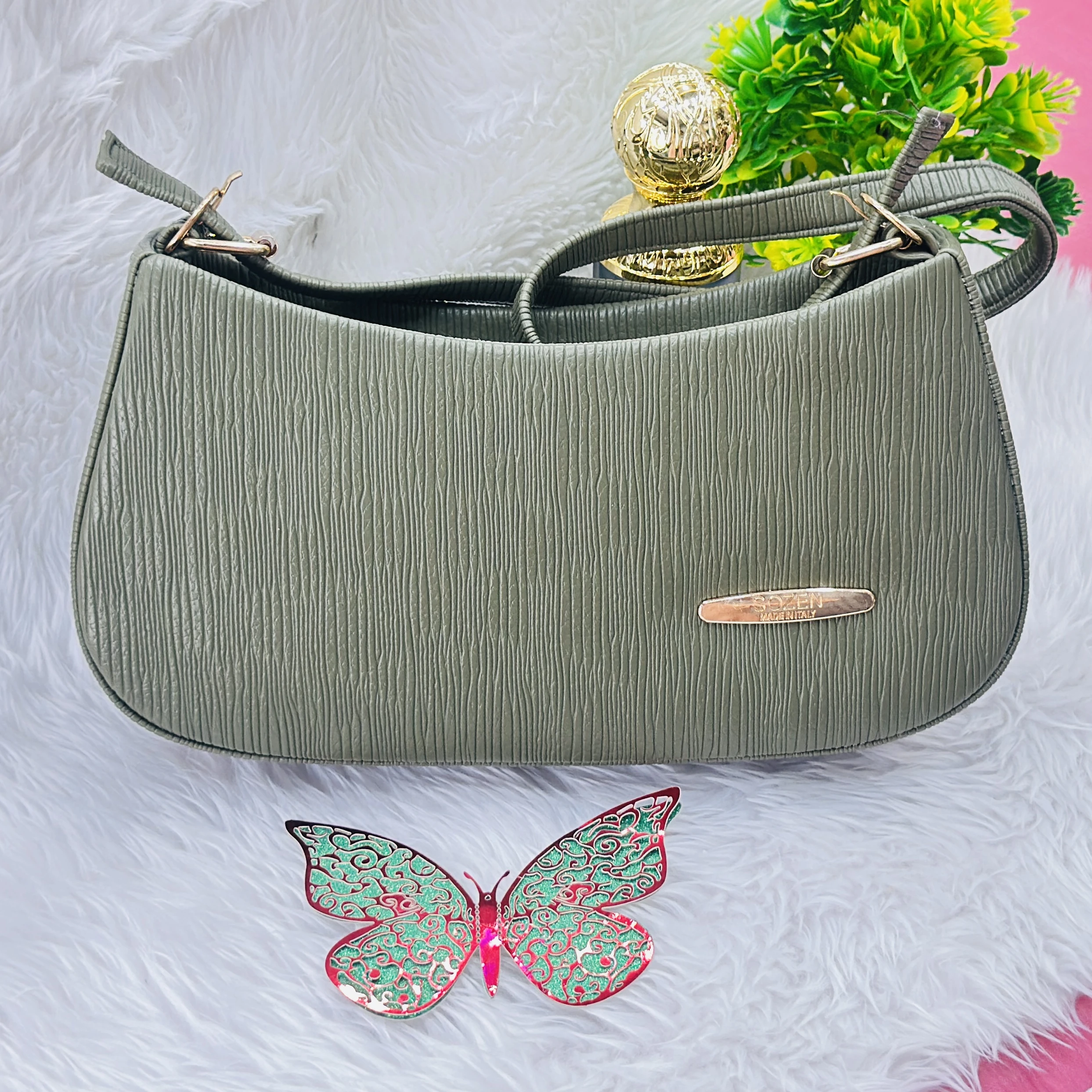 Green textured hobo bag