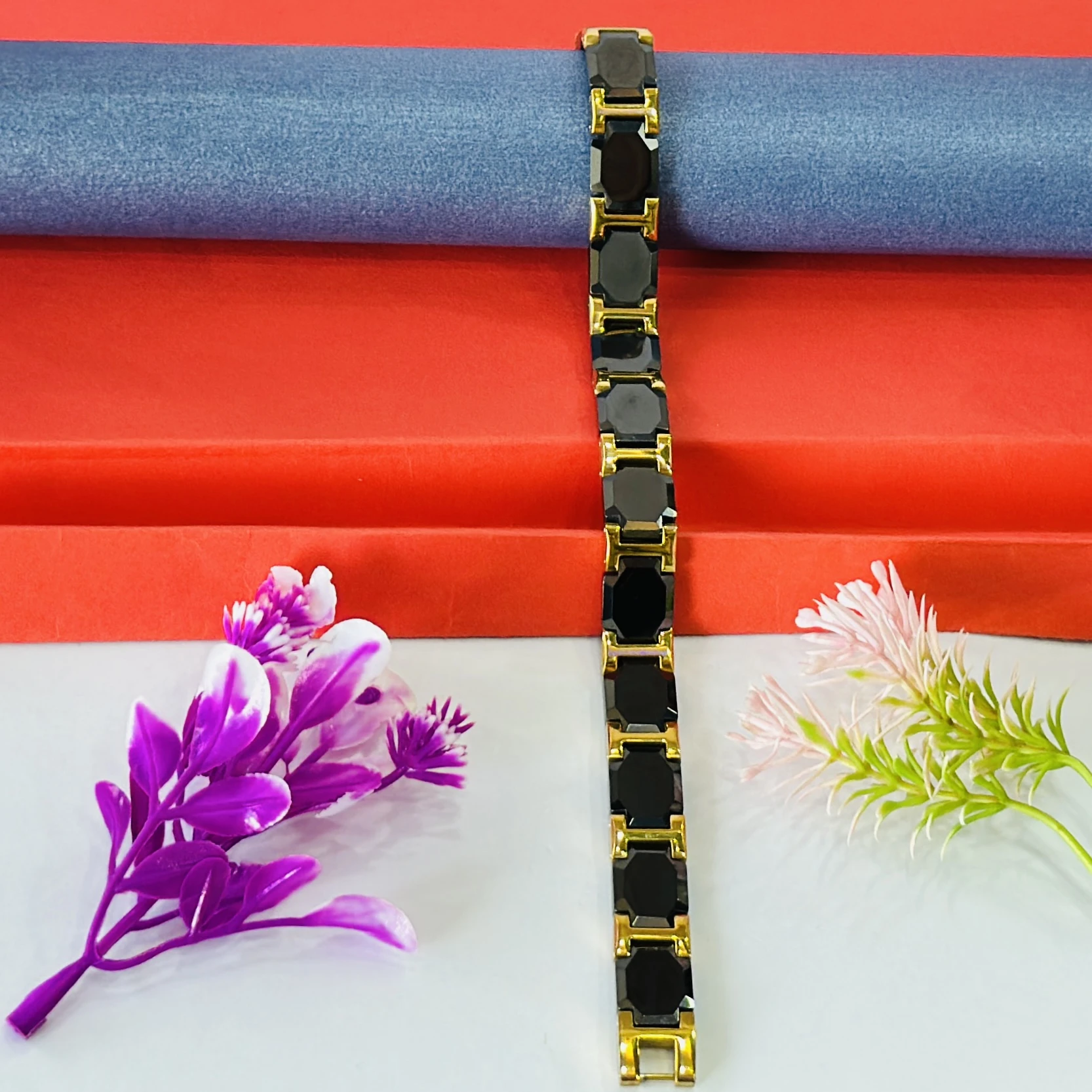 👉Theme :- Black ceramic and gold-tone magnetic link bracelet.