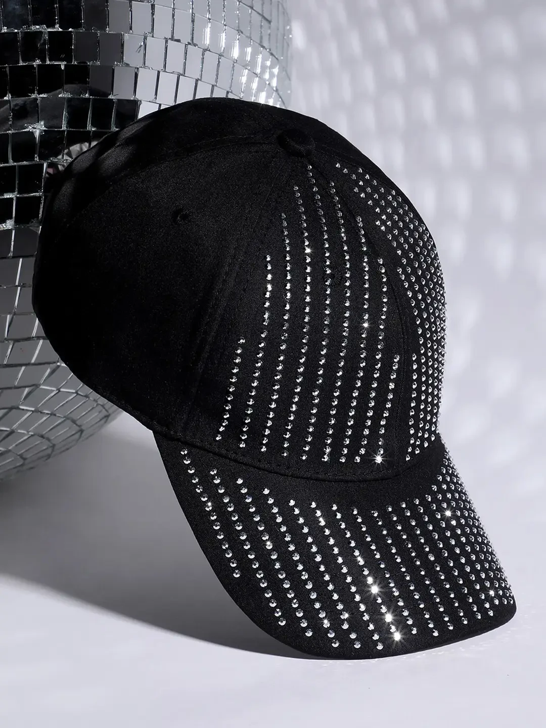 Black embellished baseball cap