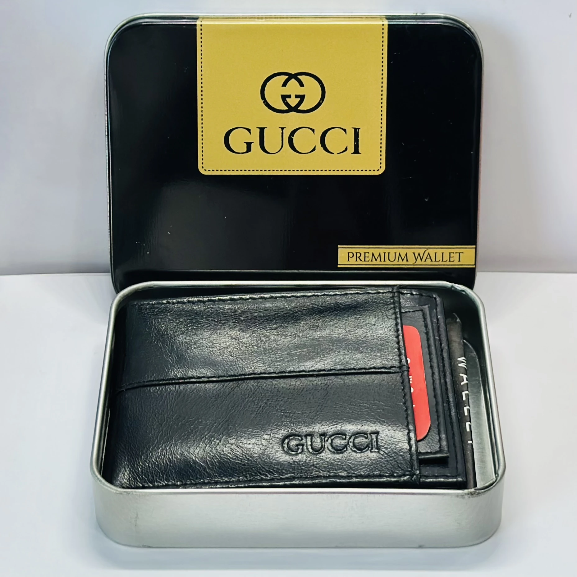 👉 Theme :- Black faux leather bifold wallet