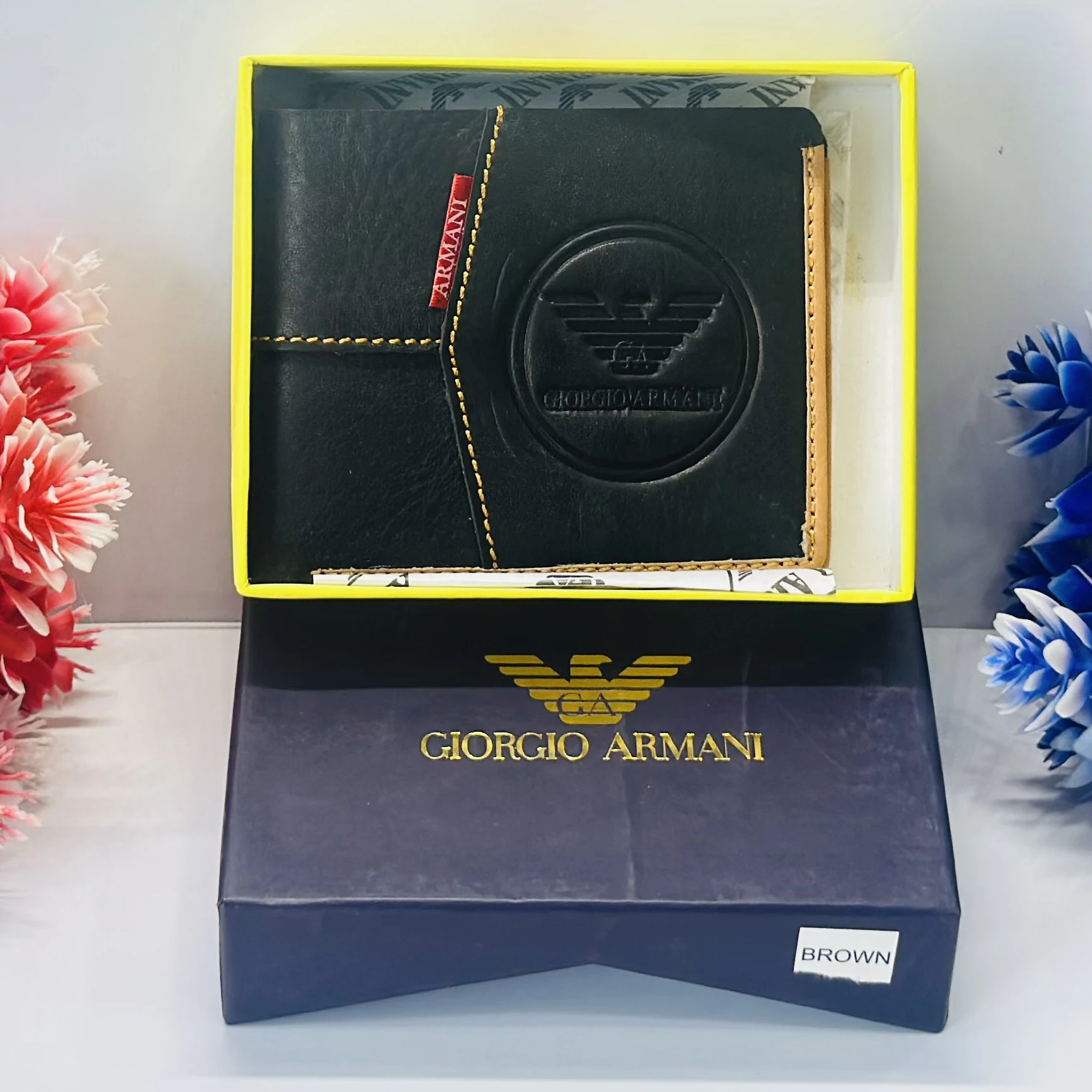 👉 Theme :- black Giorgio Armani bifold leather men's wallet.