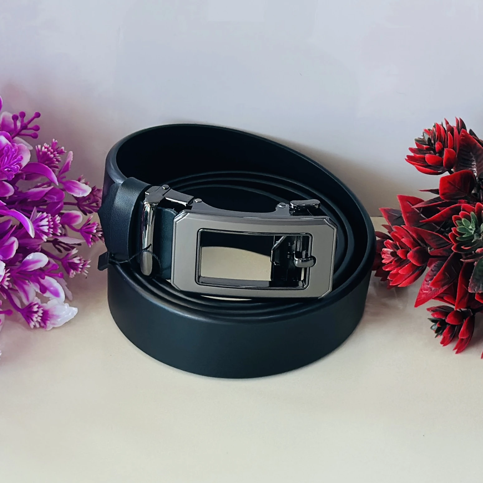 👉 Theme :- Black artificial leather auto-lock buckle belt for men.