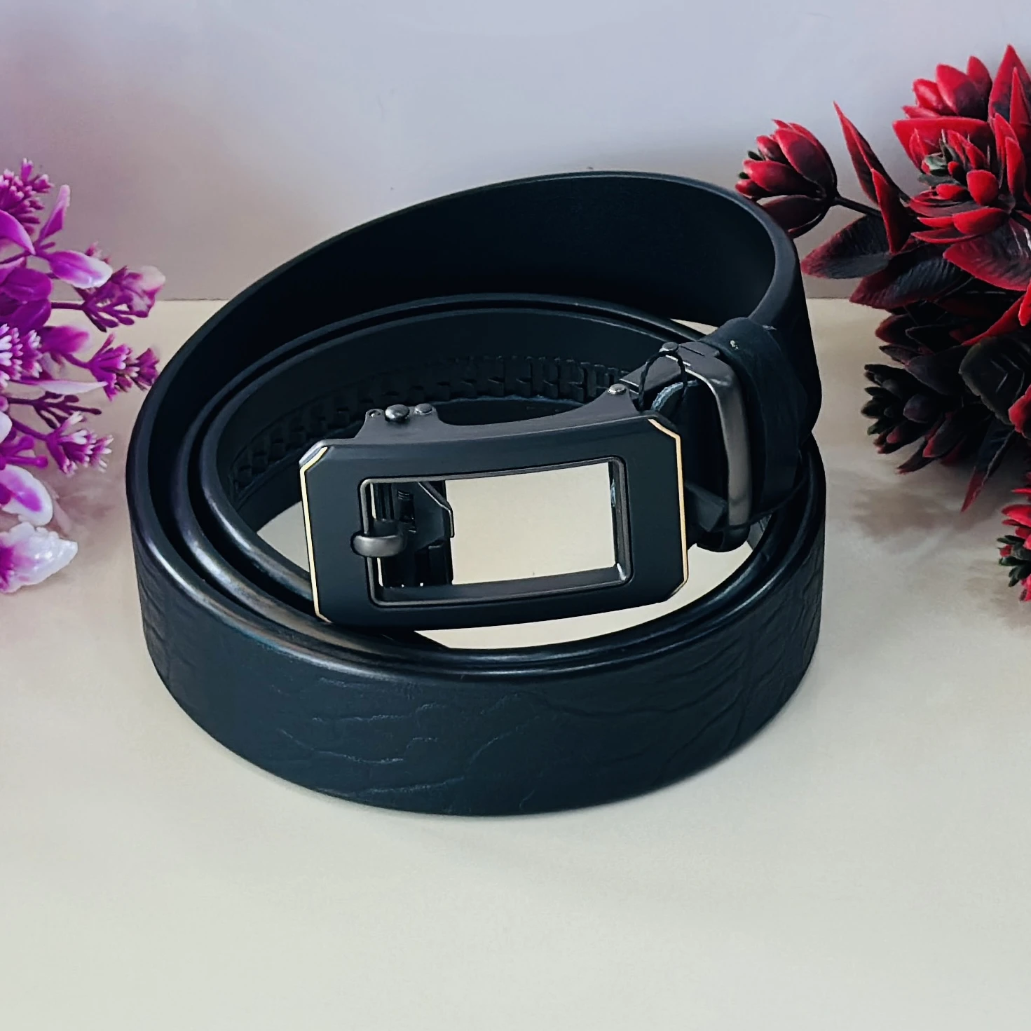 👉 Theme :- Black artificial leather auto-lock buckle belt for men.