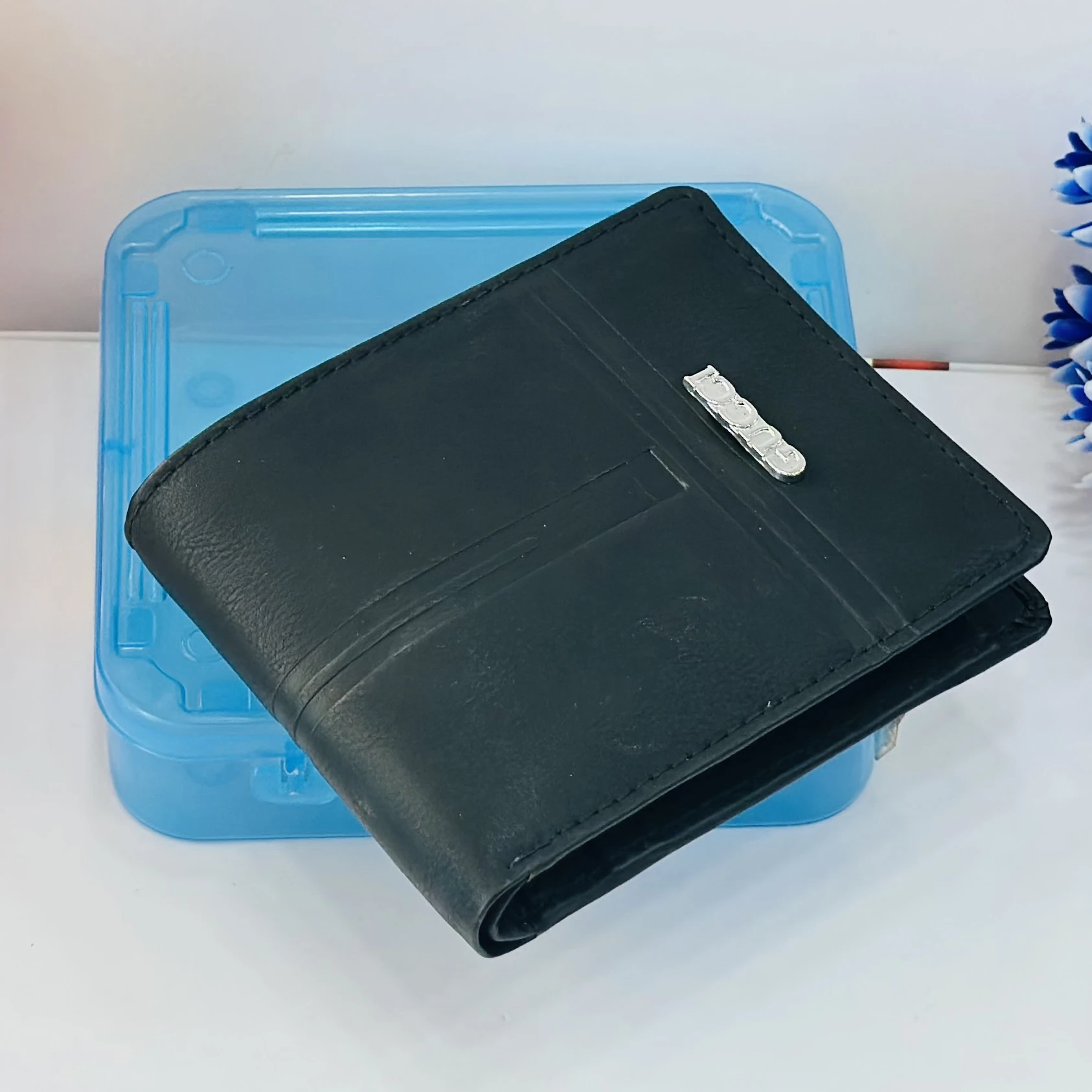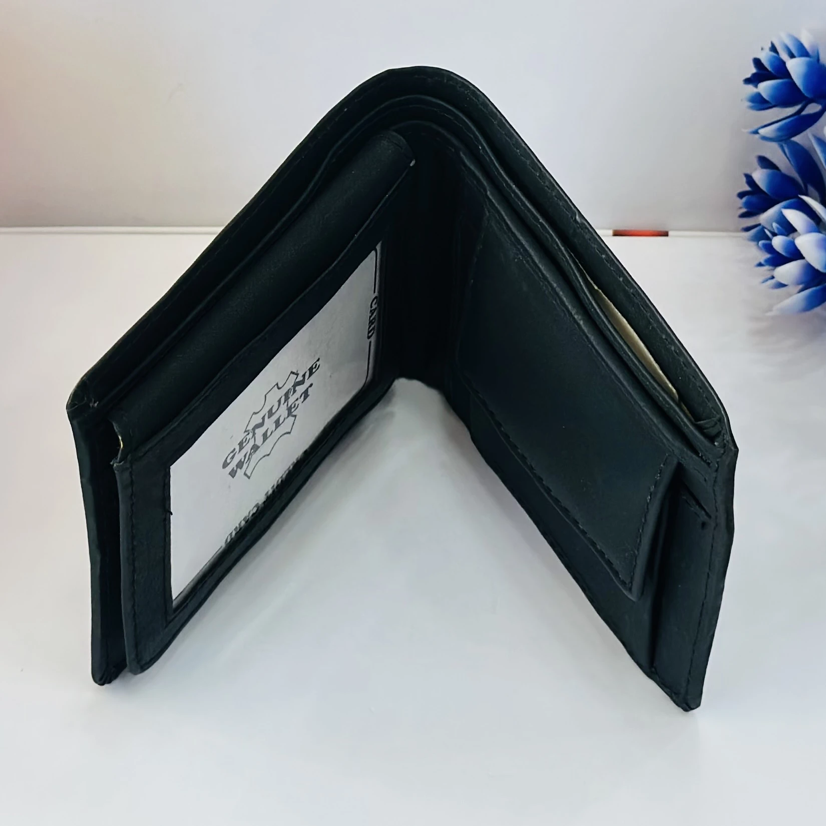 👉 Theme :- Black leather bi-fold men's wallet