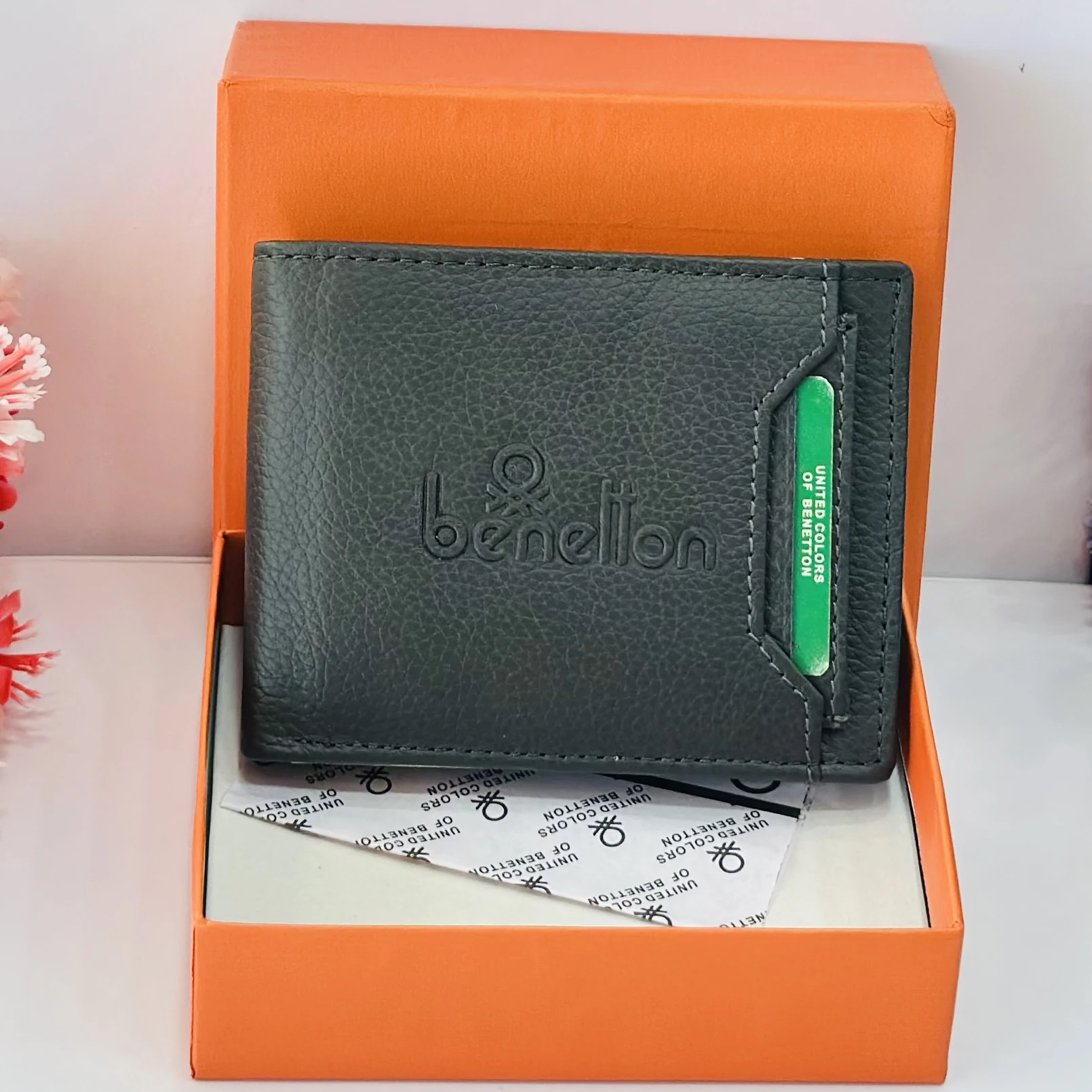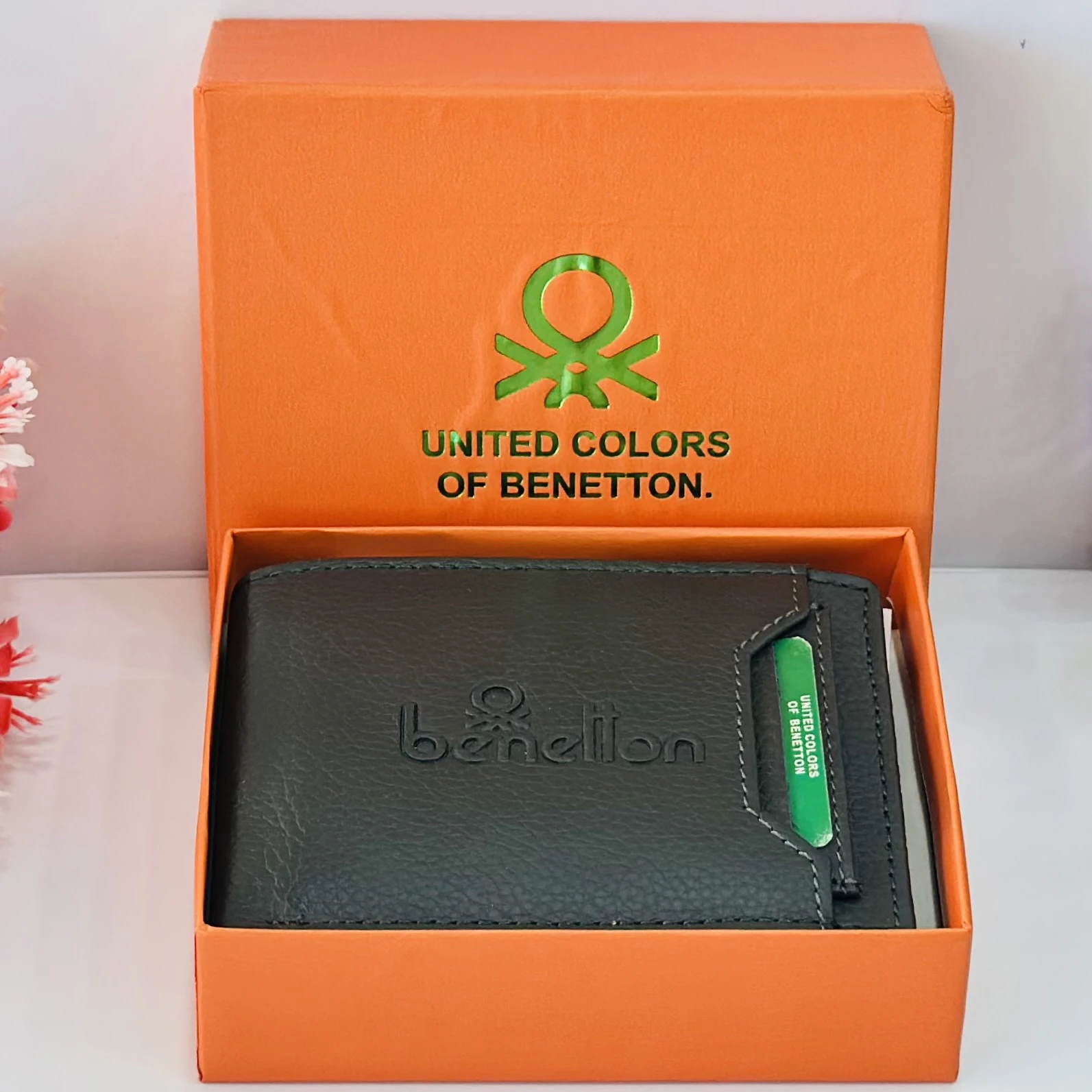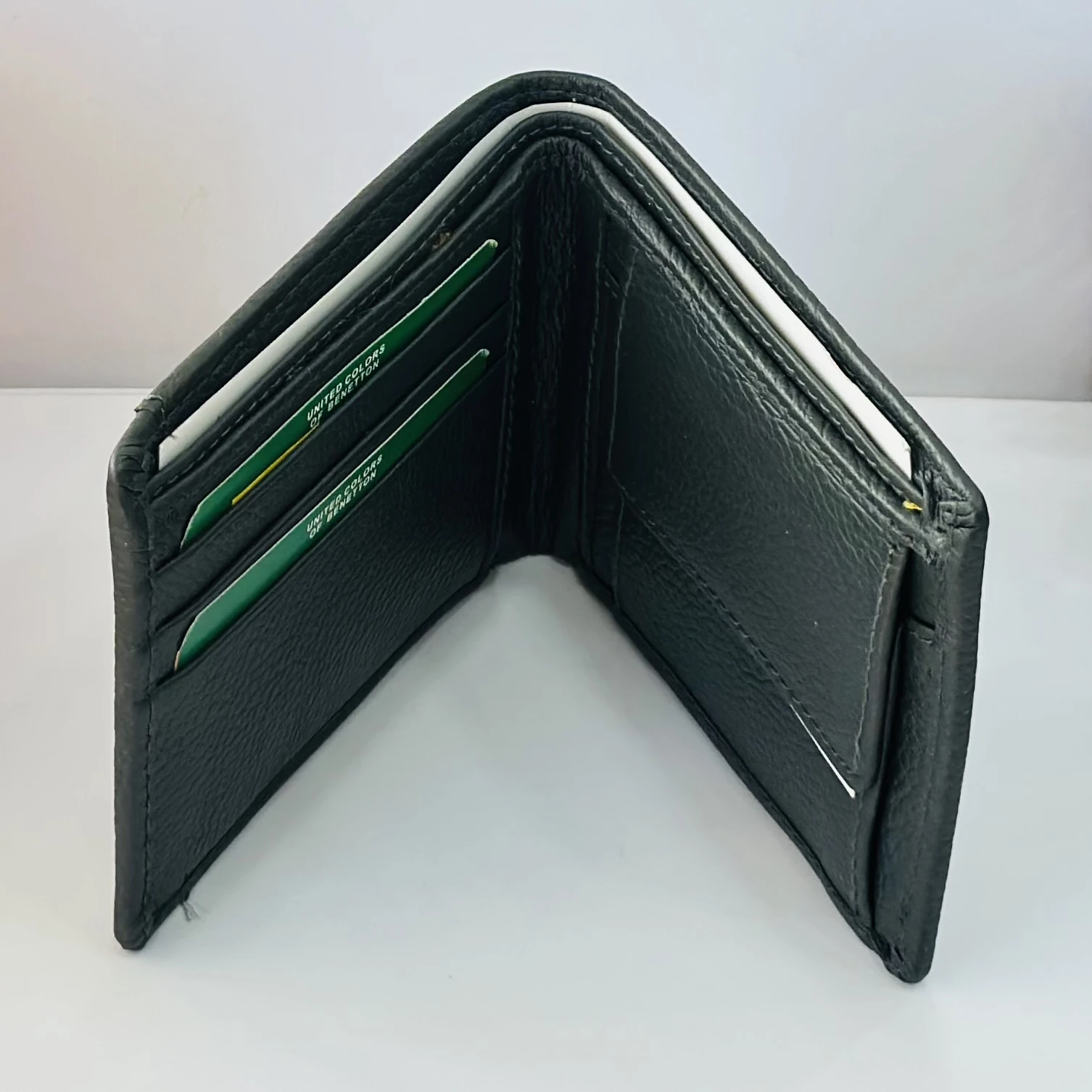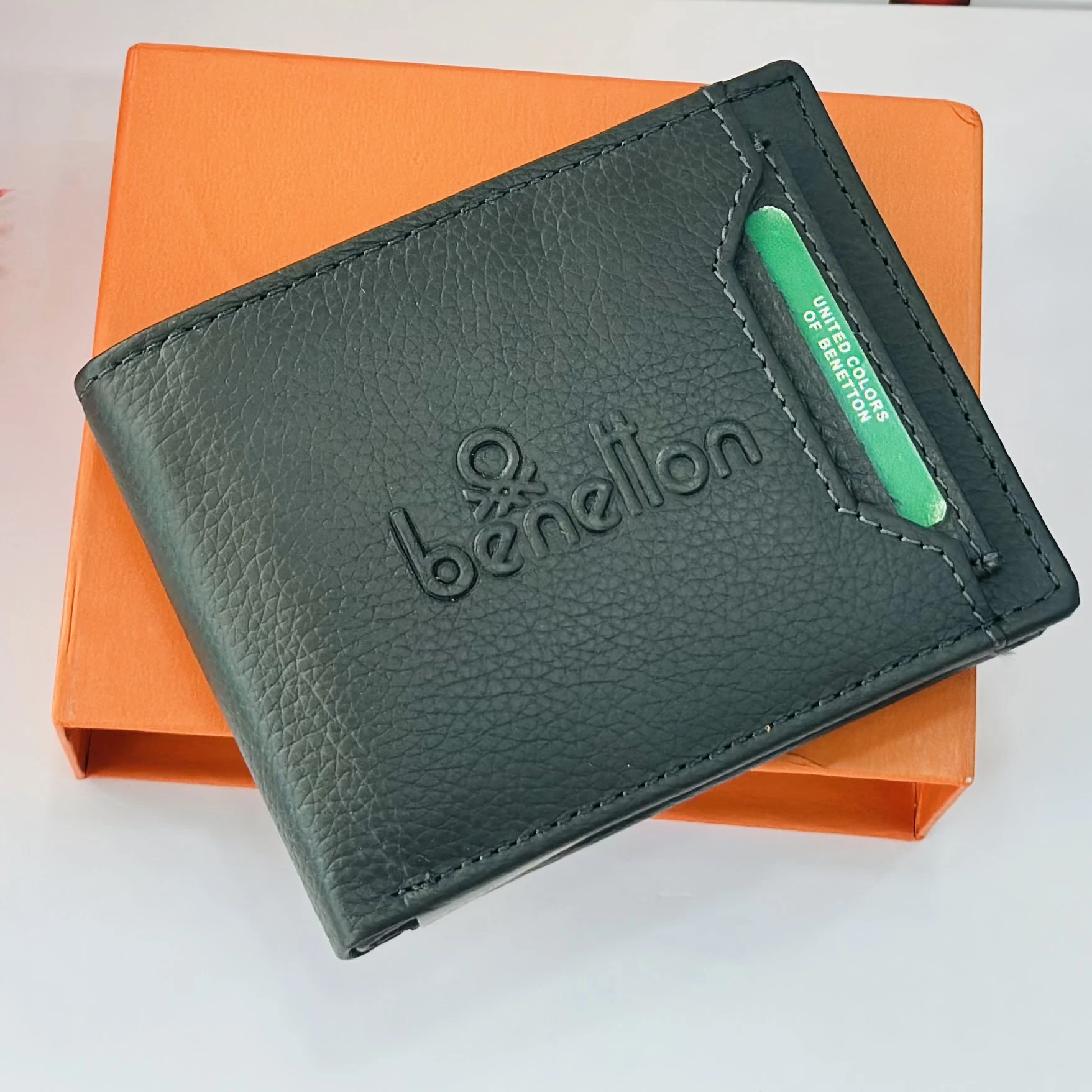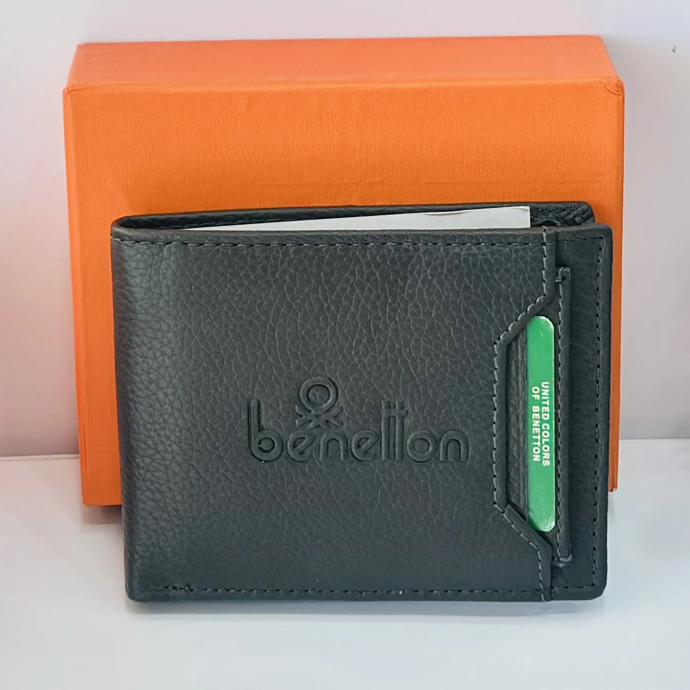 👉 Theme :- Black leather bi-fold wallet from United Colors of Benetton.