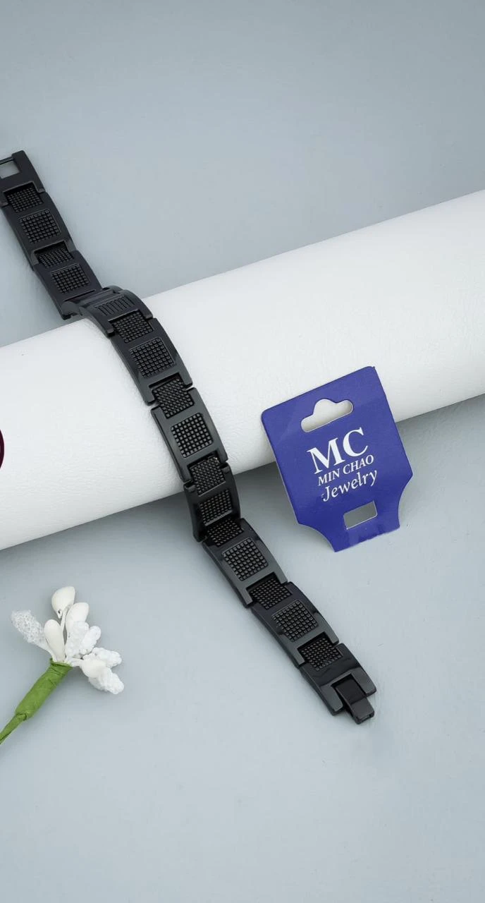 👉Theme :-black link bracelet with a rugged design, possibly made of stainless steel.