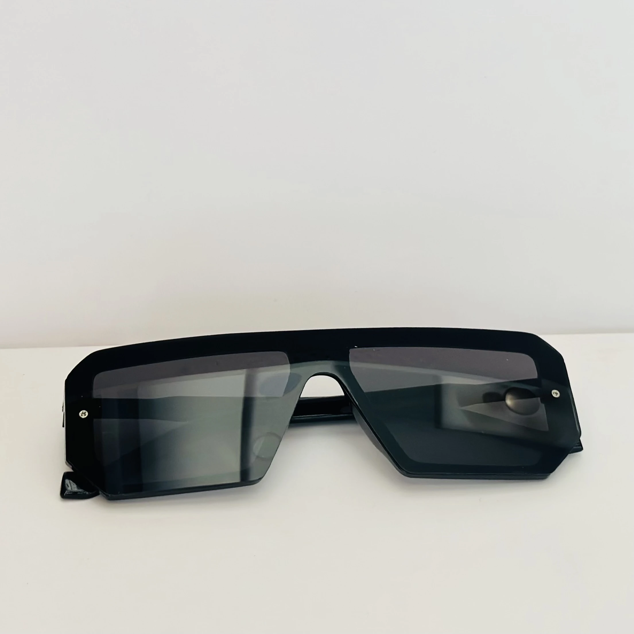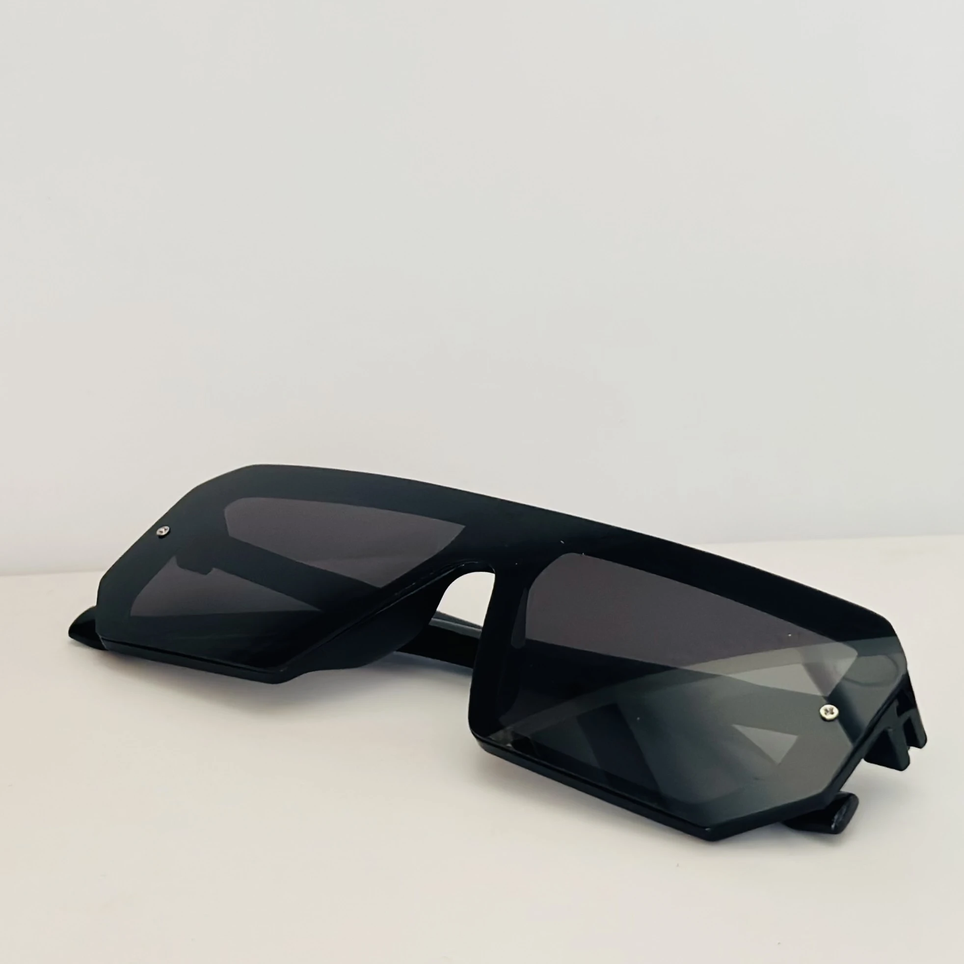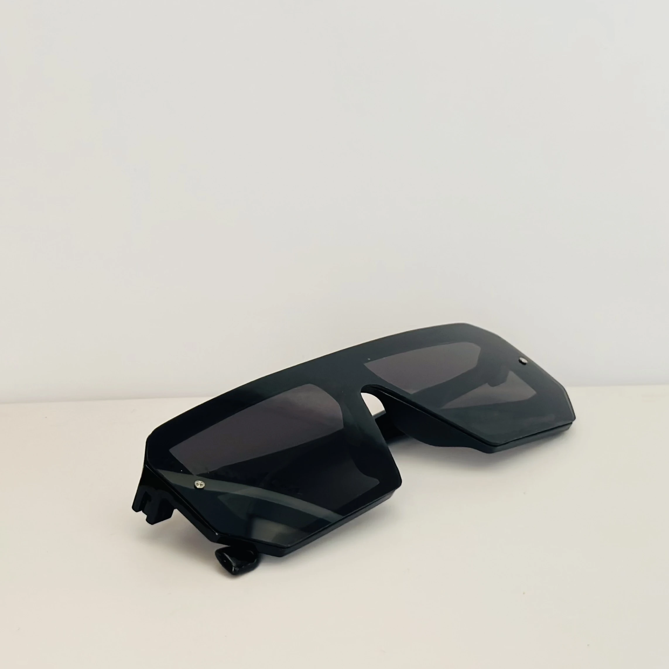 👉 Theme :- black oversized square flat top sunglasses with a visor design.