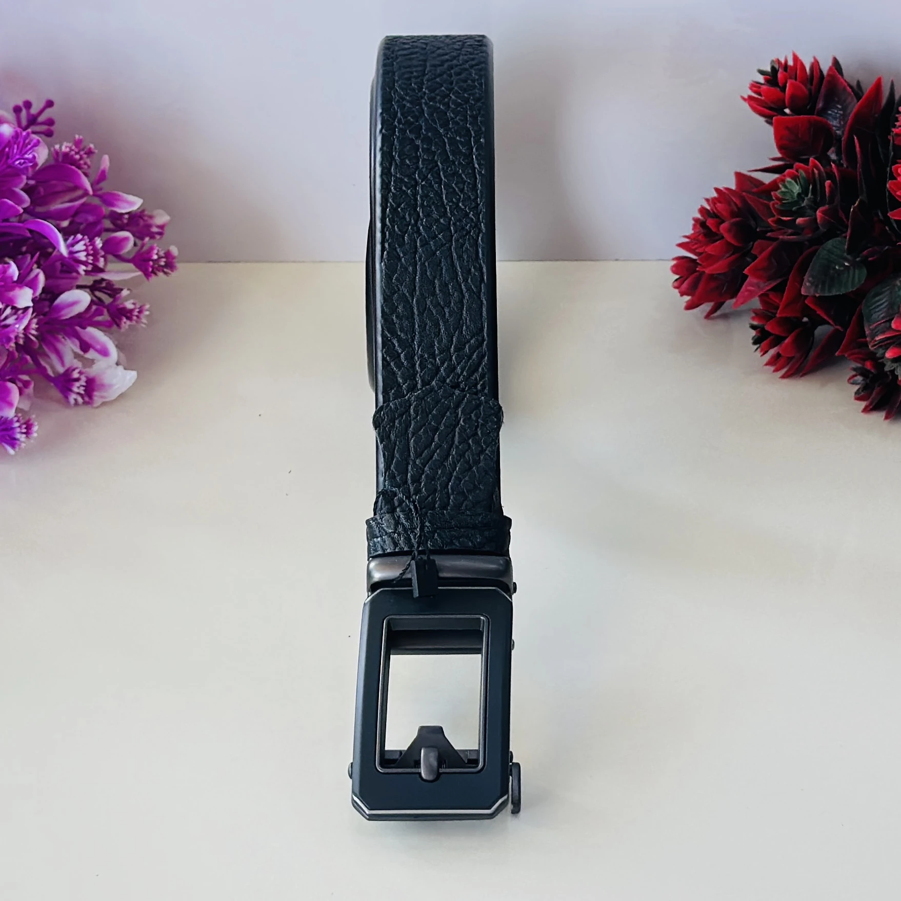 👉 Theme :- Black artificial leather auto-lock buckle belt for men.