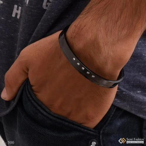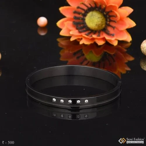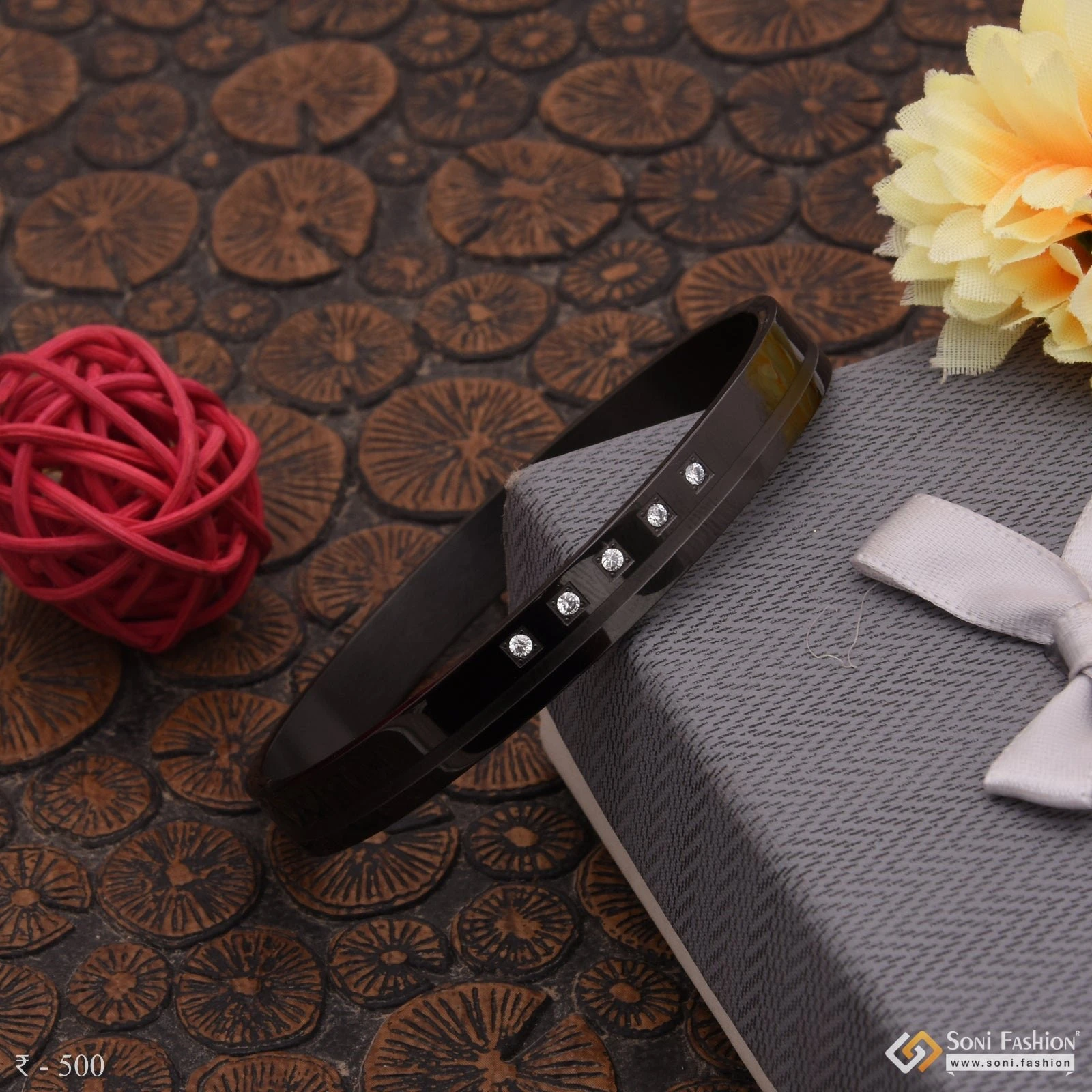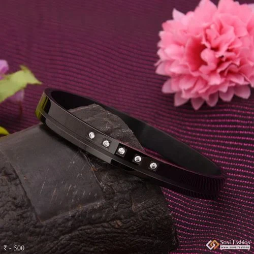 👉 Theme :- Black rhodium-plated bracelet with zircons, likely made of stainless steel.