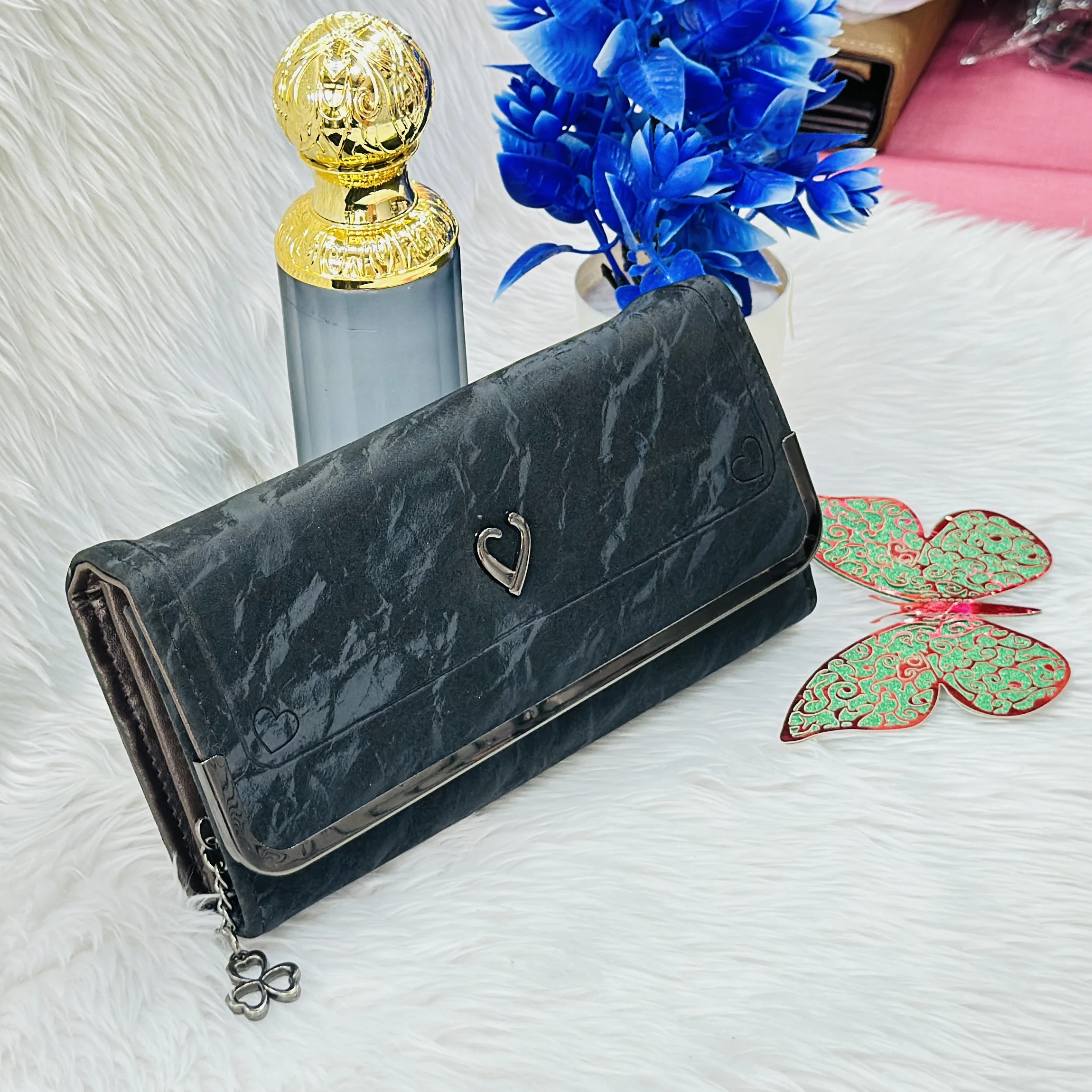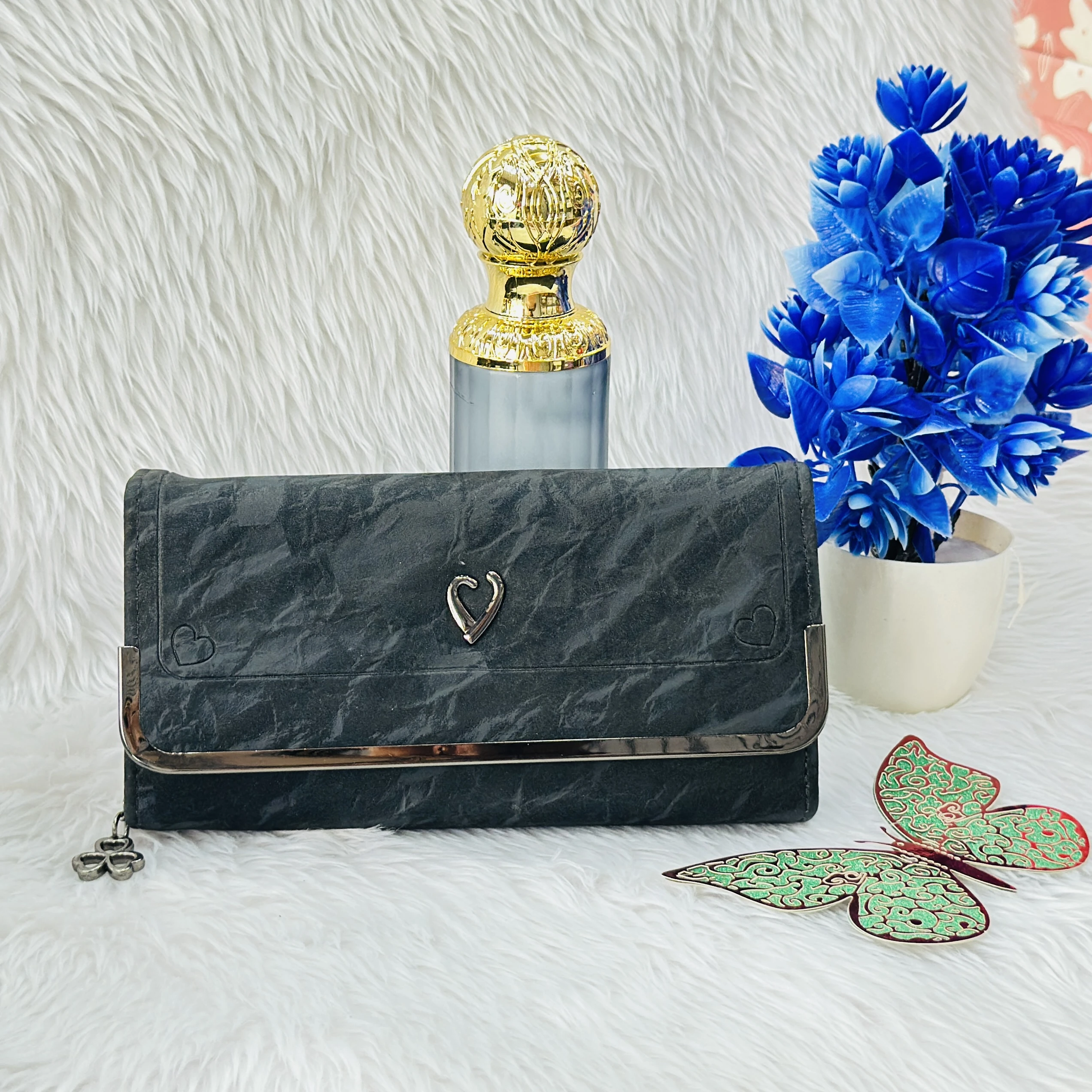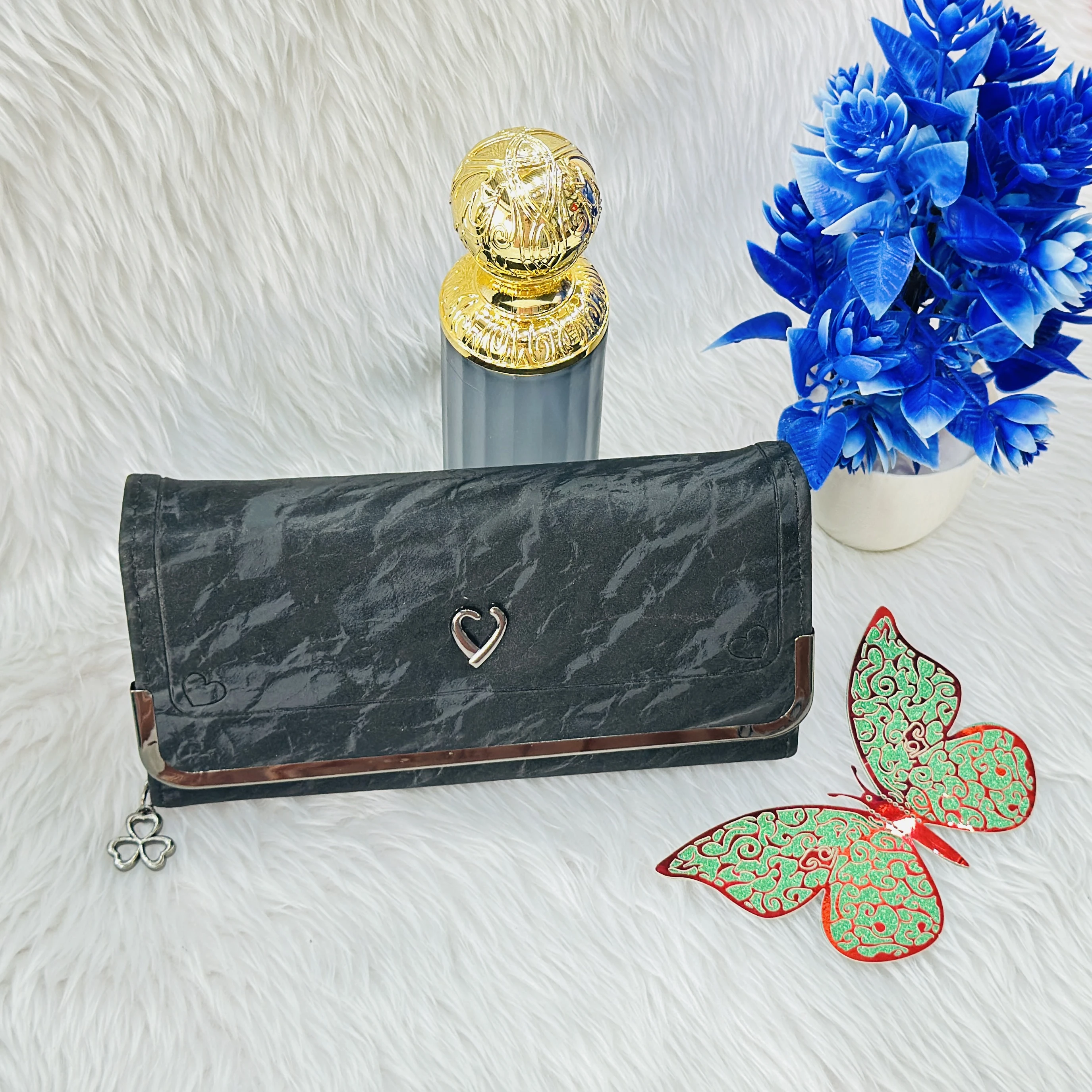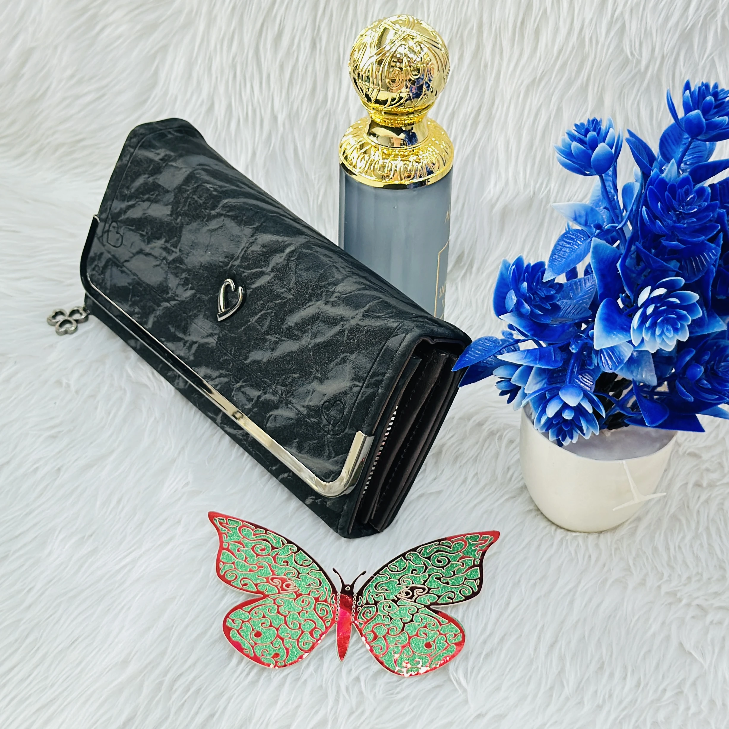 👉 Theme :- Black textured women's clutch wallet,