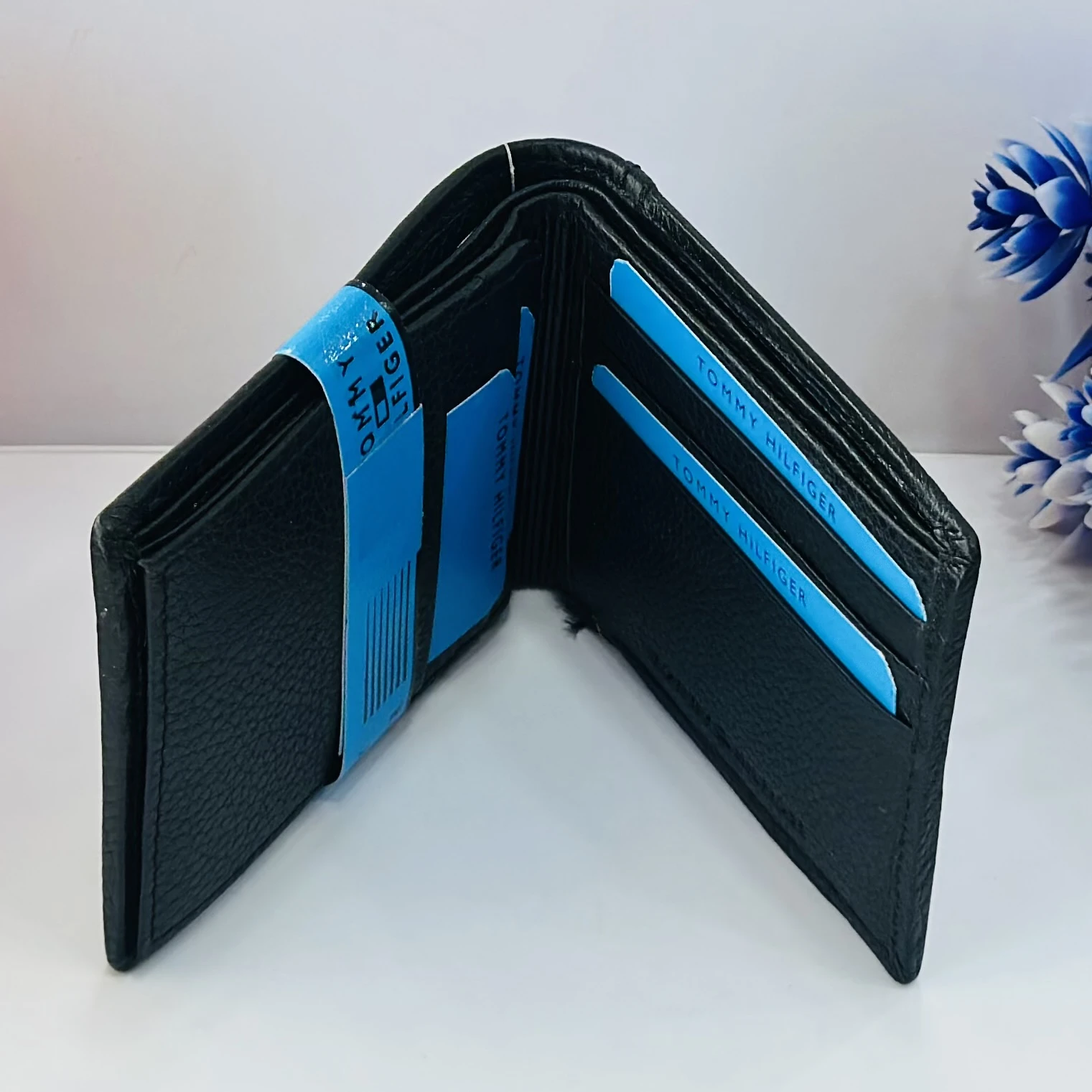 👉 Theme :- Black Tommy Hilfiger men's genuine leather bi-fold wallet.