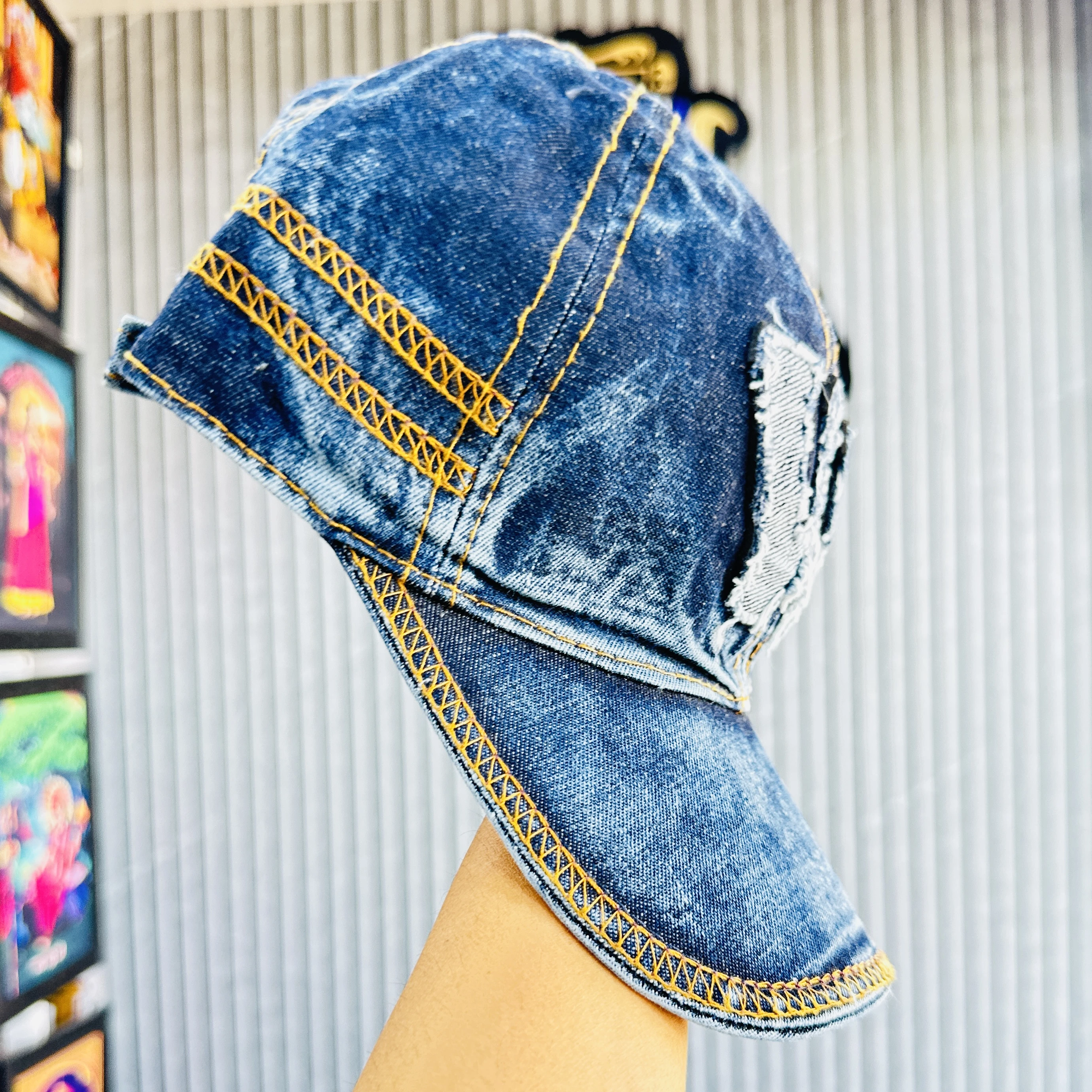 Blue denim baseball cap