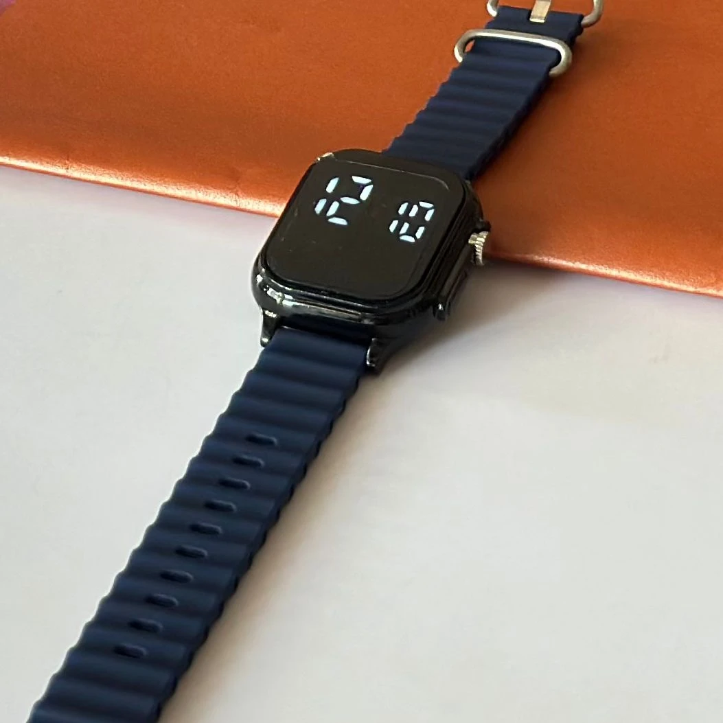 👉 Theme :- blue digital wristwatch with a blue silicone strap.