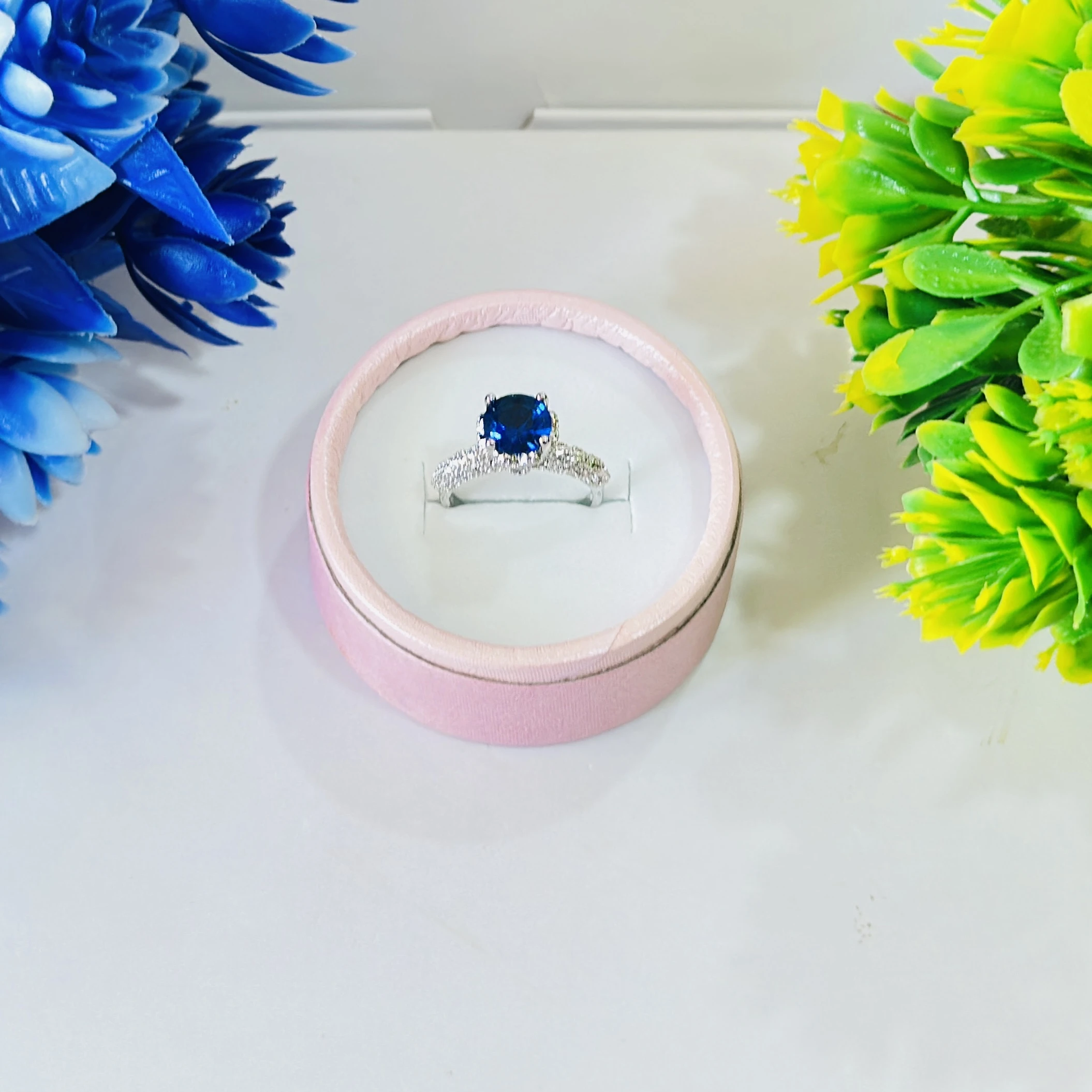 👉 Theme :- Round Blue Garnet White Created Sapphire 925 Sterling Silver Engagement Ring
