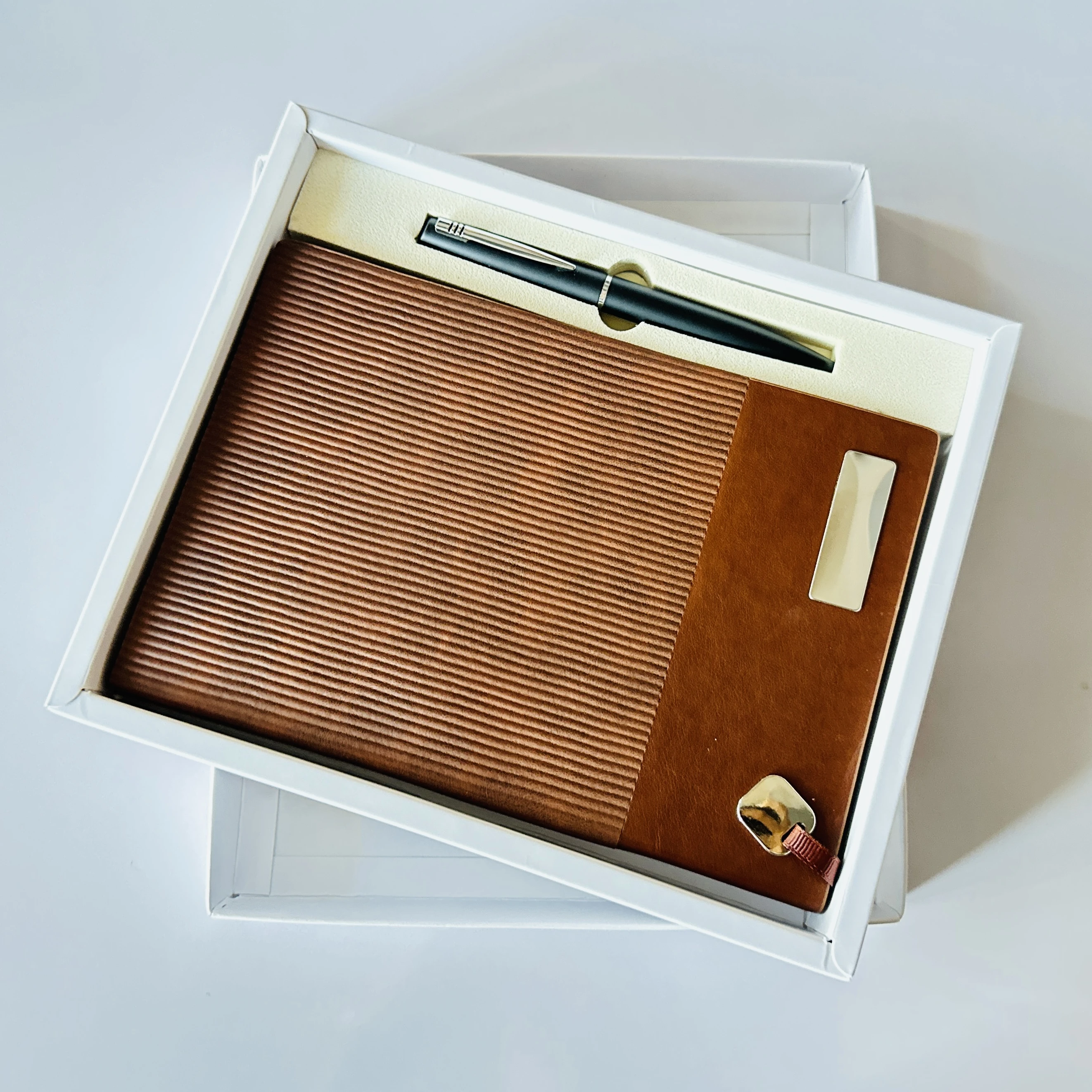 👉 Theme :- corporate gift set containing a leatherette notebook and a matching pen