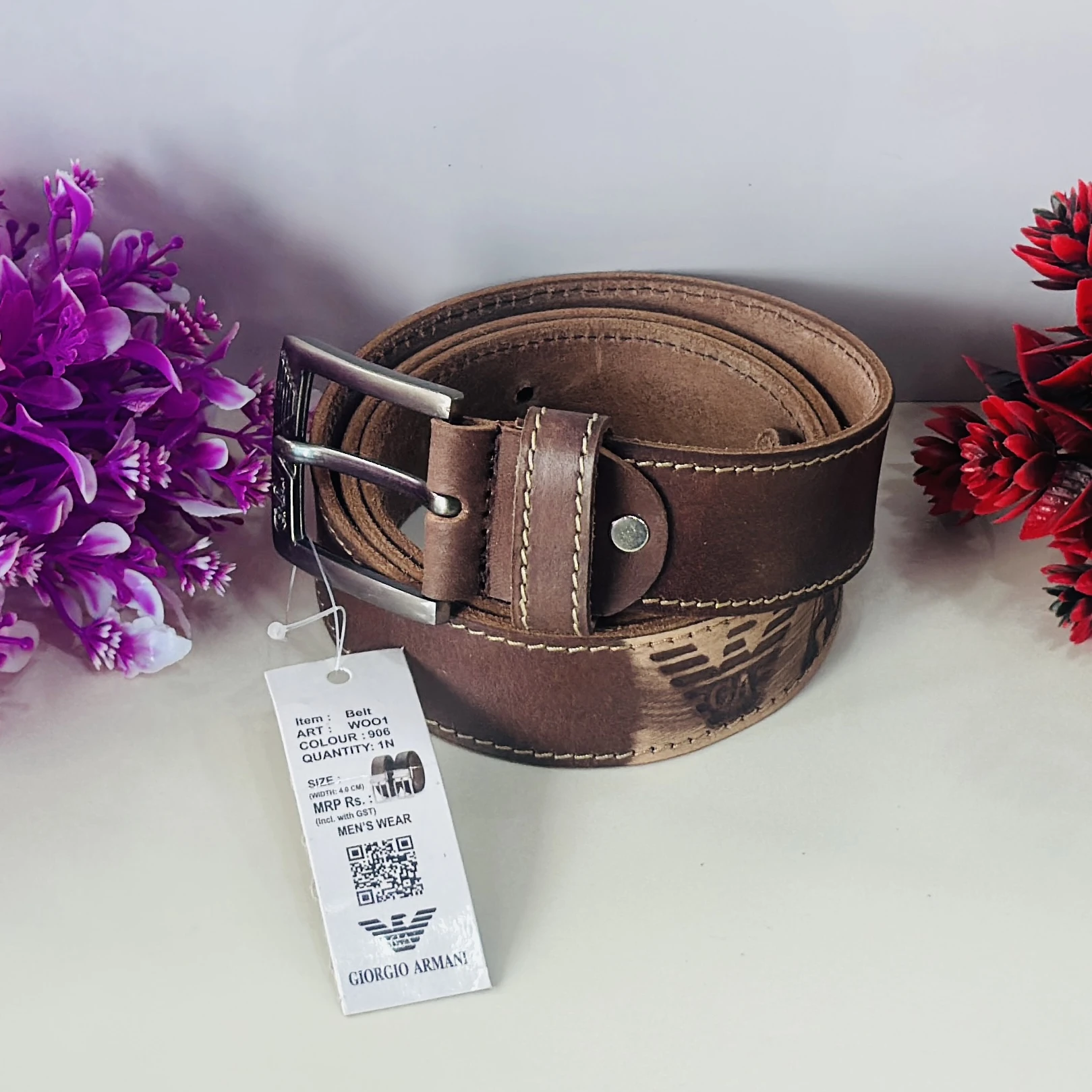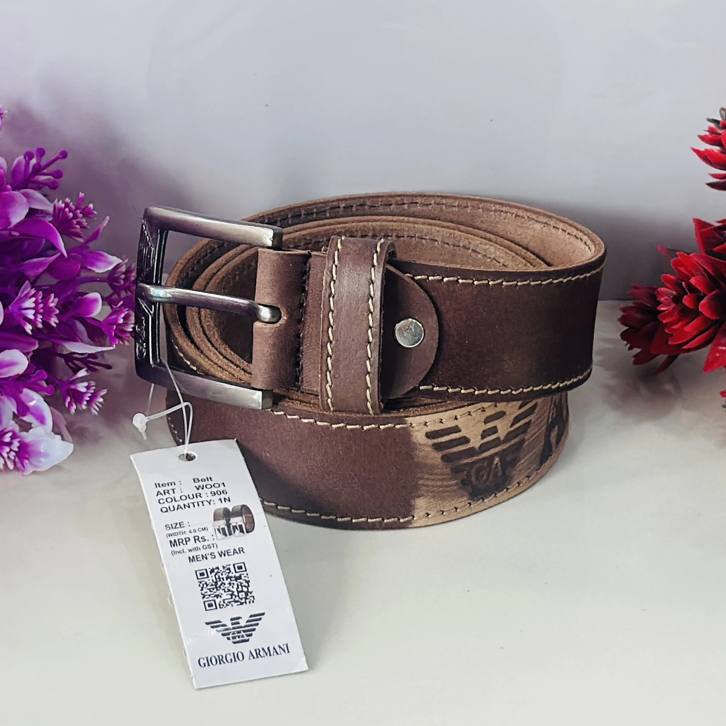 Brown genuine leather belt