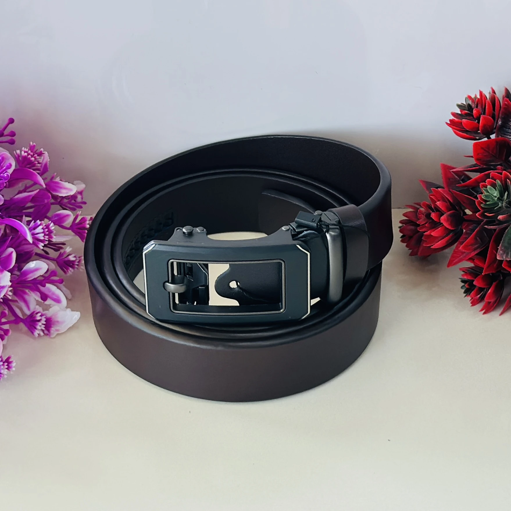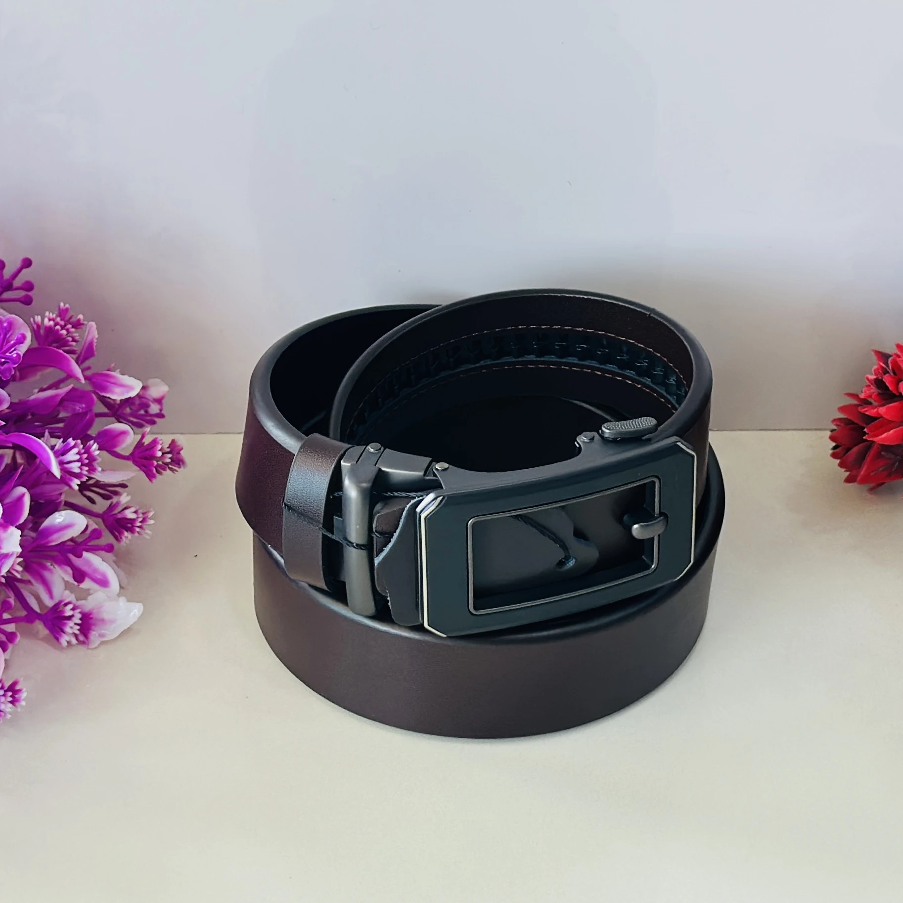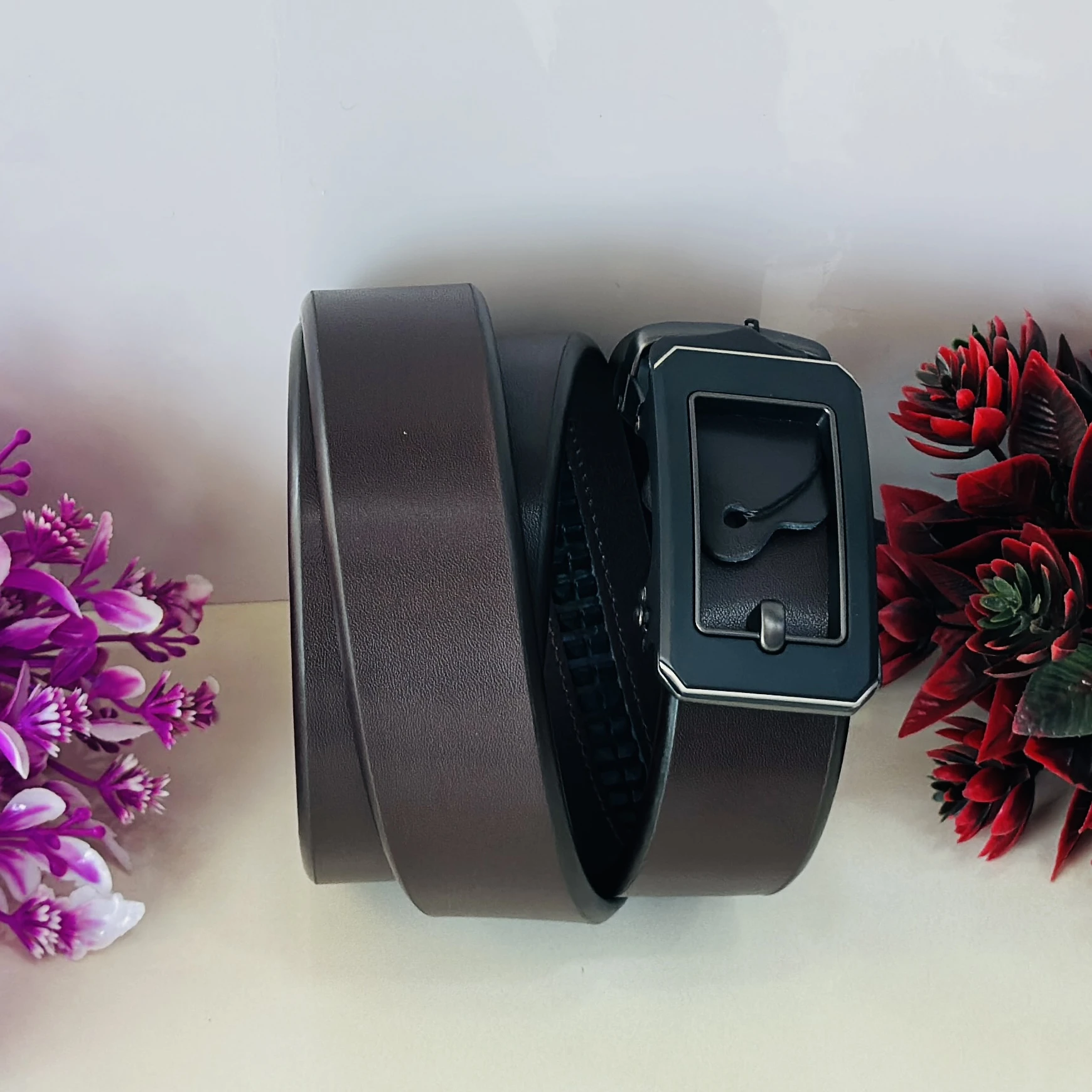 👉 Theme :- Brown artificial leather auto-lock buckle belt for men.