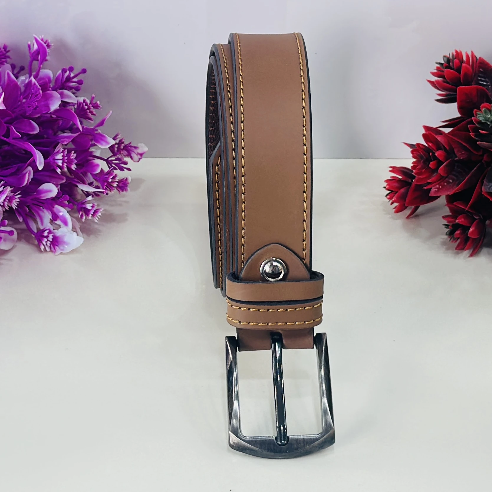 👉 Theme :- brown leather belt with a metal buckle