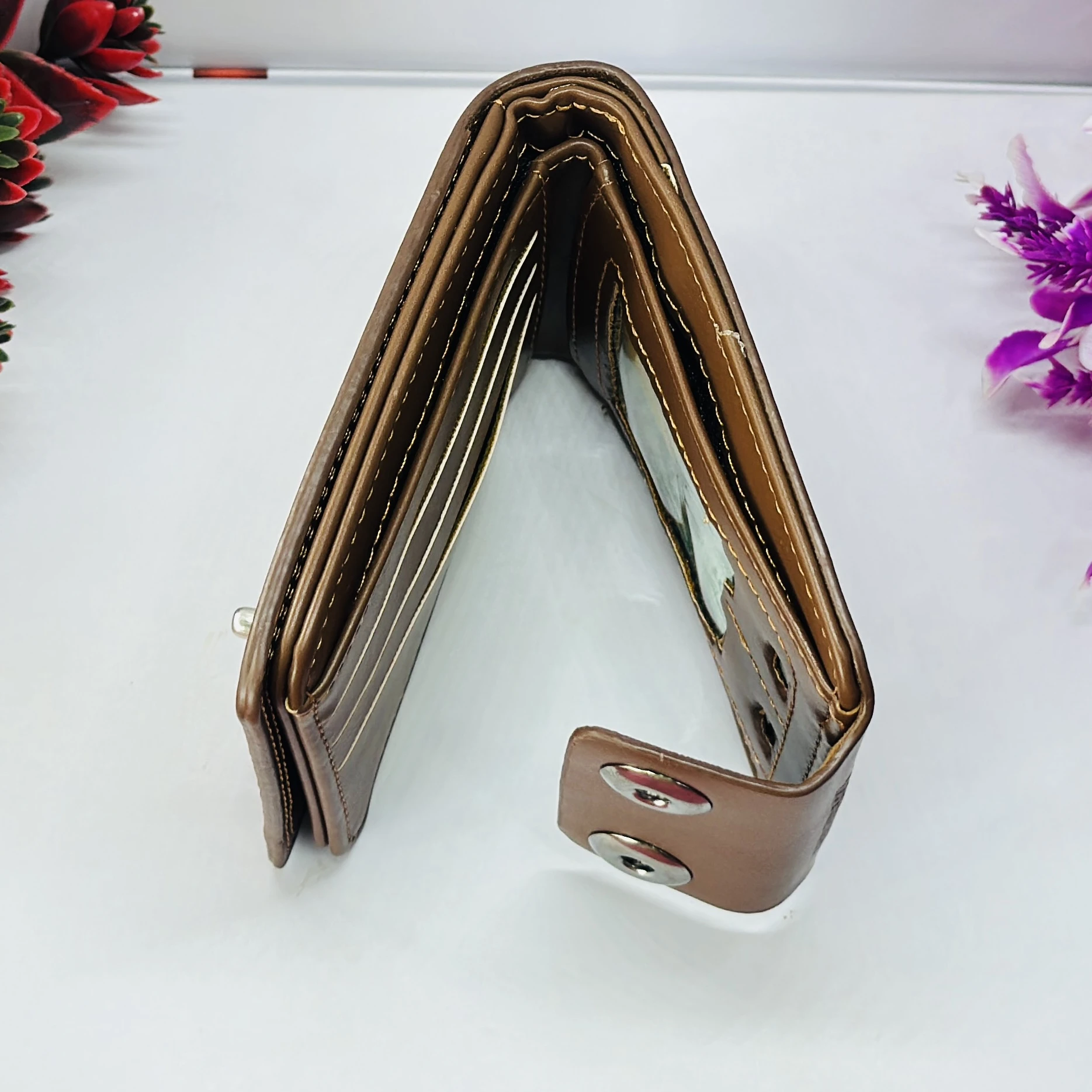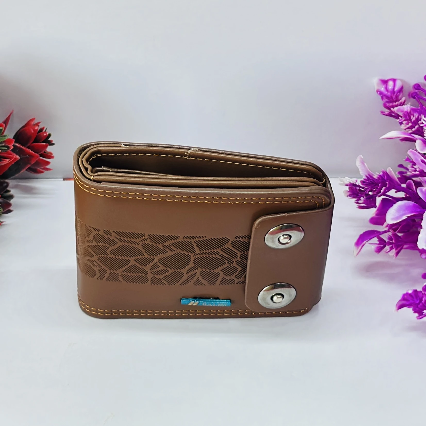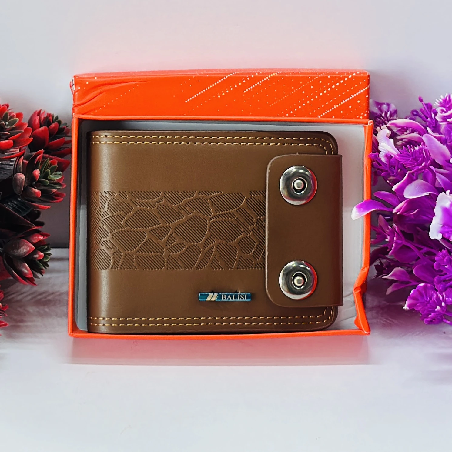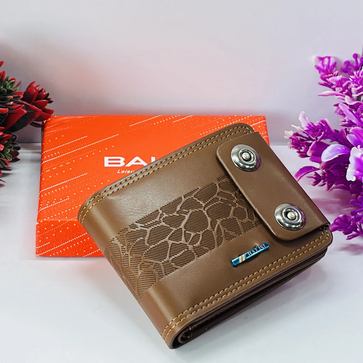 brown men's BALISI wallet with a textured pattern and snap closure.