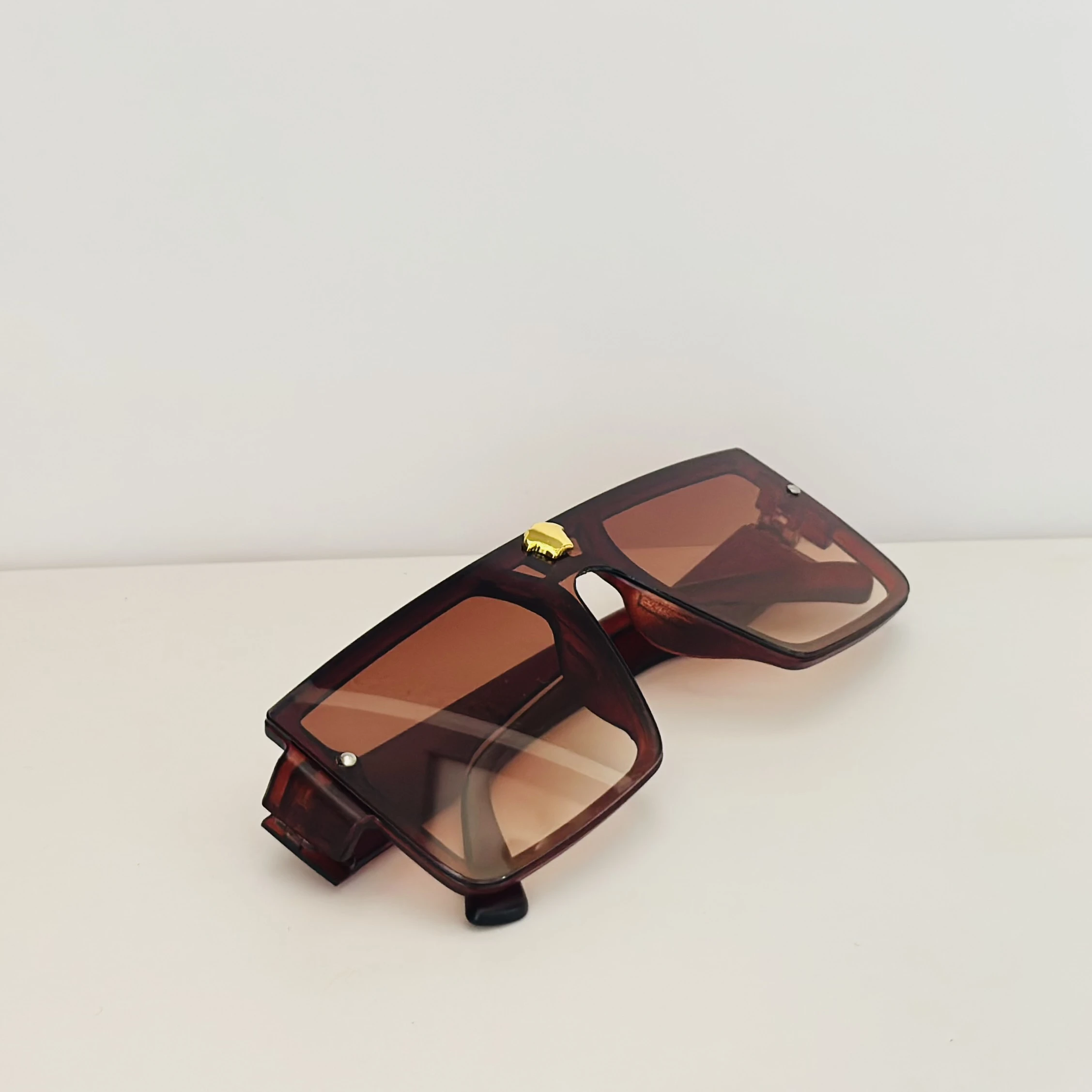 👉 Theme :- Brown oversized flat-top sunglasses.