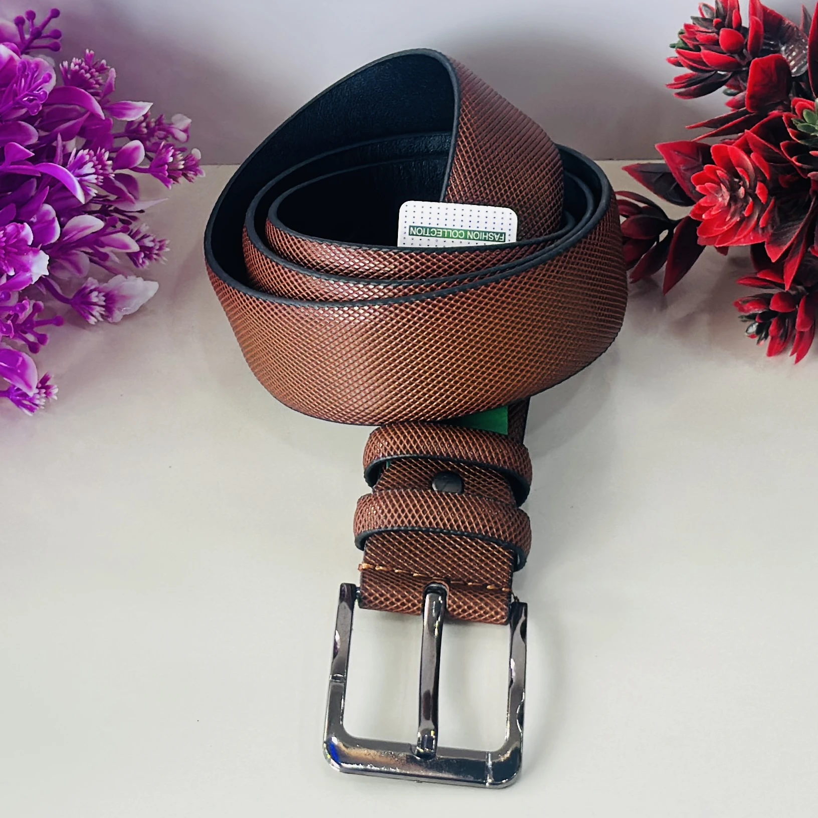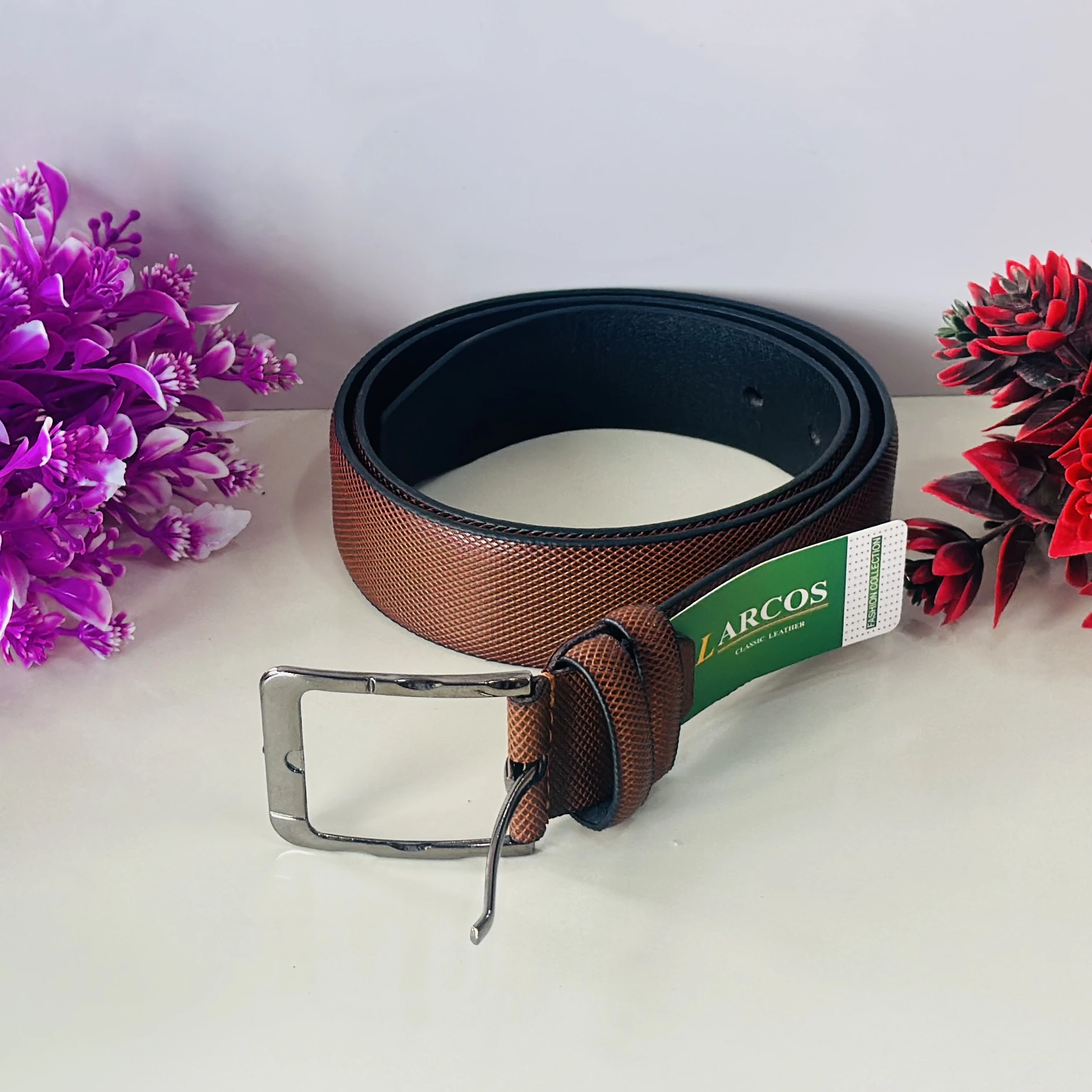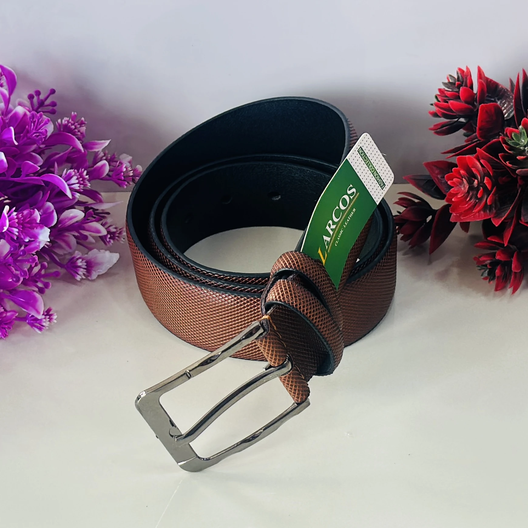 Brown textured leather belt
