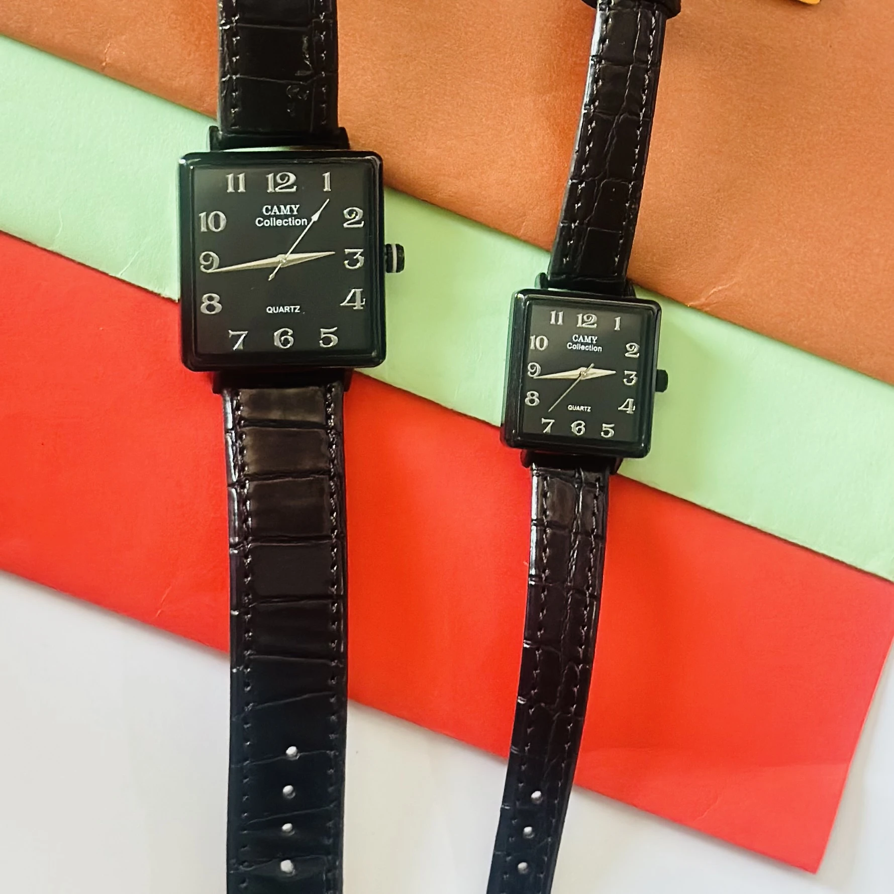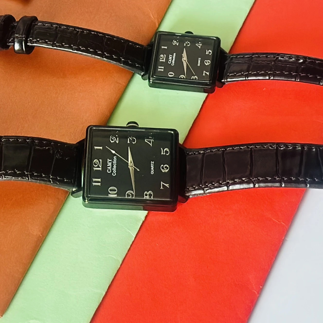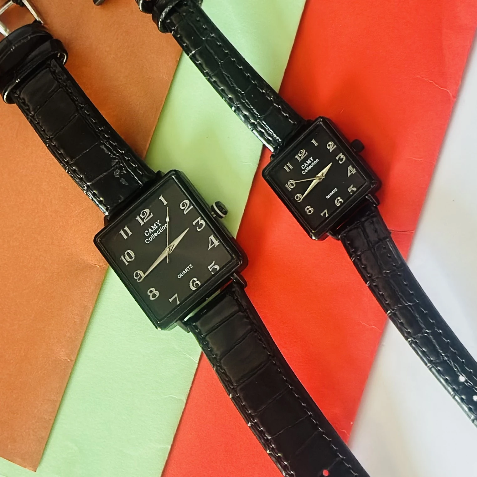 👉 Theme :- Camy Collection men's analog watches with black leather straps and black dials.