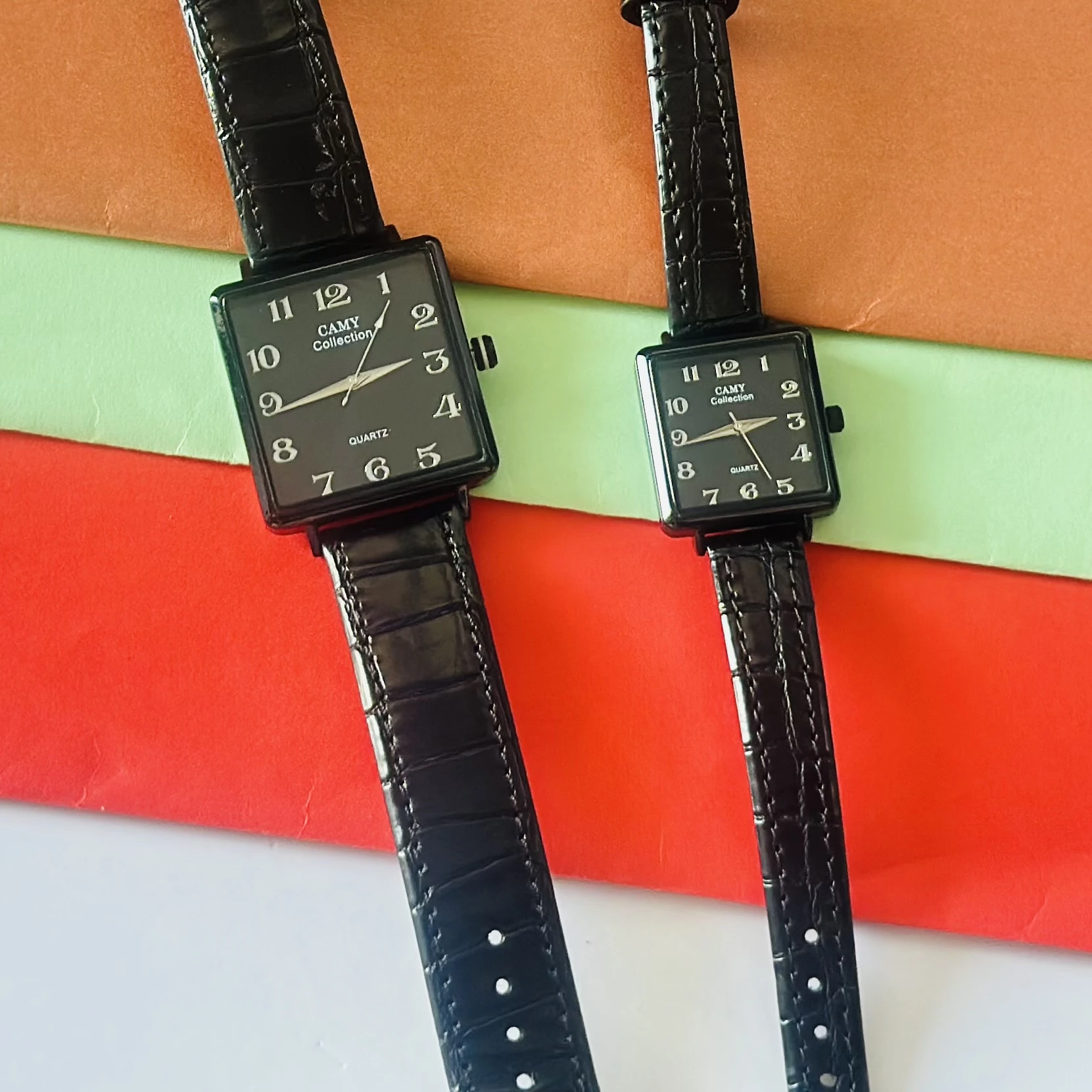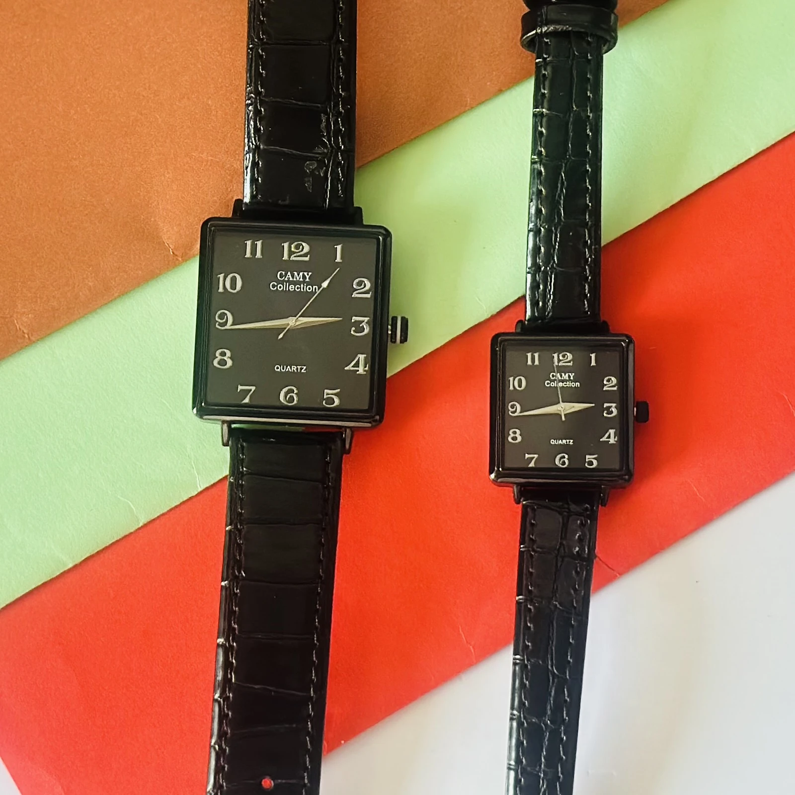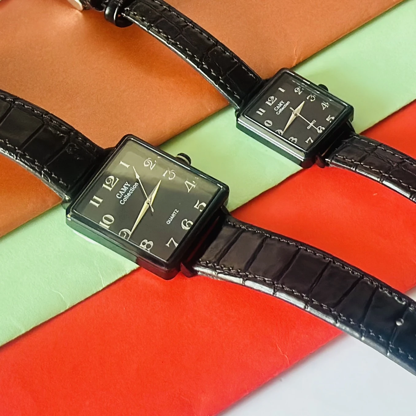 👉 Theme :- Camy Collection men's analog watches with black leather straps and black dials.