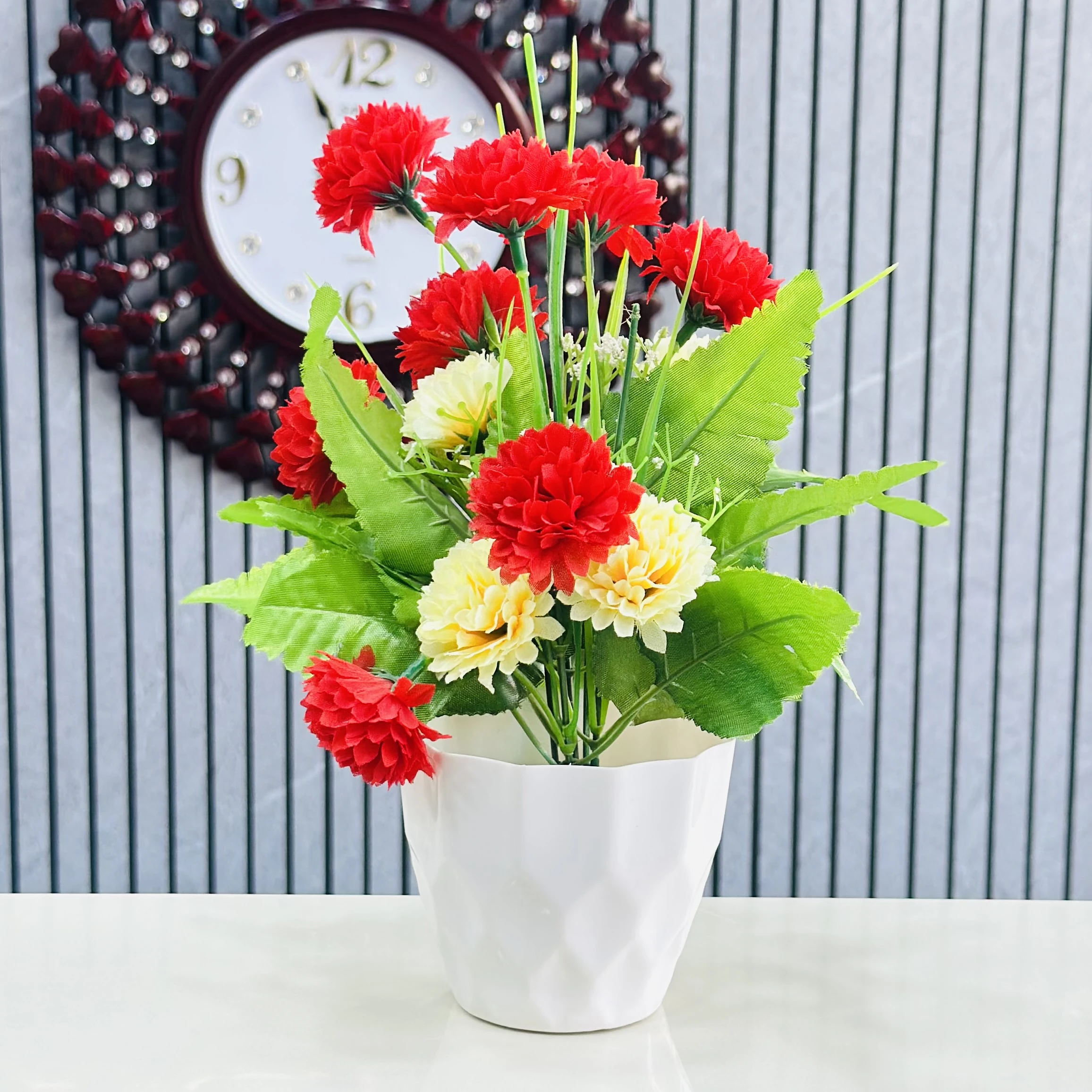 👉 Theme :- carnation flower arrangement in a white ceramic-like pot.