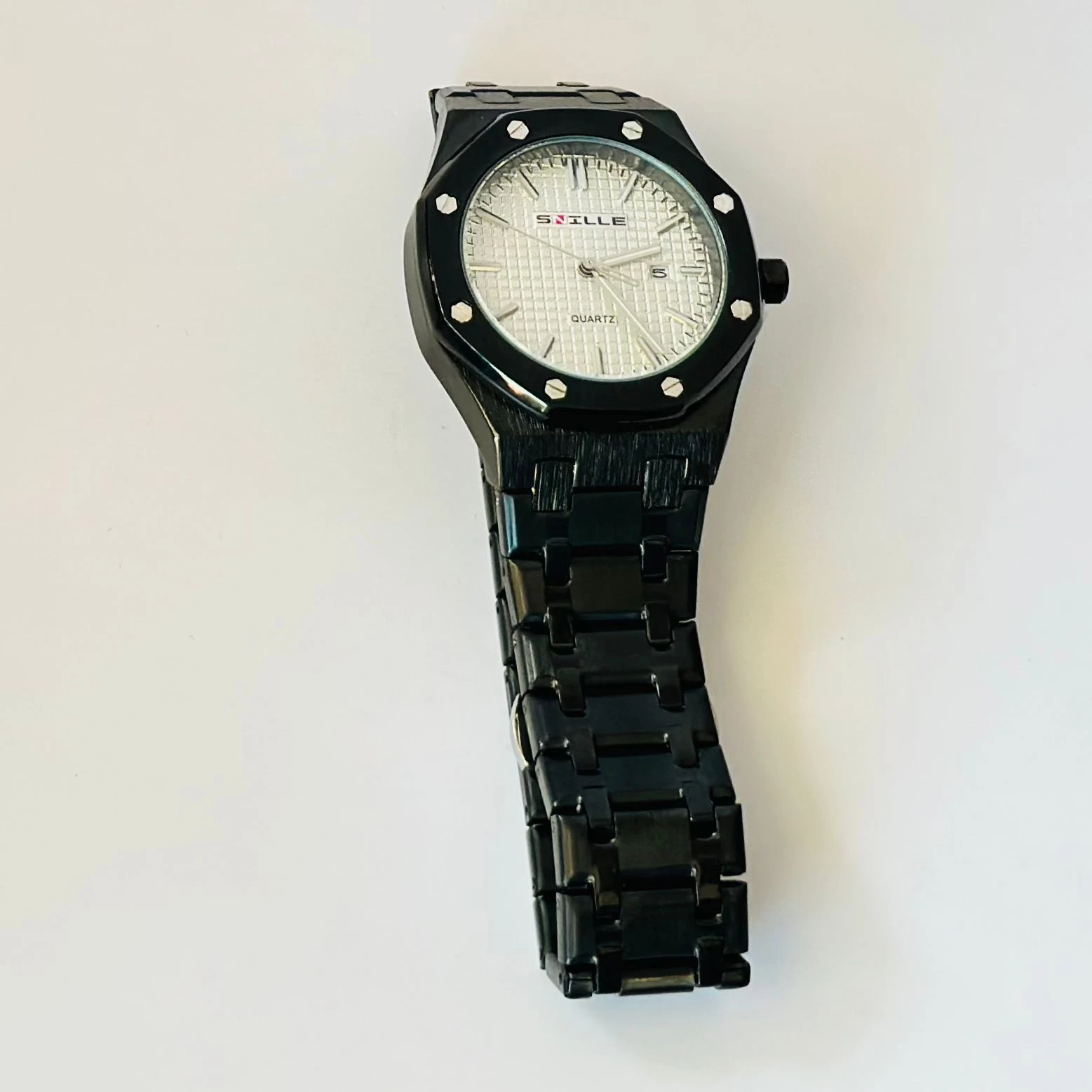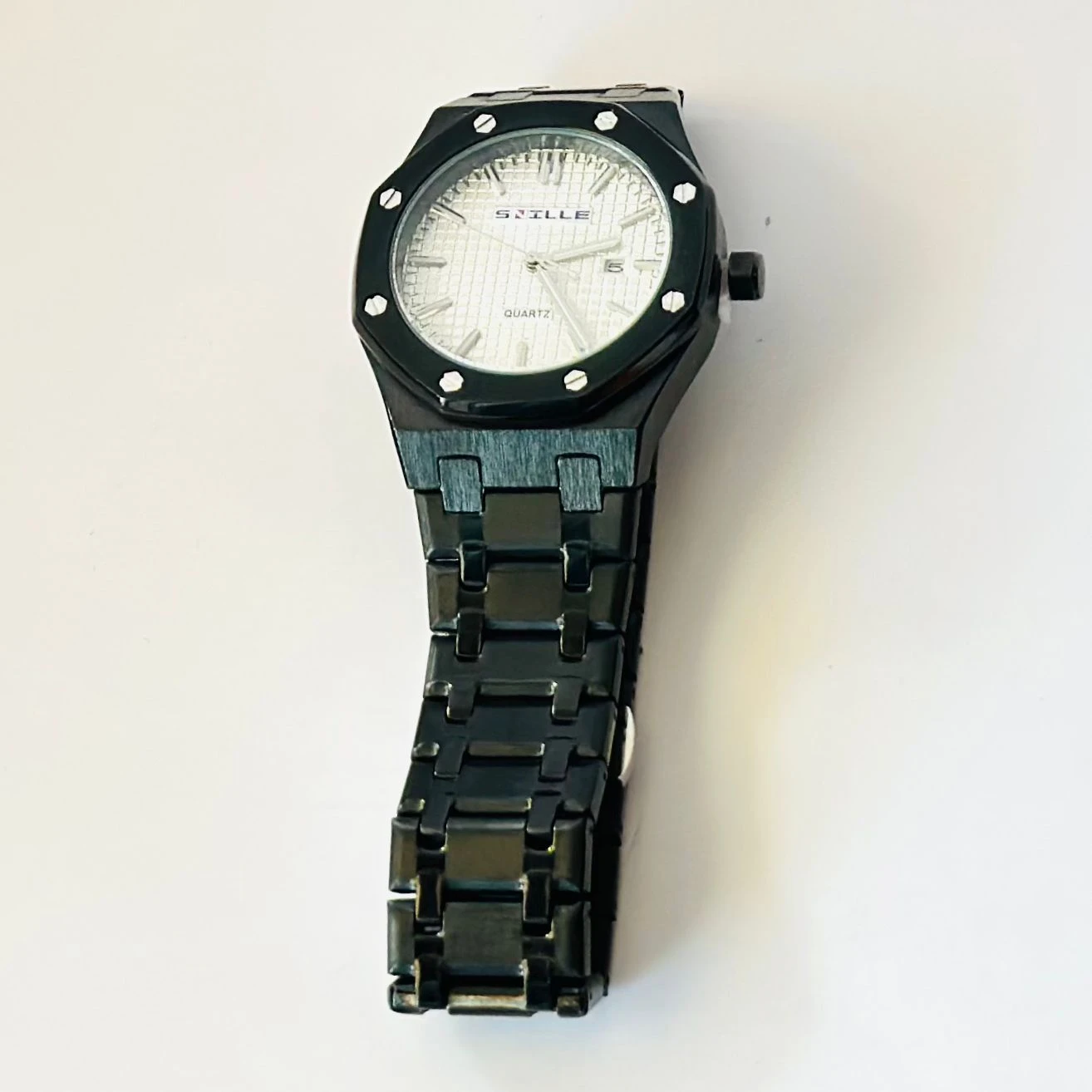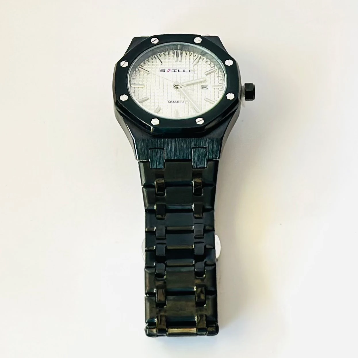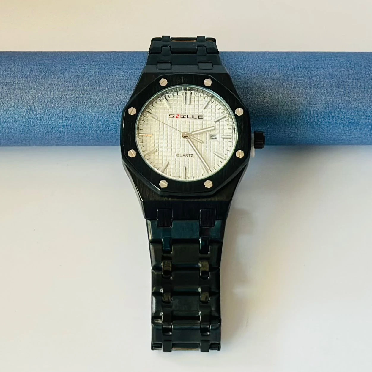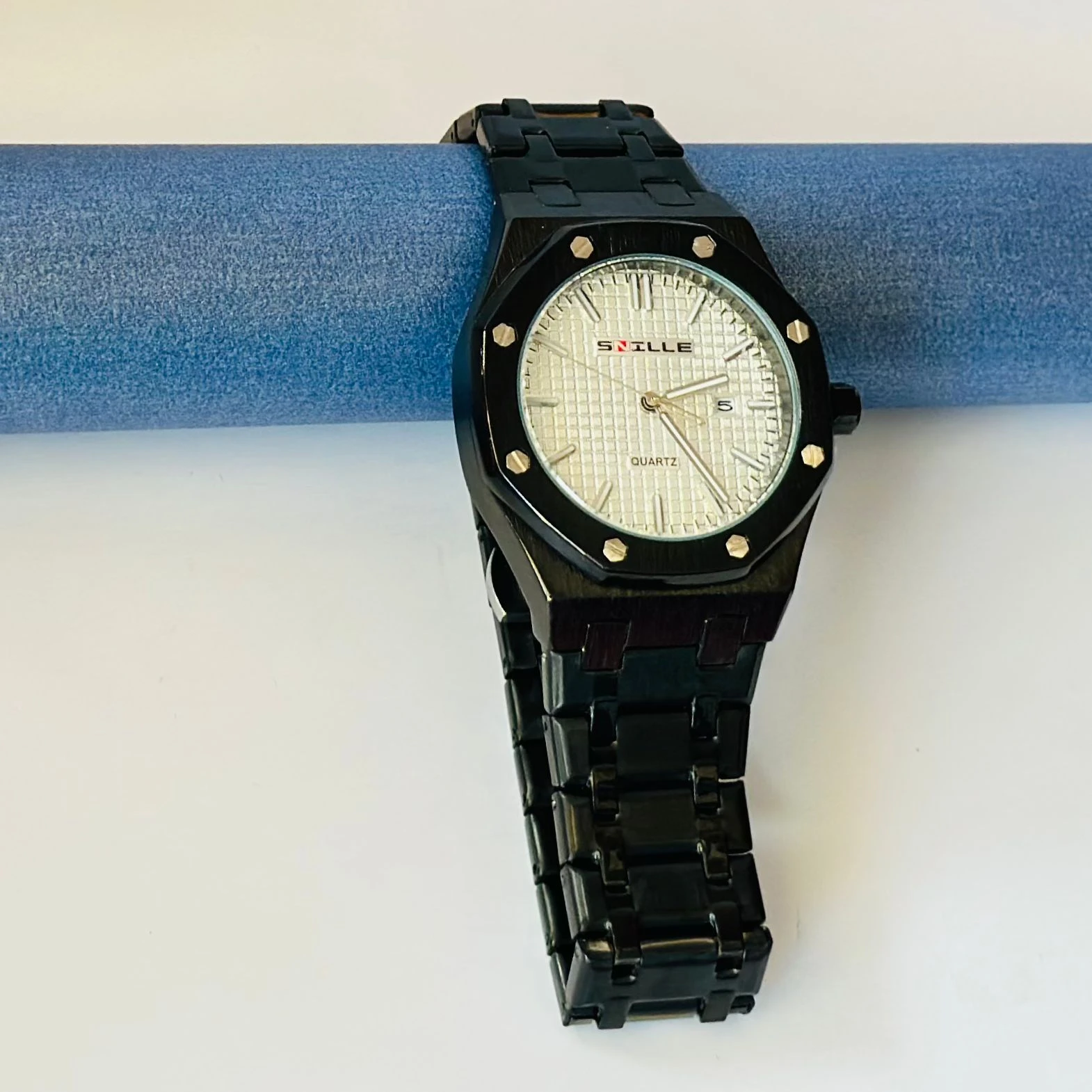 👉 Theme :- Casual Sport Analog Watch Black Date Display Stainless Strap