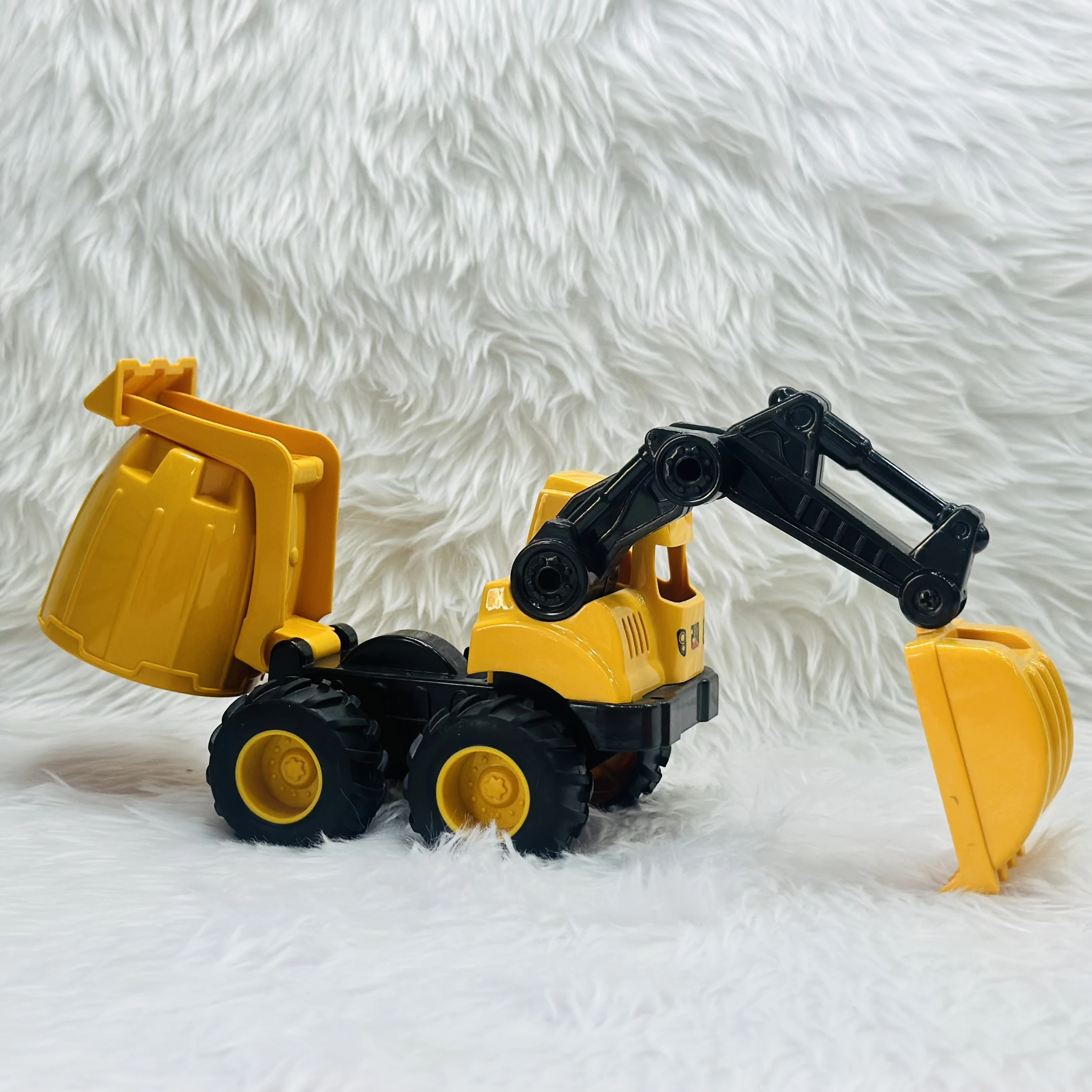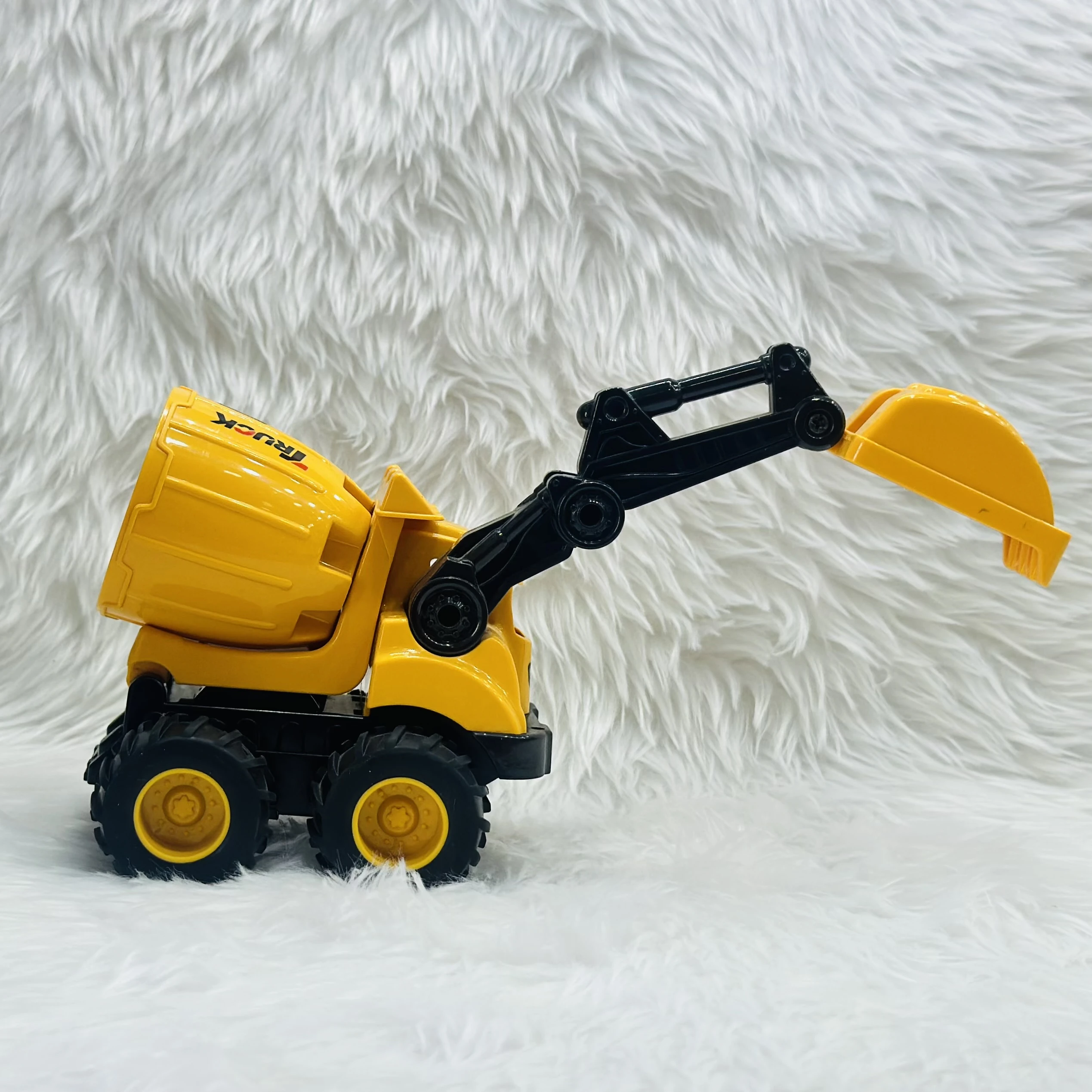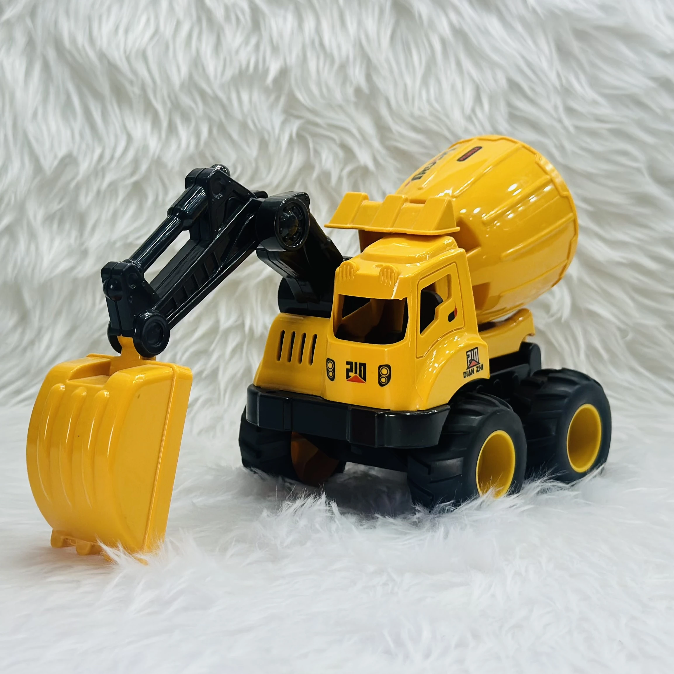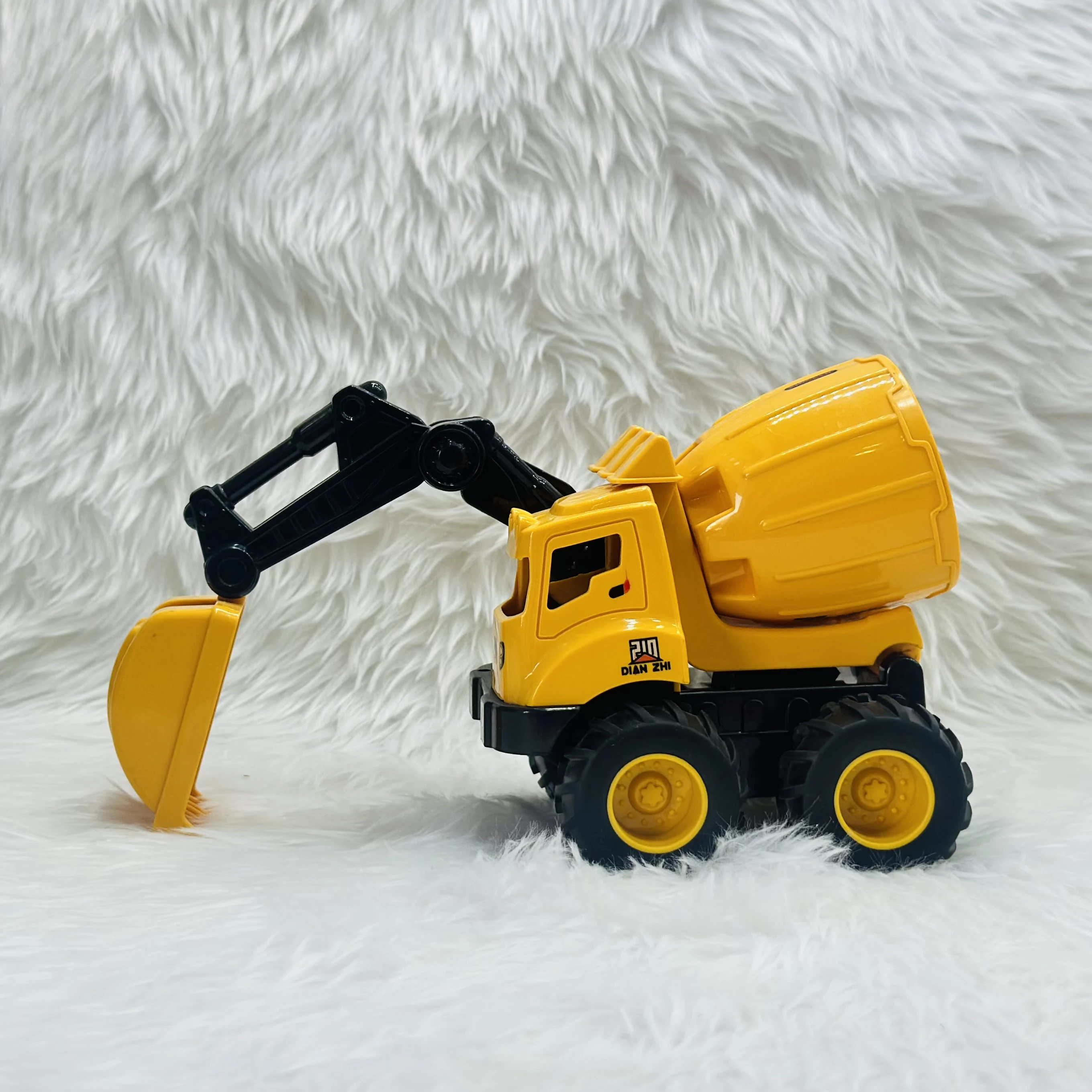 👉 Theme :- Cement mixer with an attached excavator arm.
