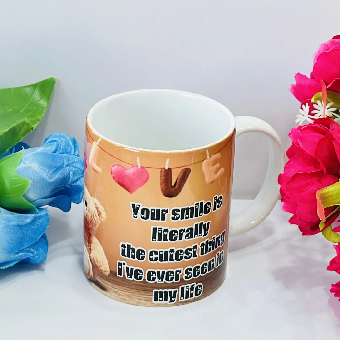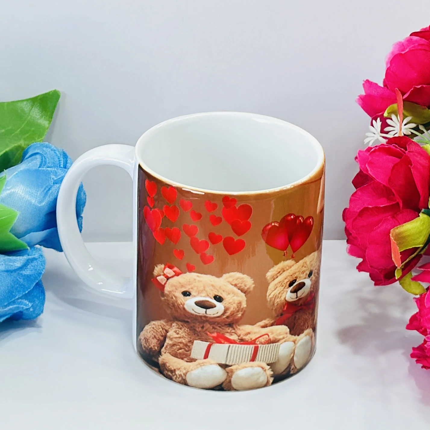 👉 Theme :- ceramic coffee mug with a teddy bear and heart design.