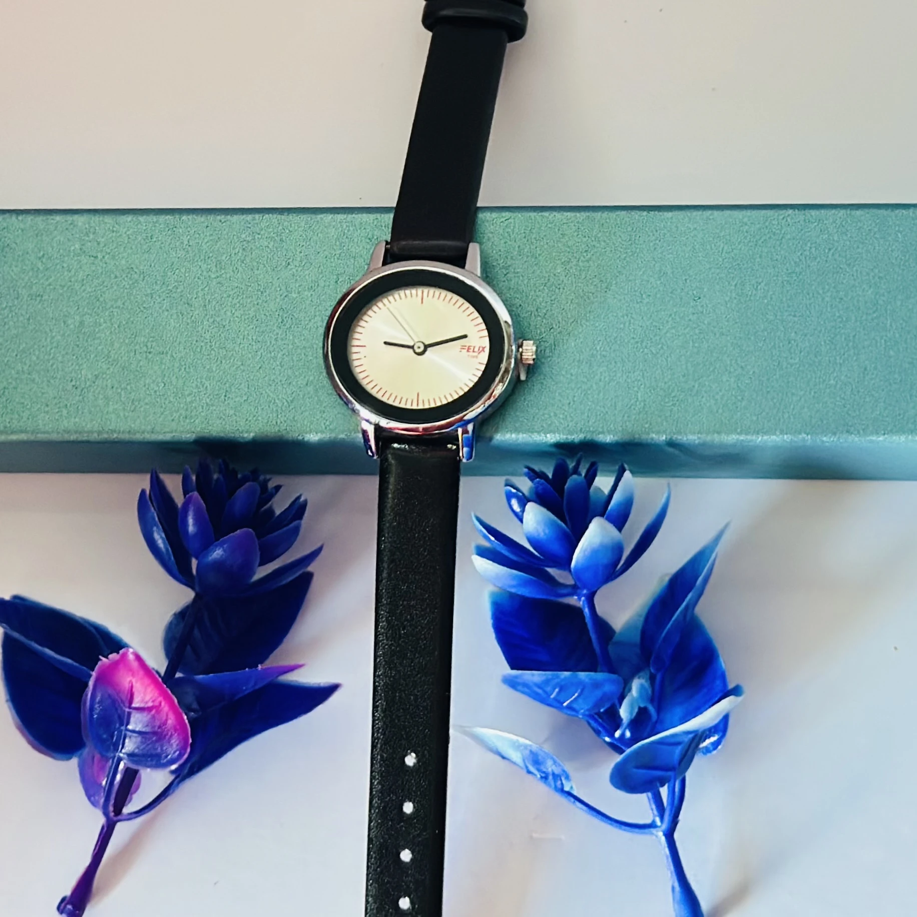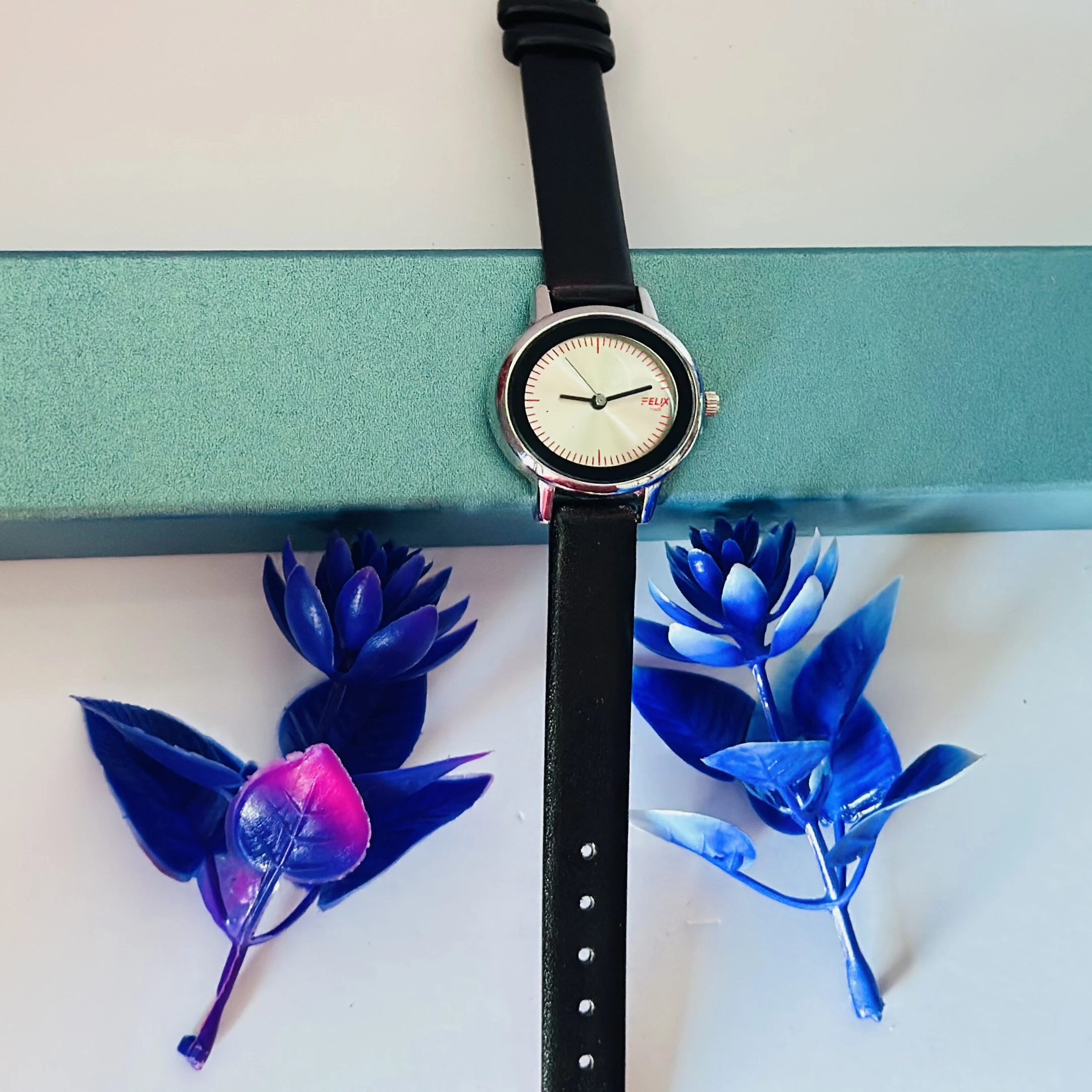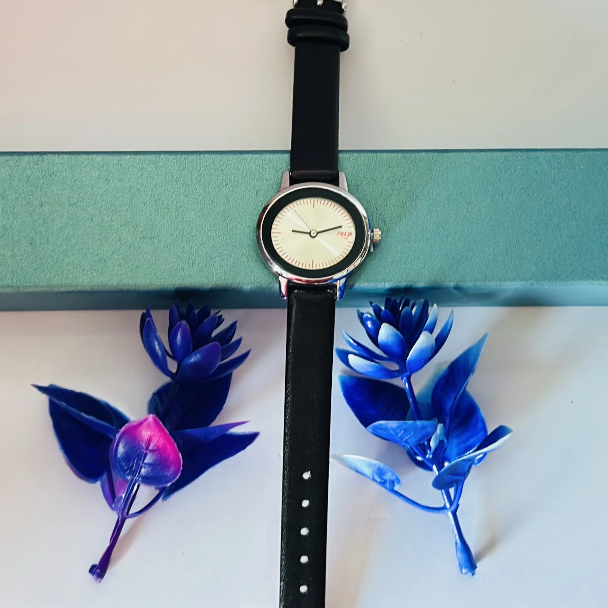 👉 Theme :- Cheifel Paris analog watch with a black leather strap and a silver-tone case.