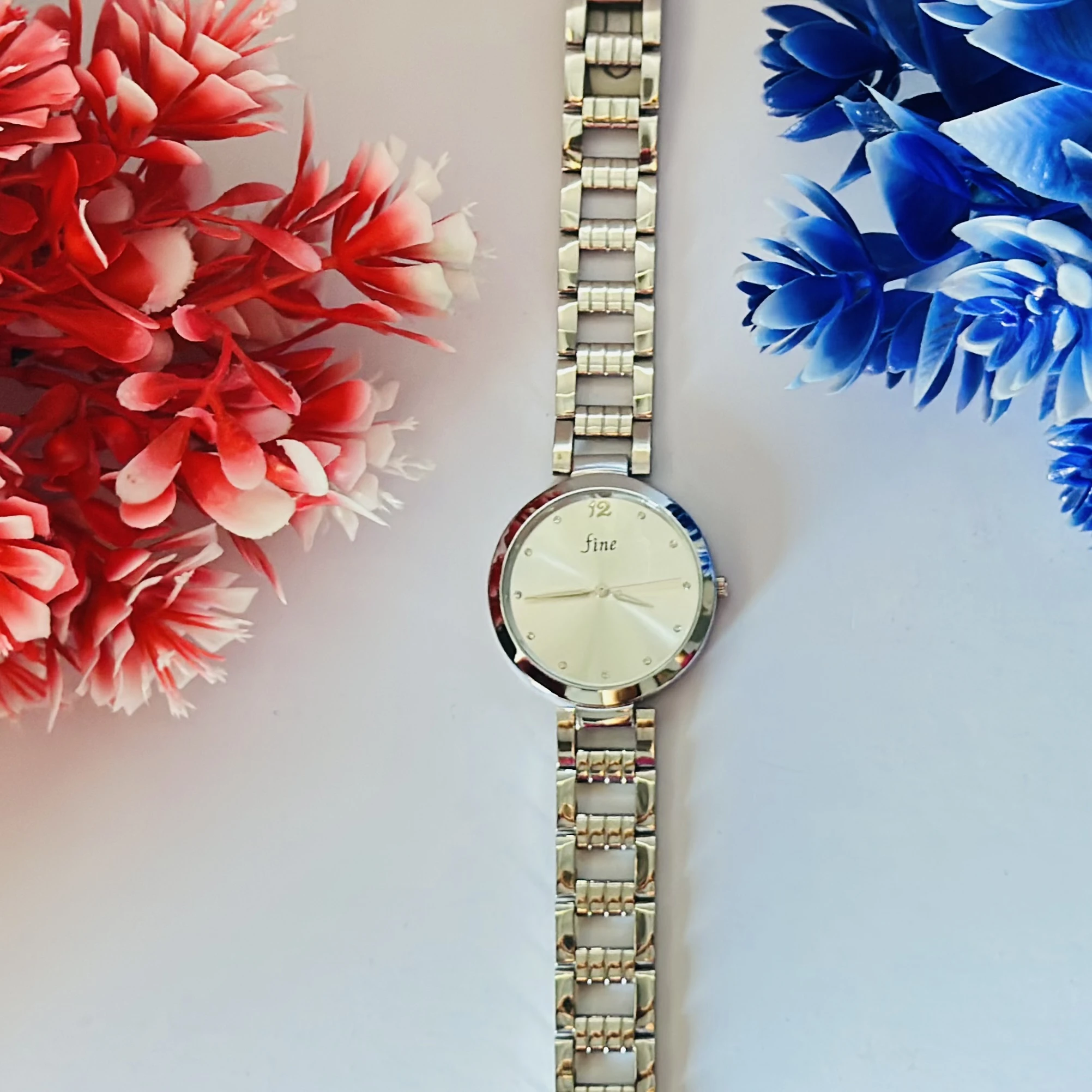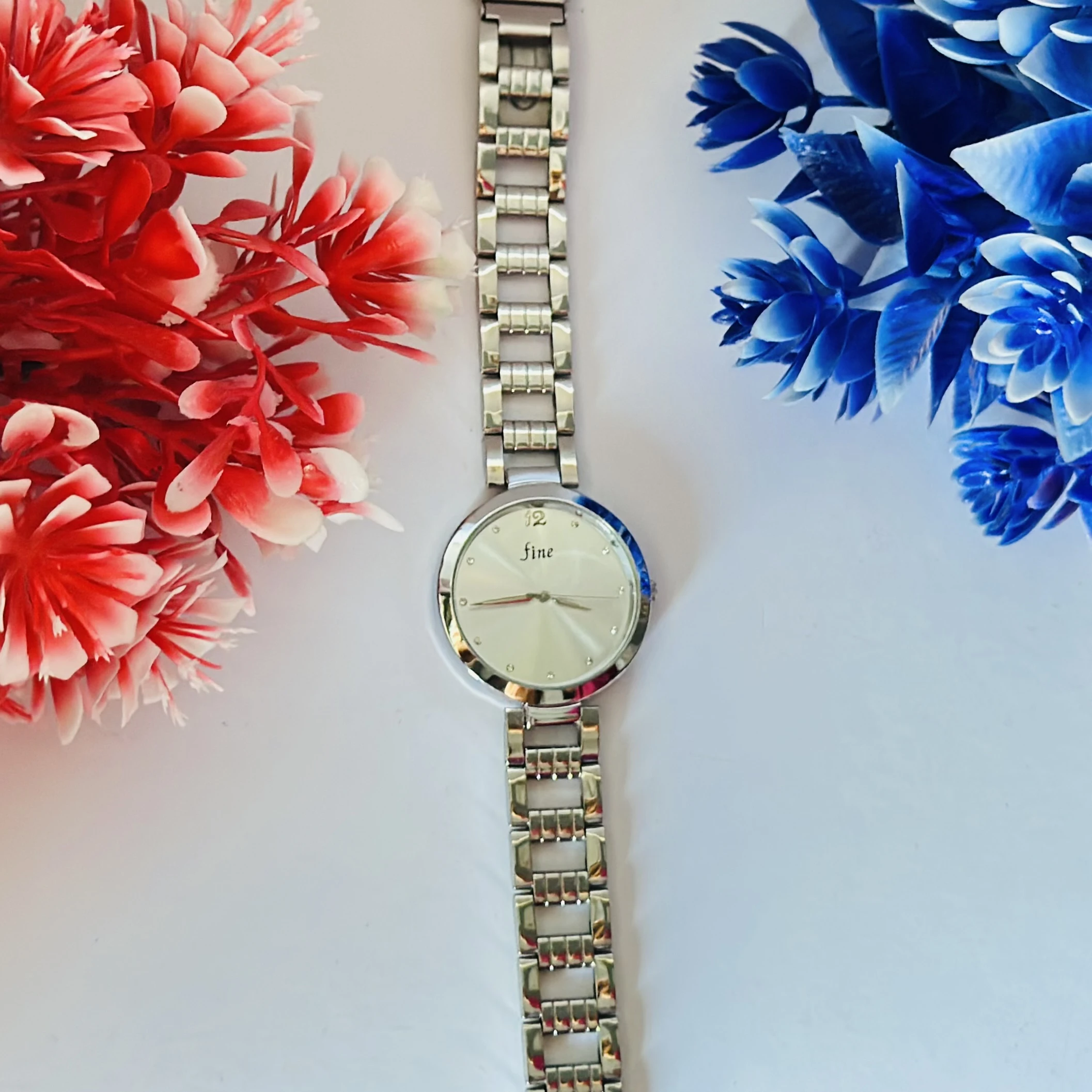👉 Theme :- Cruise analog watch with a silver dial and stainless steel strap.