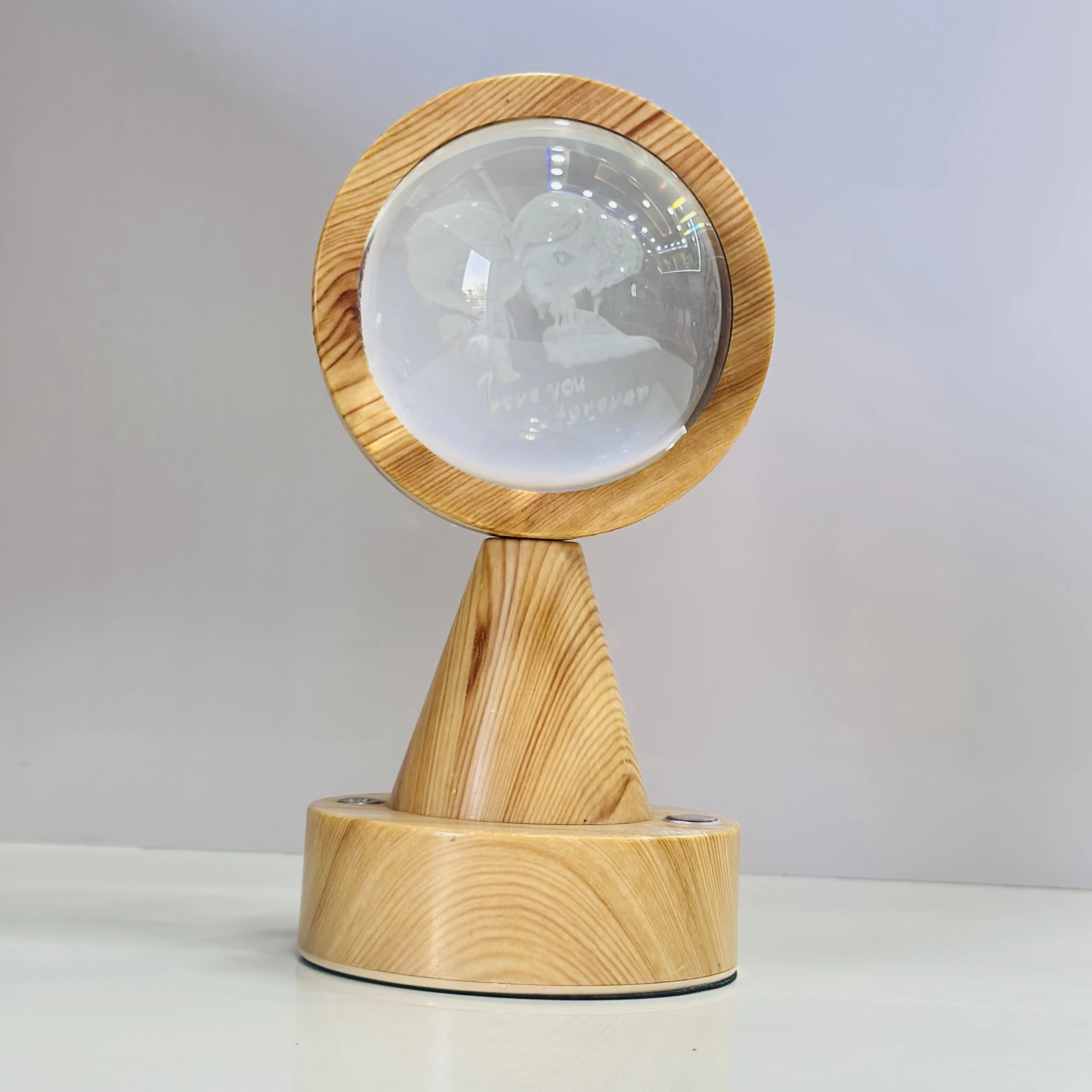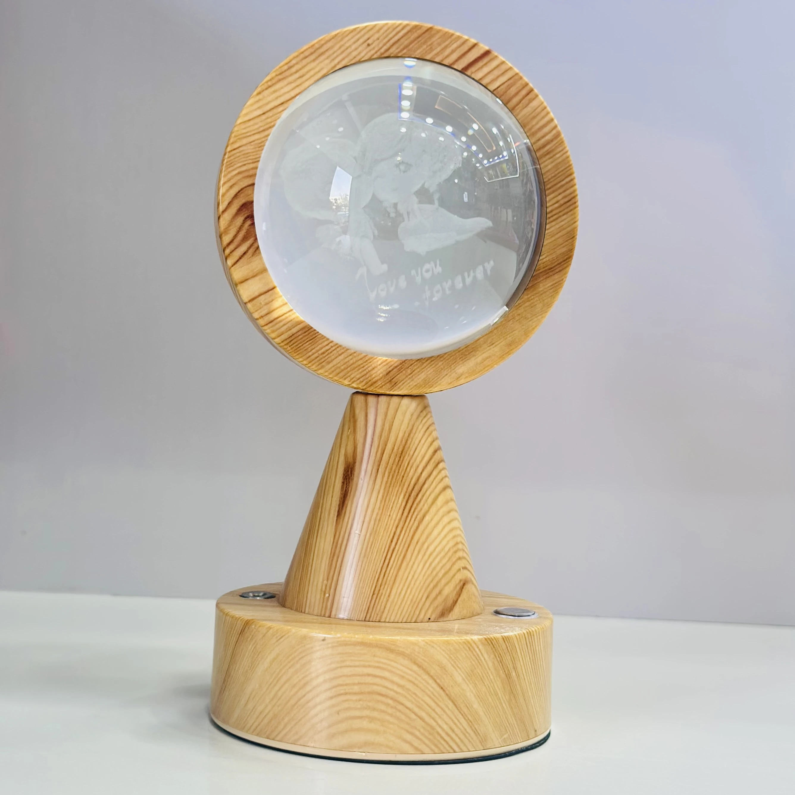 👉 Theme :- crystal ball night light with a wooden base.