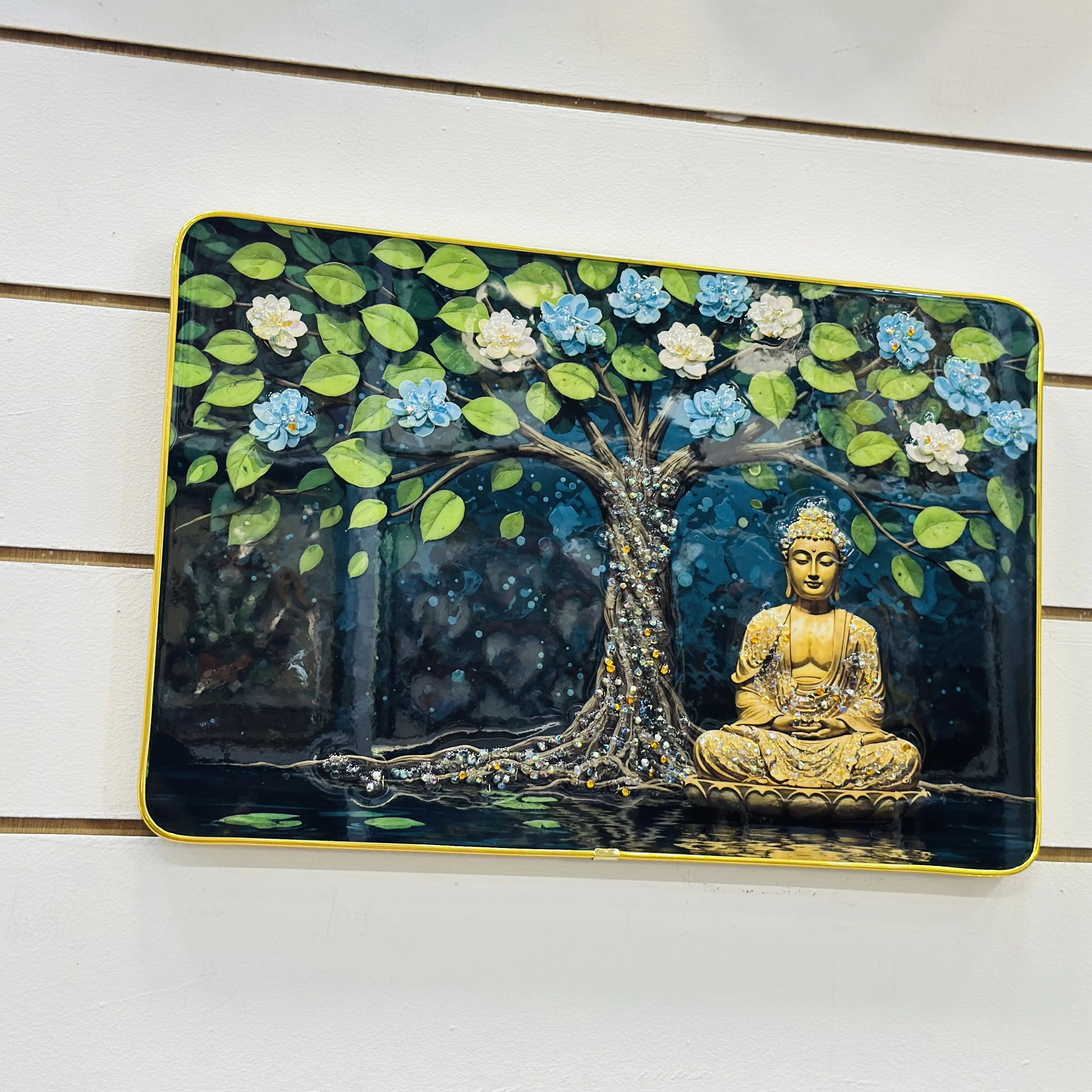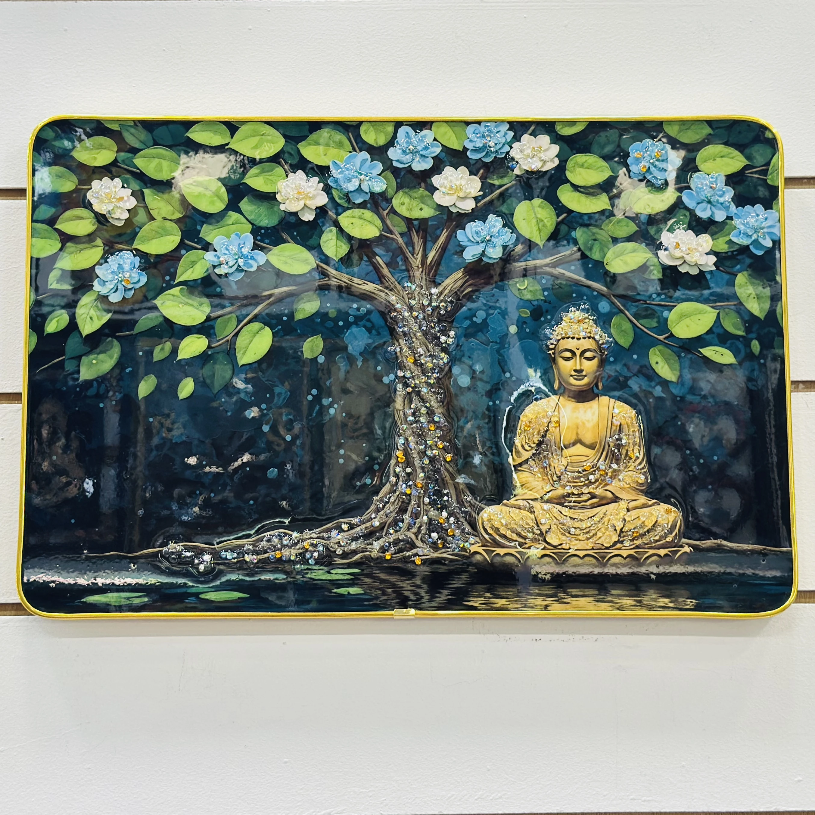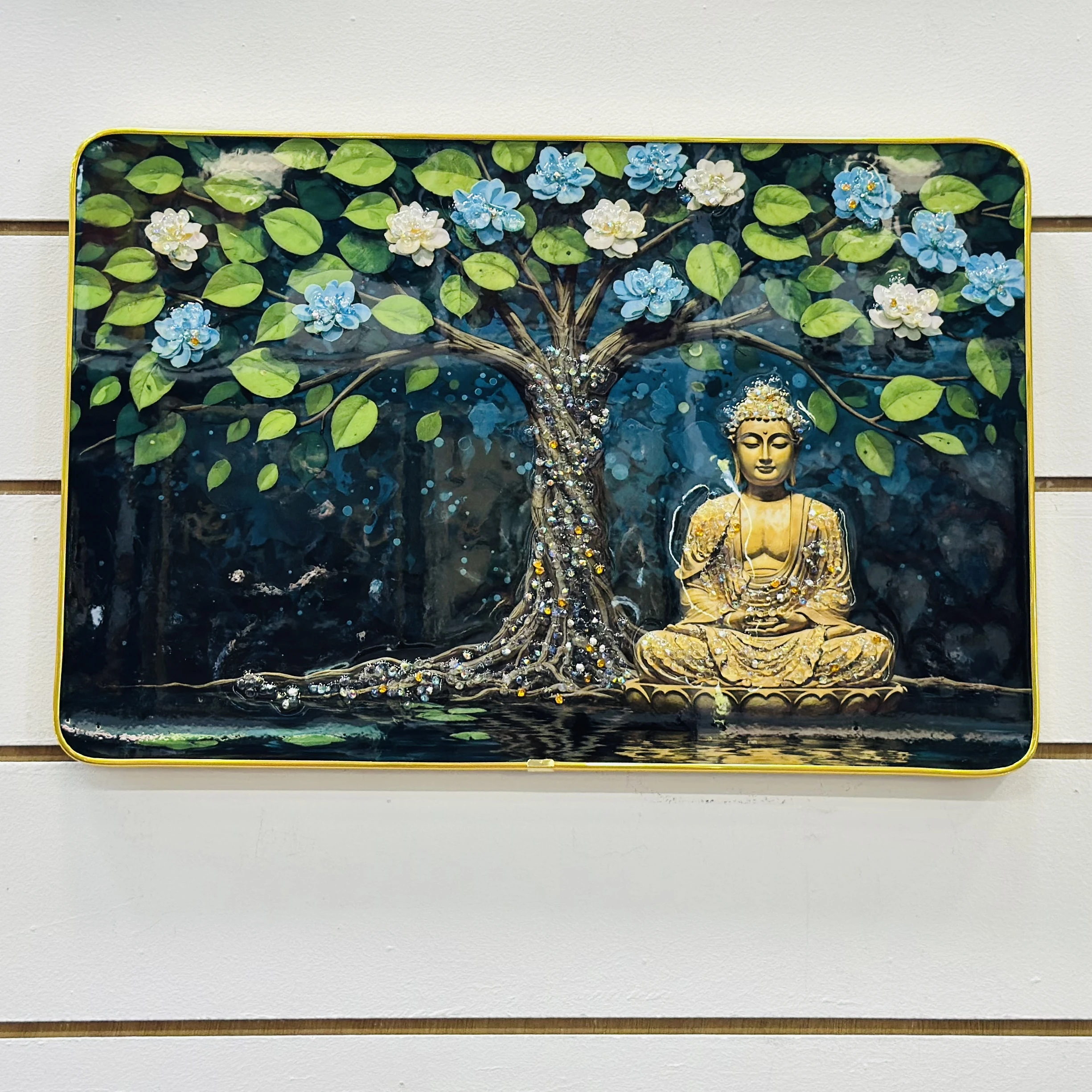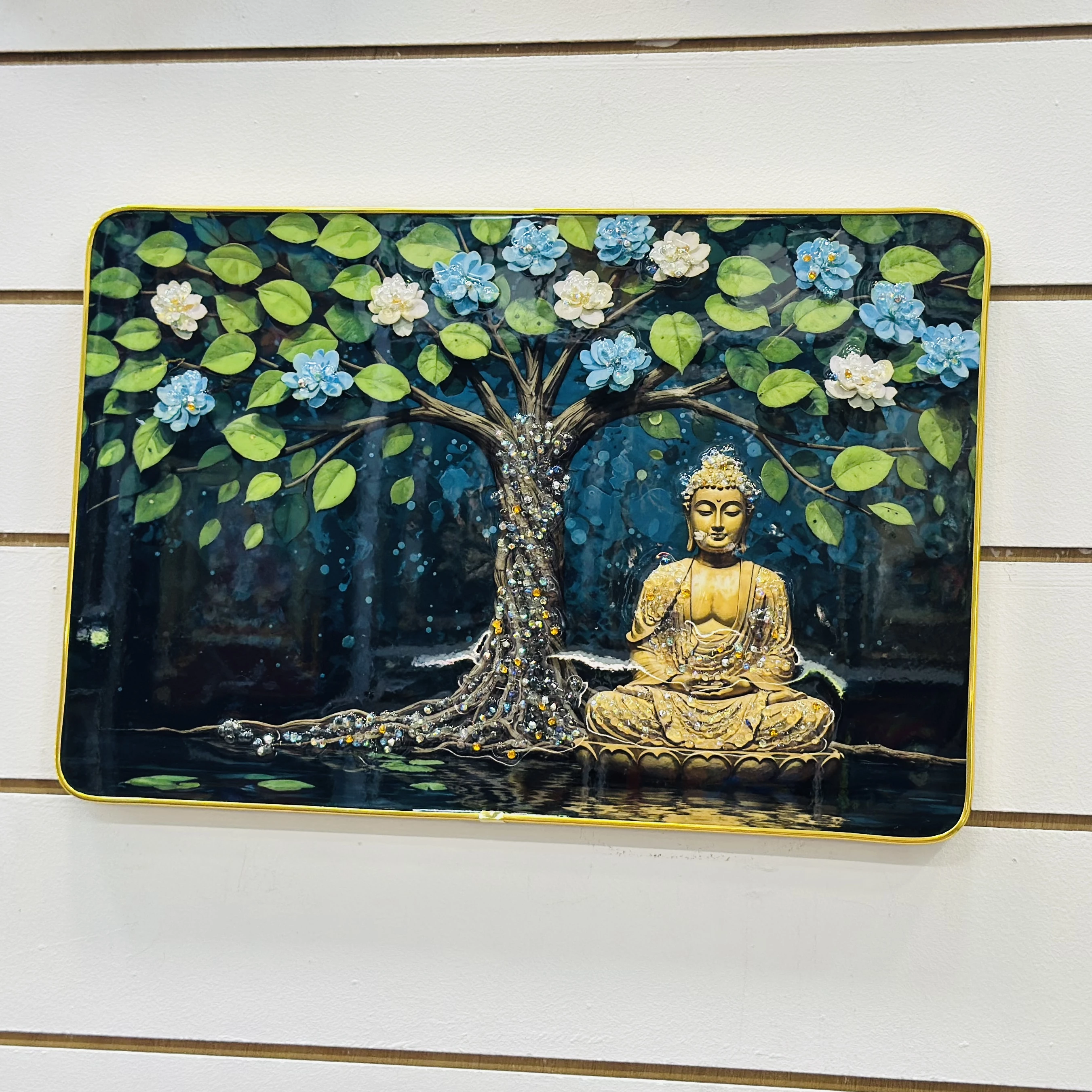 👉Theme :- sparkle laminated or crystal-embedded Buddha wall painting in a gold-slim frame